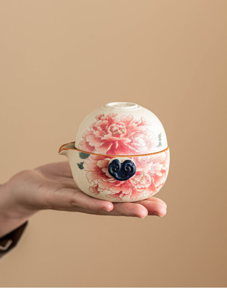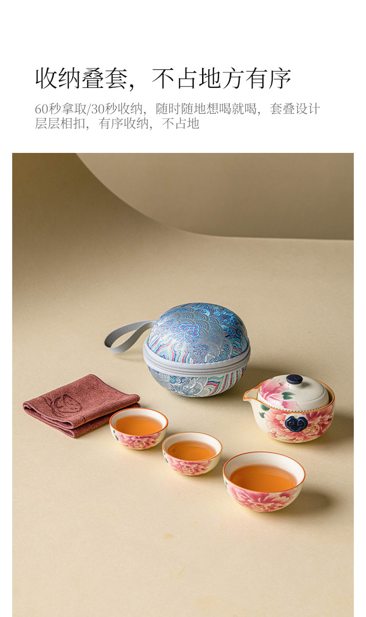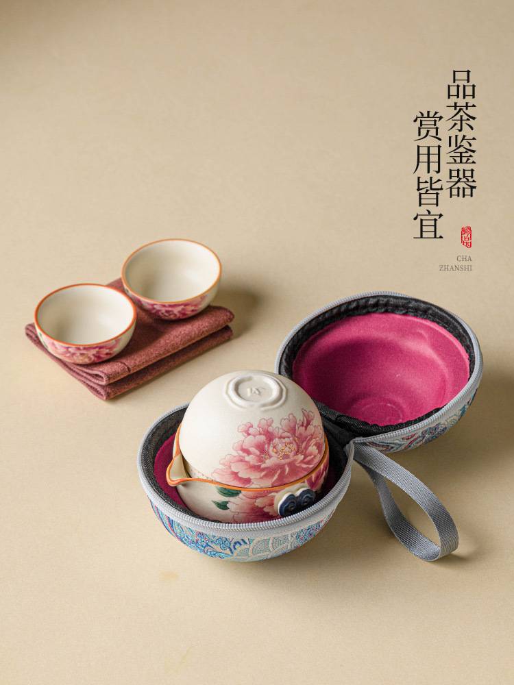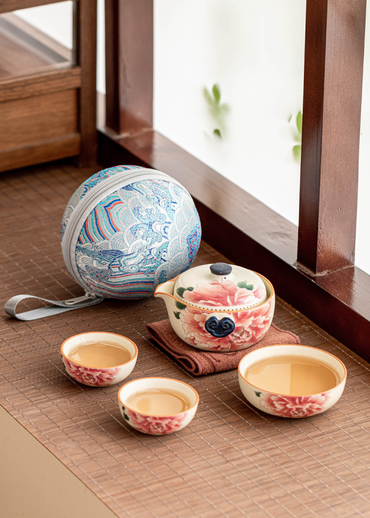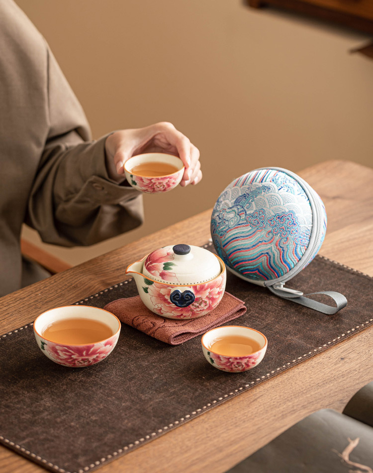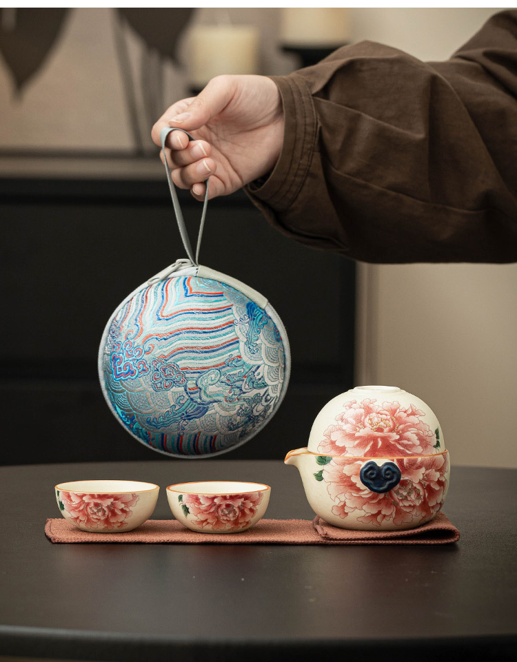 Bộ ấm trà du lịch màu trắng mỏ đá, cốc phục vụ khách bằng gốm sứ màu vàng quốc gia, một ấm ba cốc, thiết bị uống trà di động