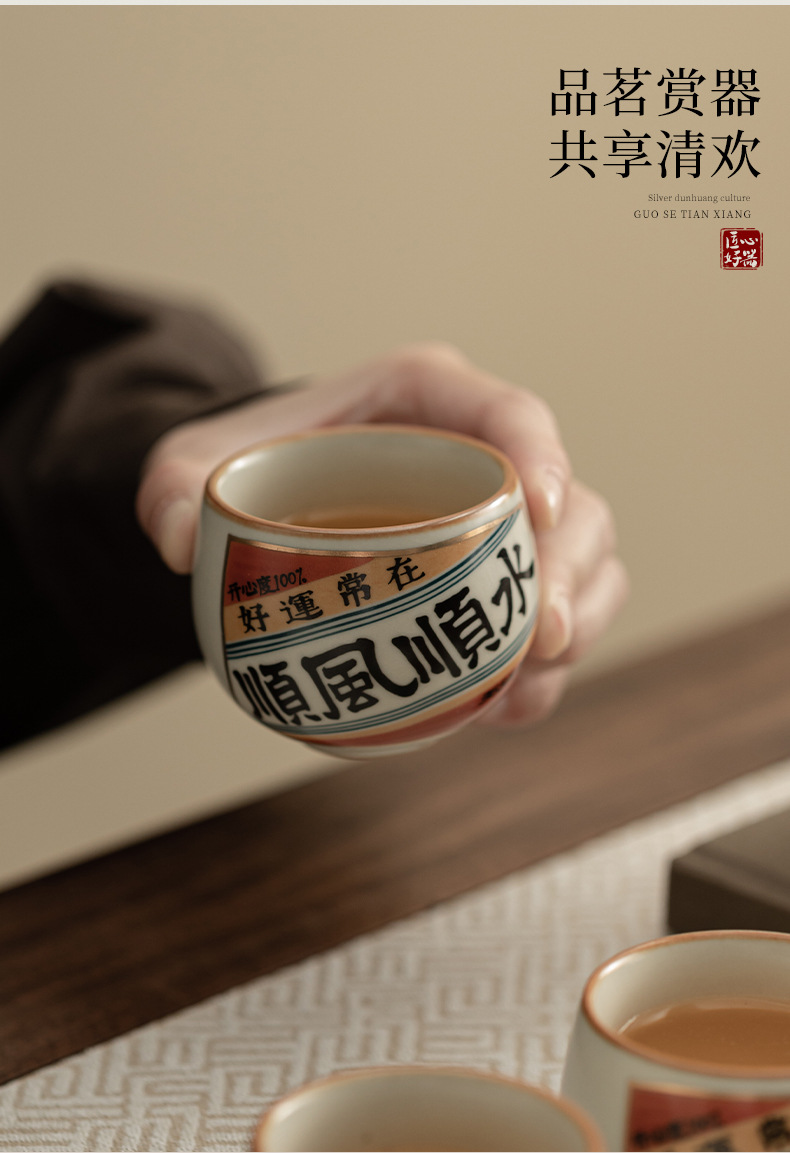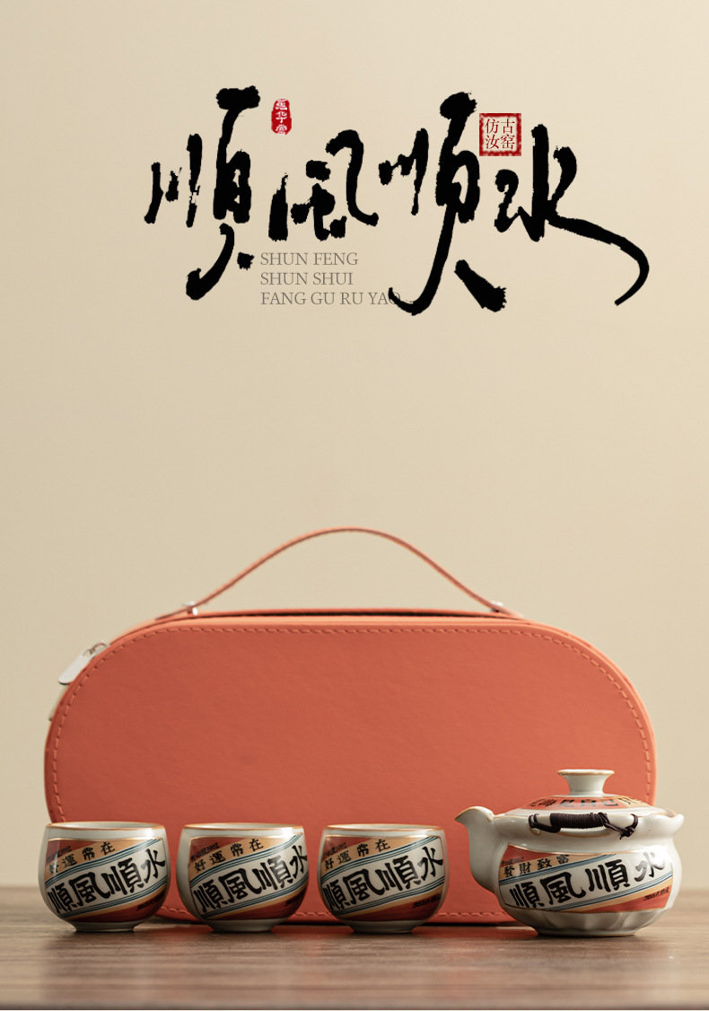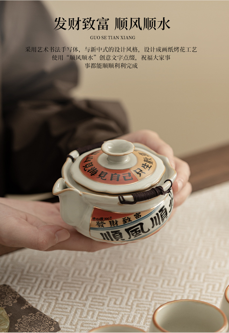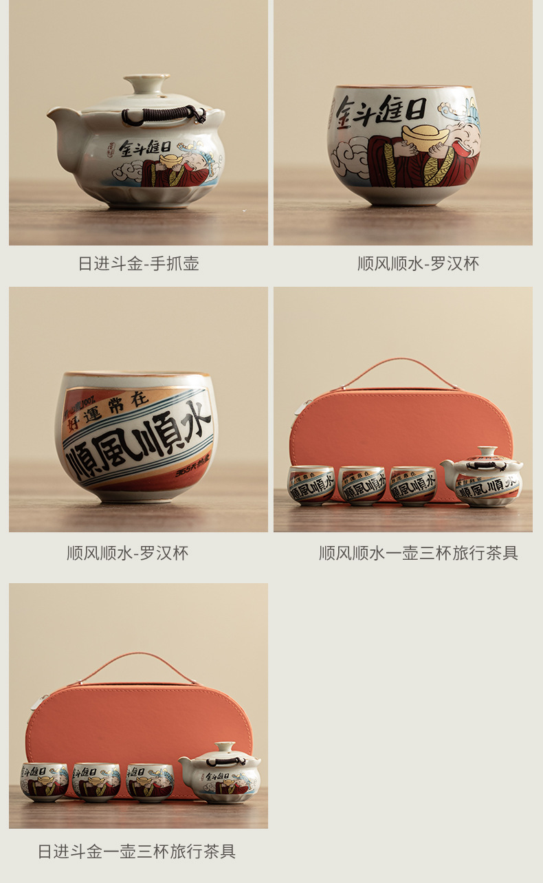 Bộ ấm trà du lịch một ấm ba cốc có thể nâng cốc trà lò Ru cổ cầm tay ấm trà cầm tay