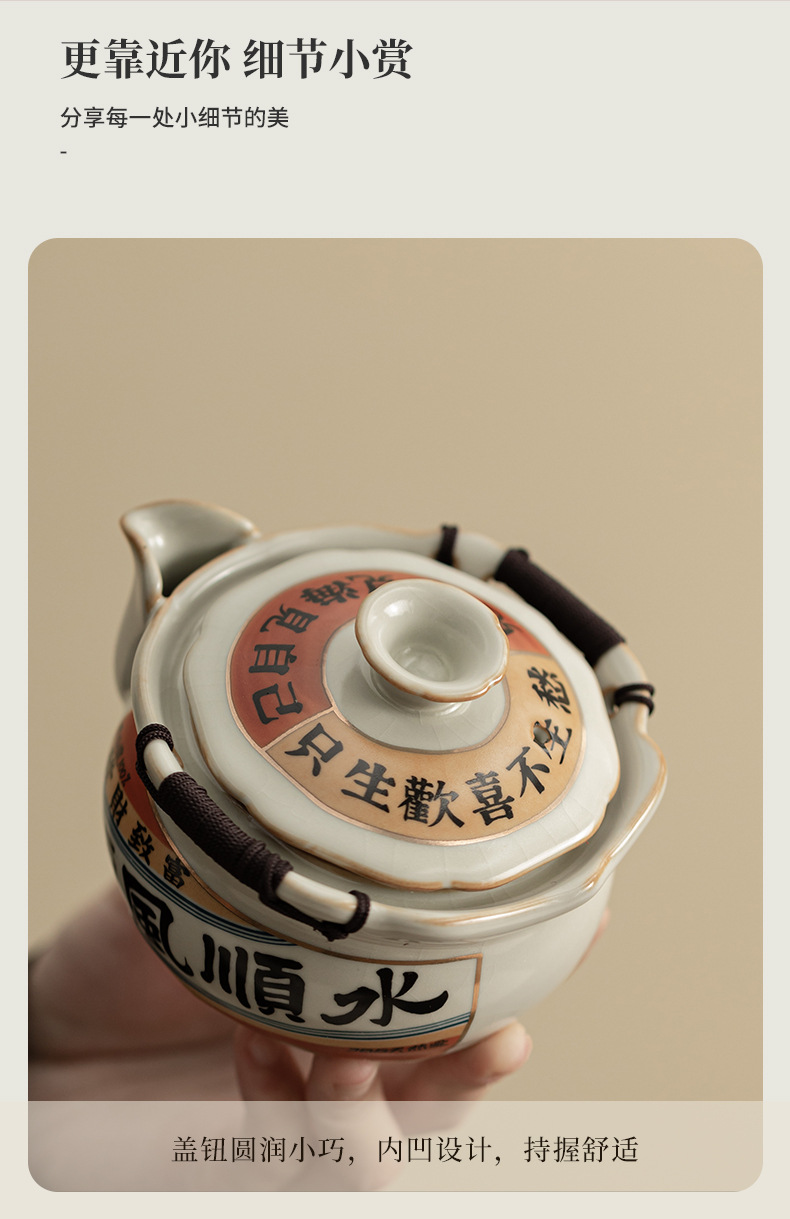 - Bộ ấm trà du lịch một ấm ba cốc có thể nâng cốc trà lò Ru cổ cầm tay ấm trà cầm tay