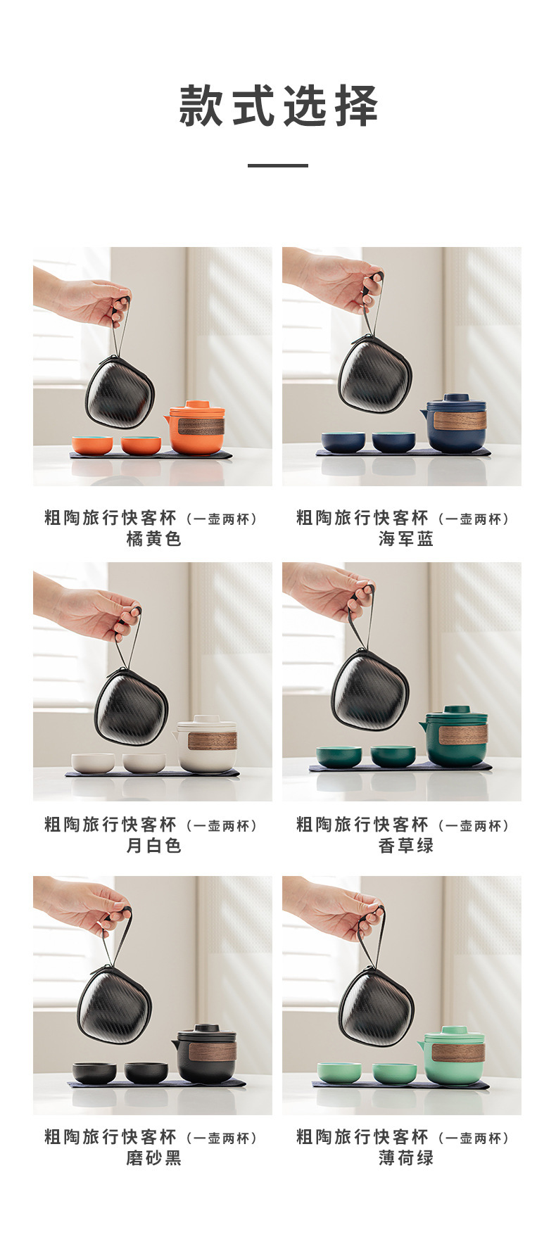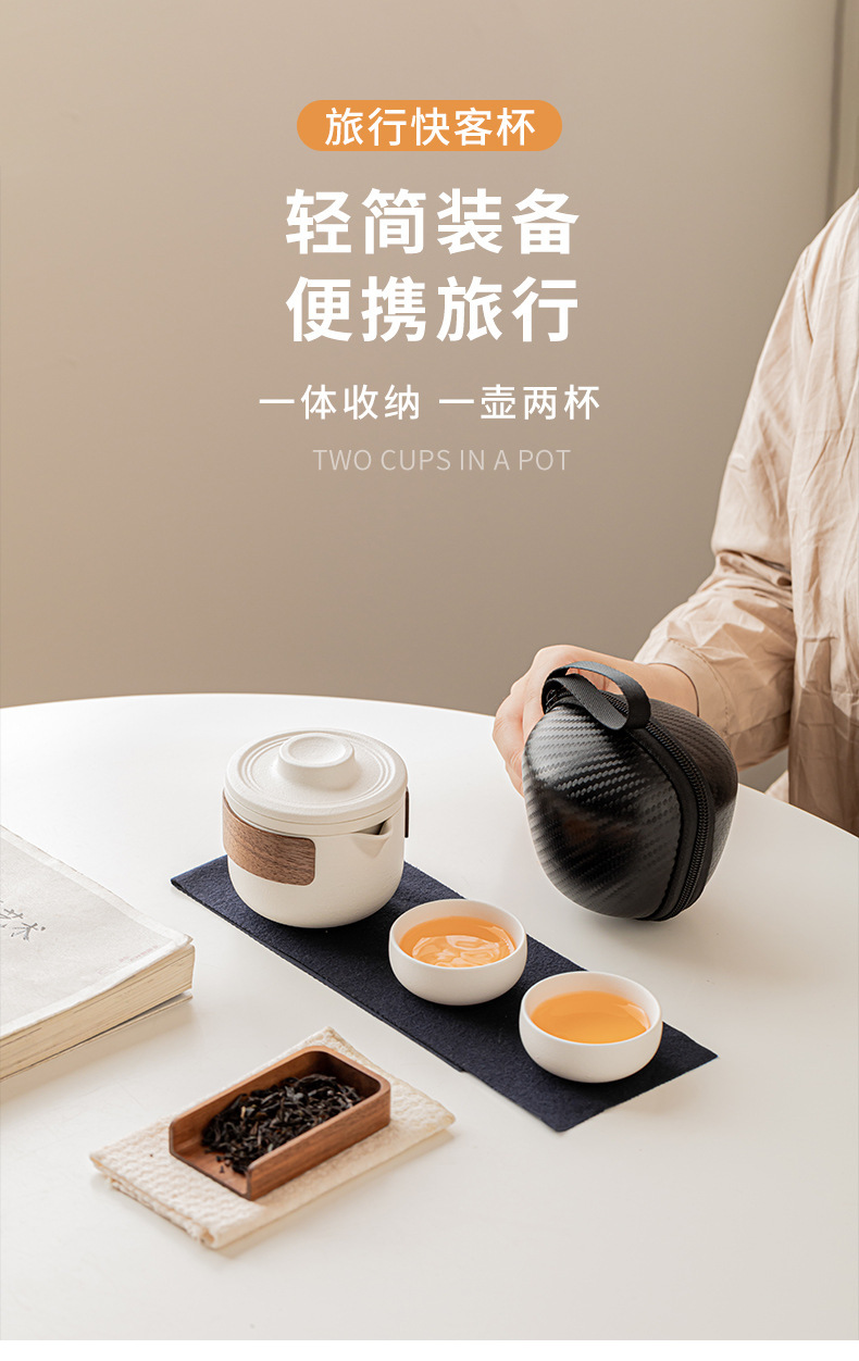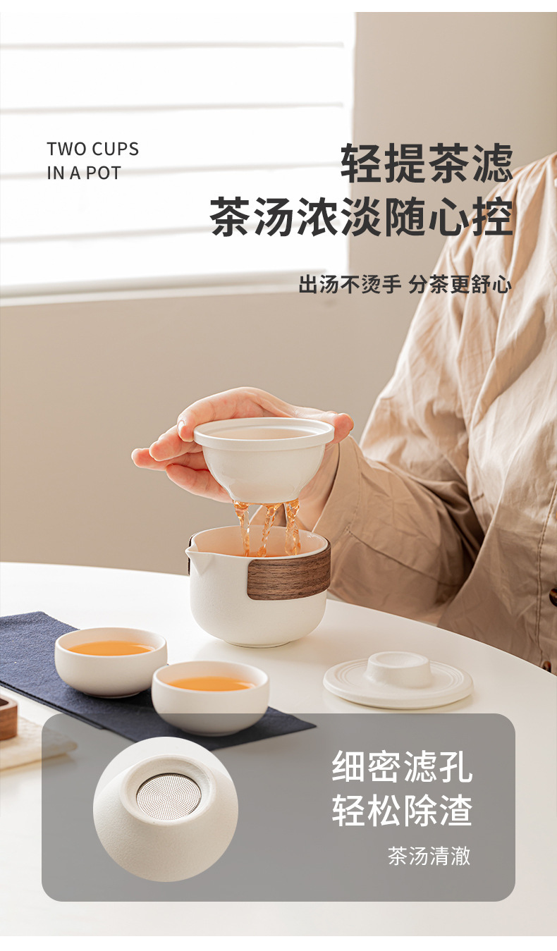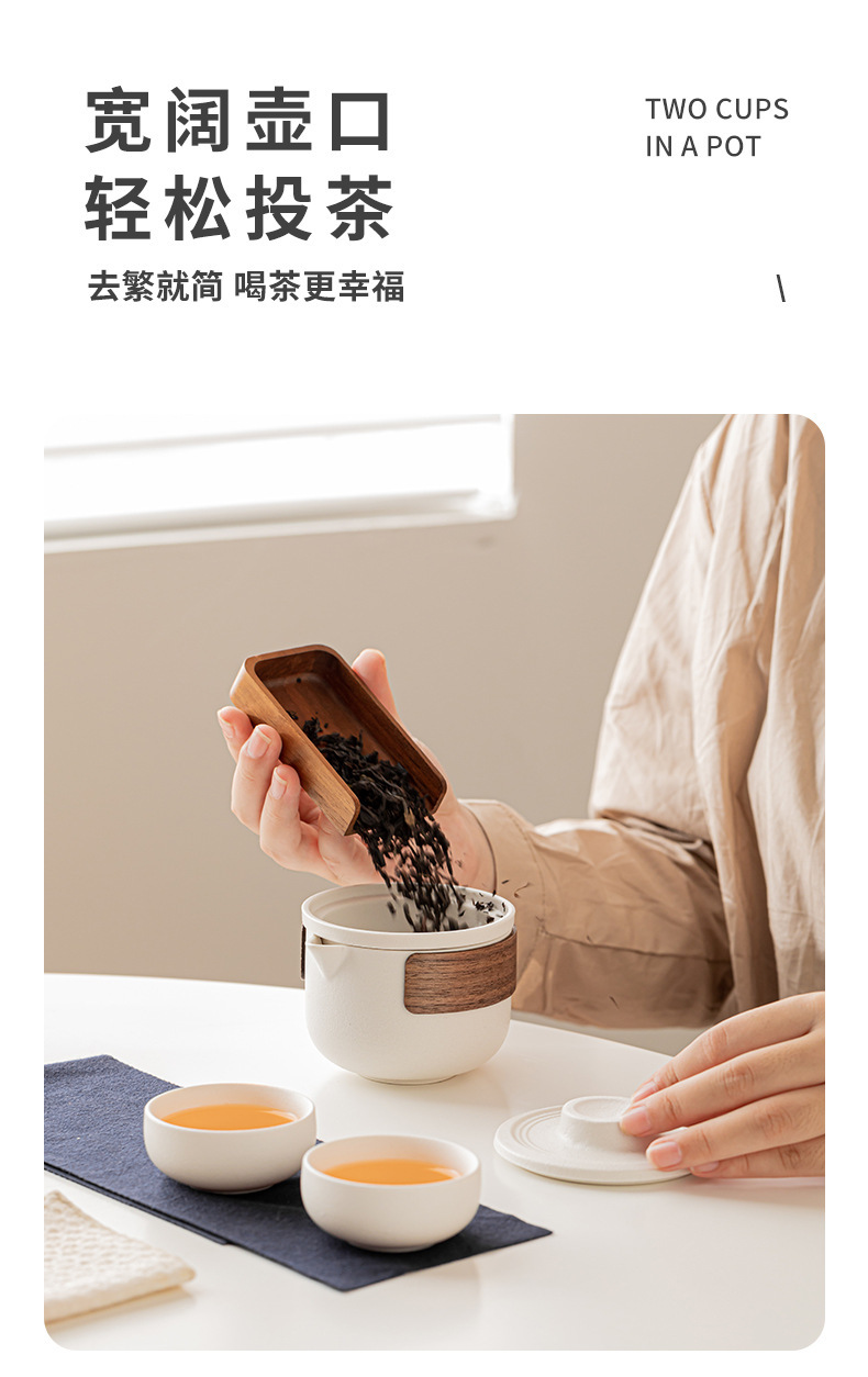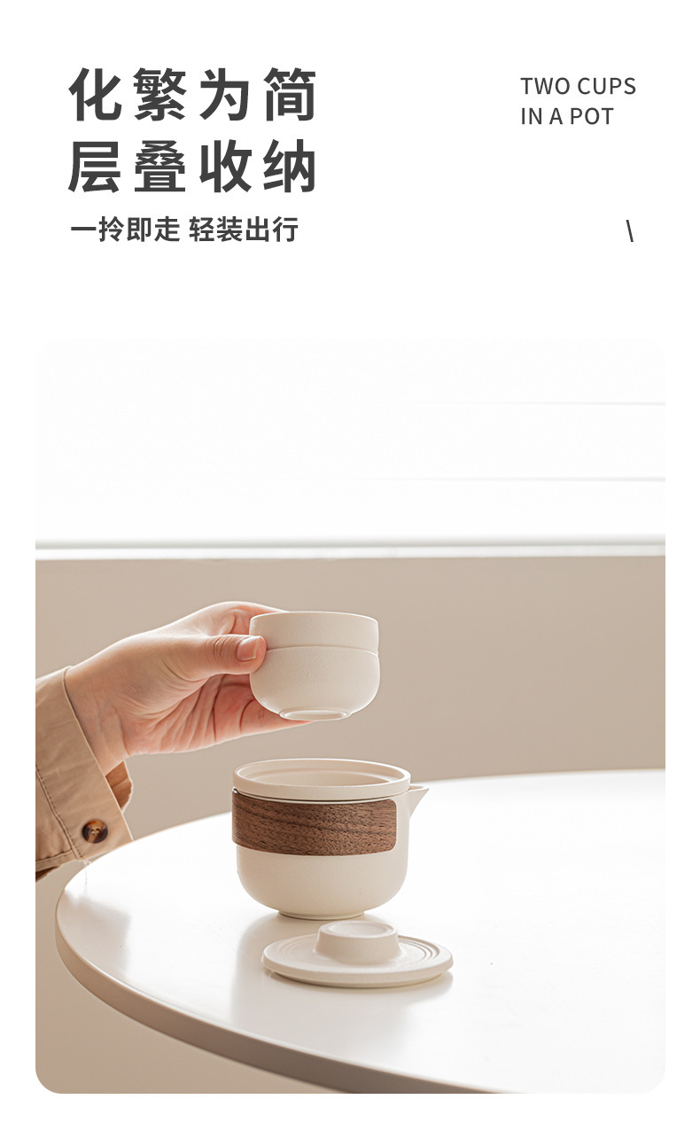 陶制手作 一壶二杯 便携收纳旅行茶具 防烫手陶瓷快客杯 创意极简
