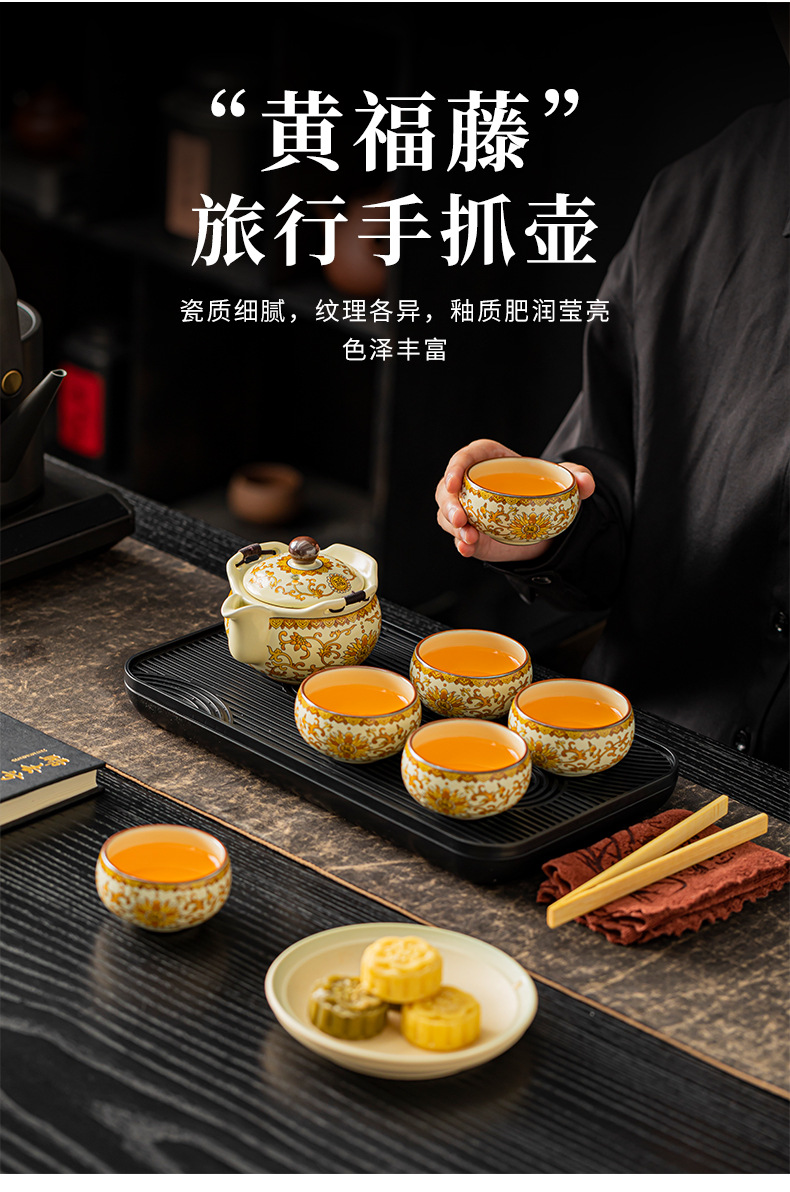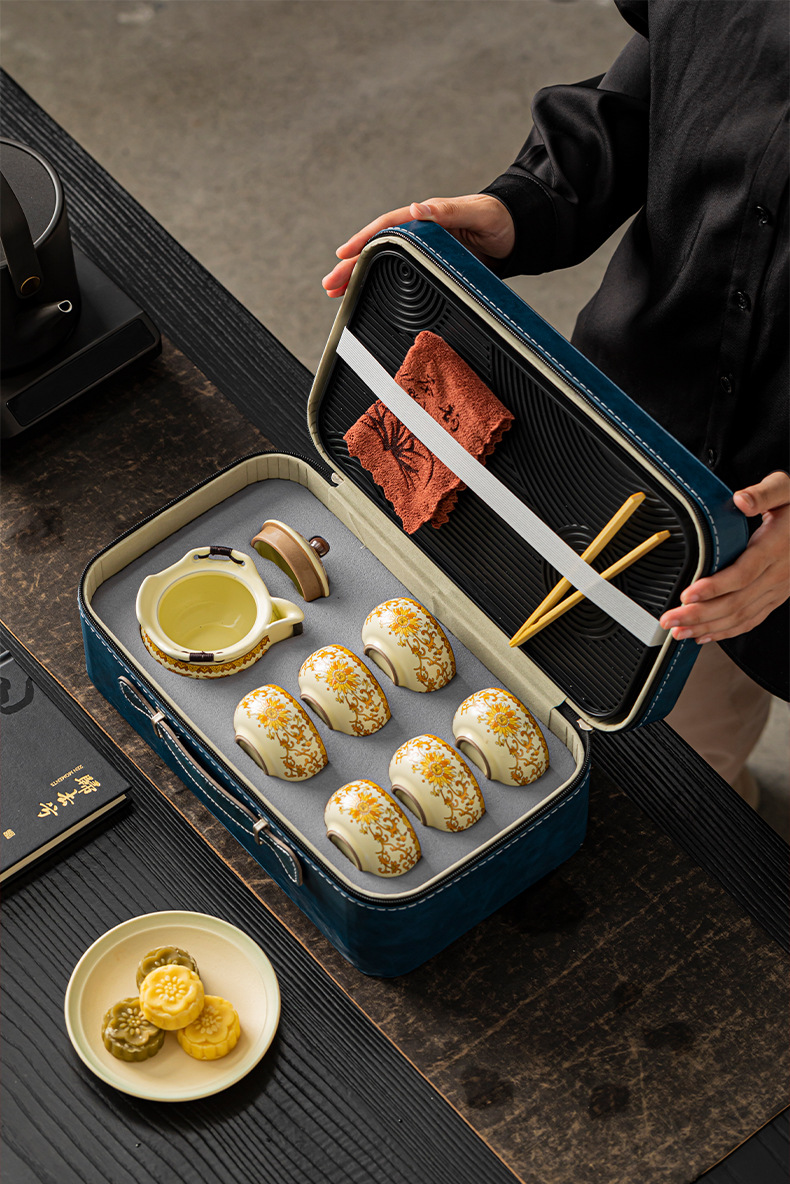 Bộ ấm trà du lịch Ru Kiln gốm sứ trắng xanh cầm tay cao cấp nhẹ sang trọng ấm trà cốc trà trọn bộ hộp quà