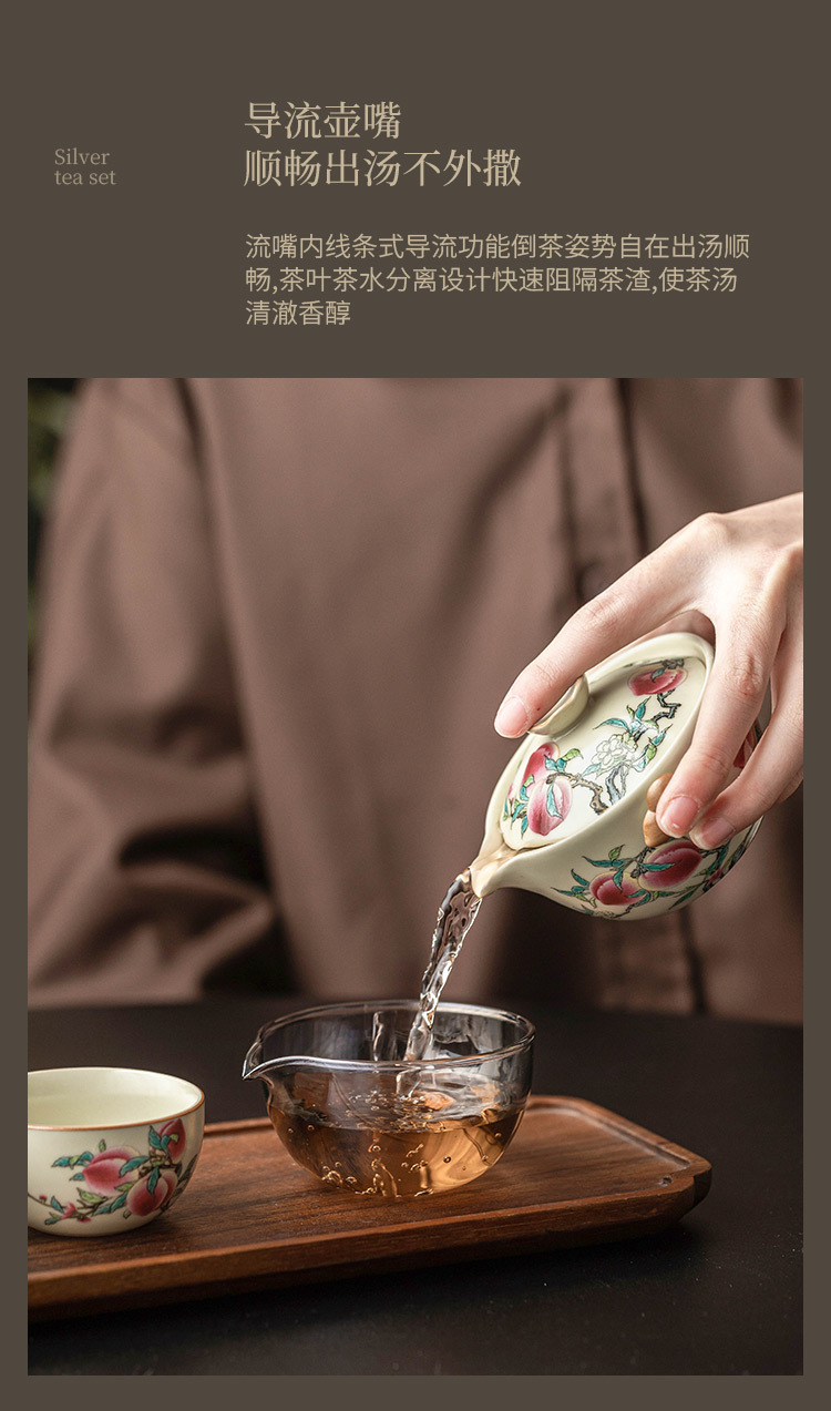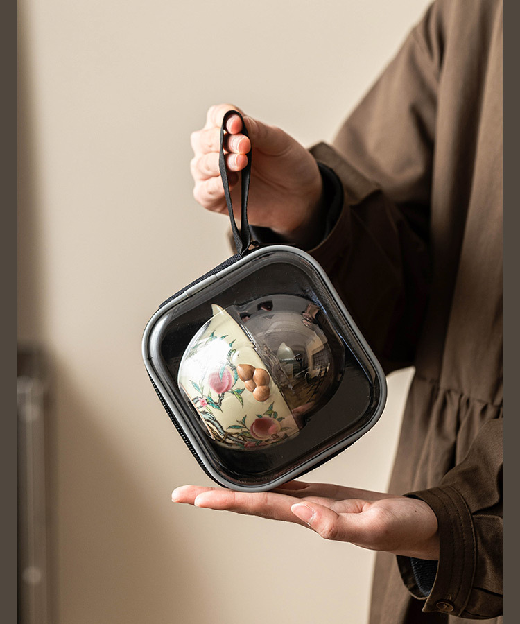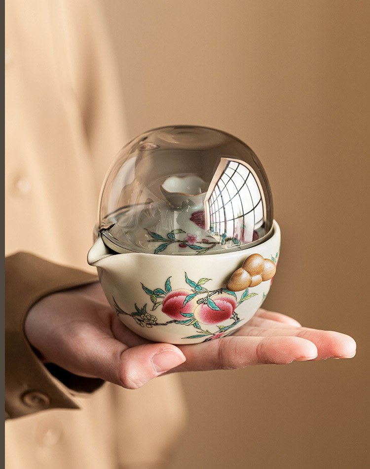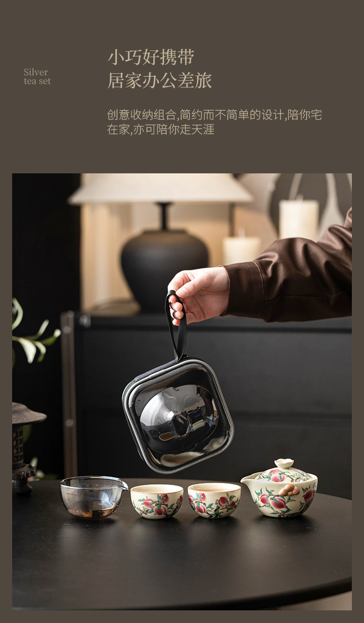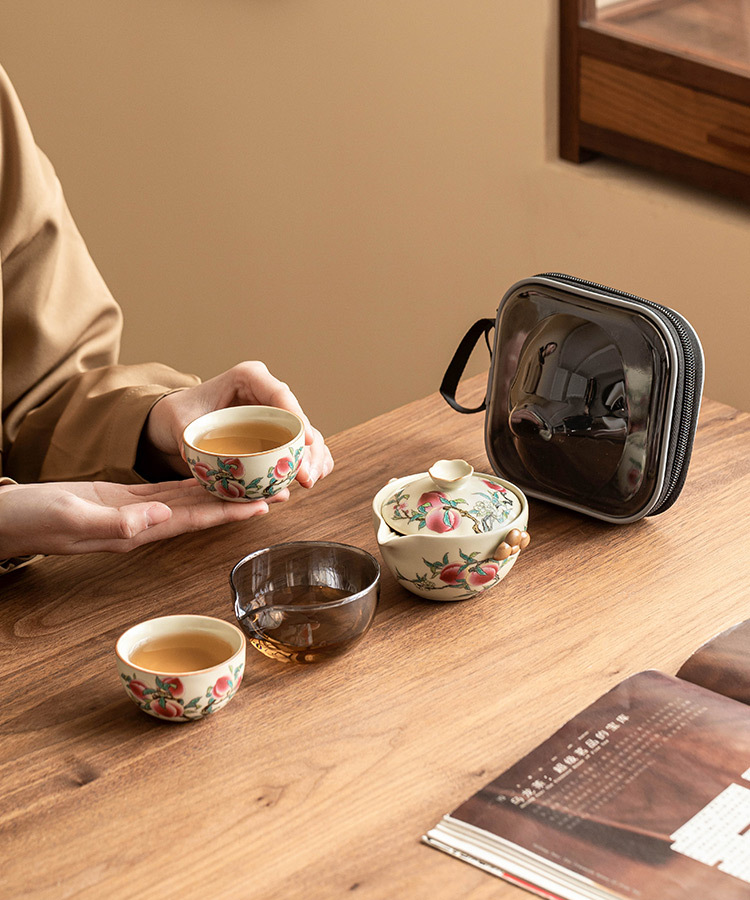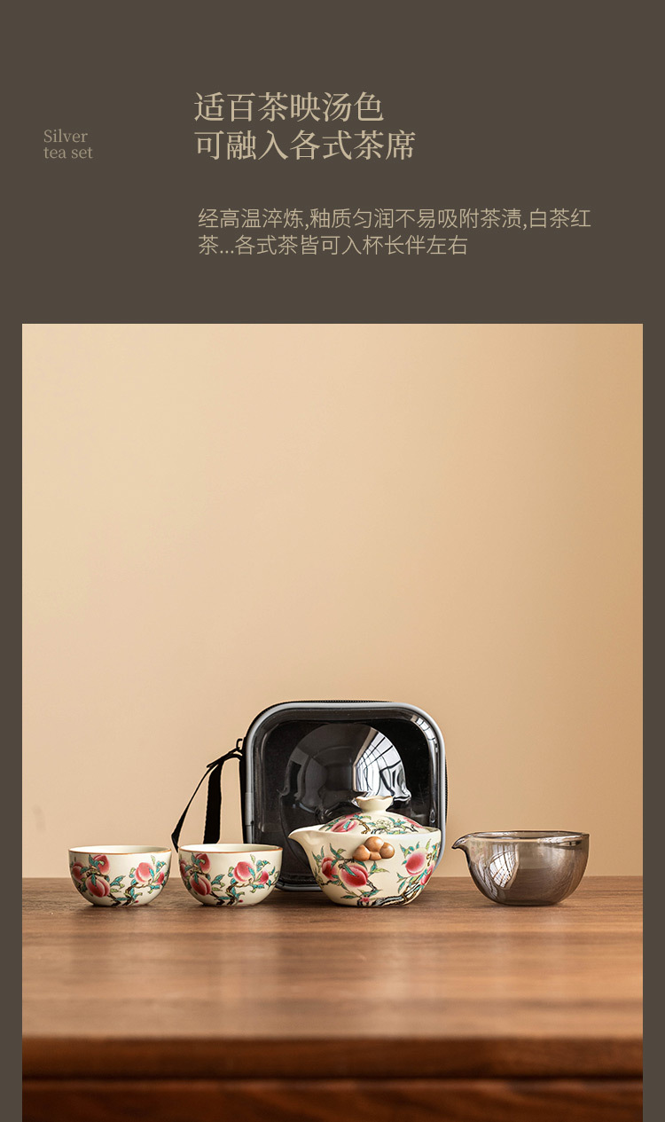 - Bộ ấm trà du lịch Ruyao Pastel Nine Peach, cốc khách di động ngoài trời, một ấm ba cốc, ấm trà gốm sứ