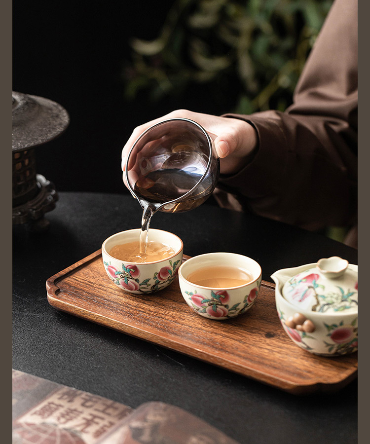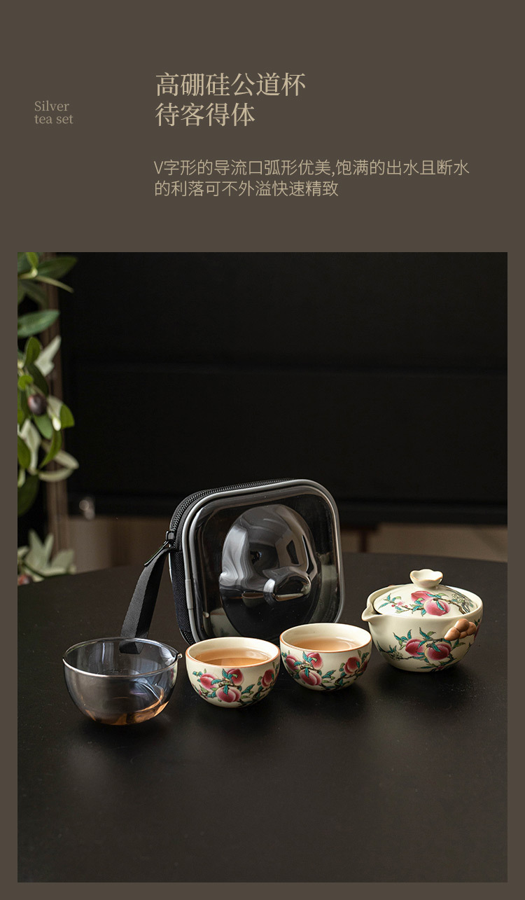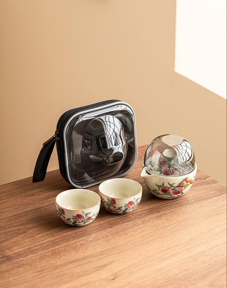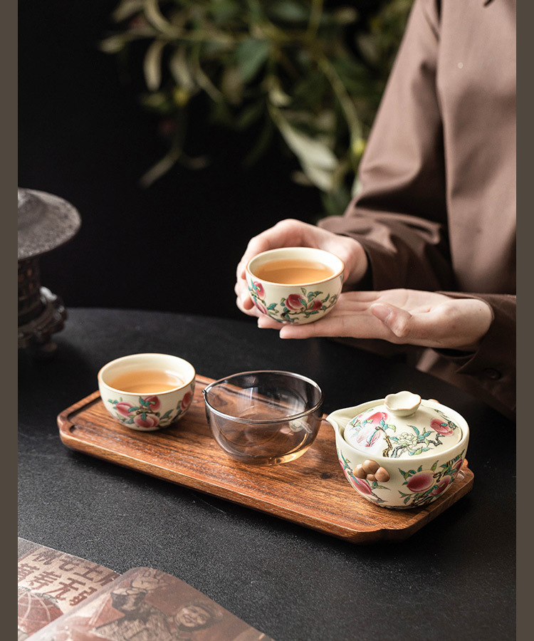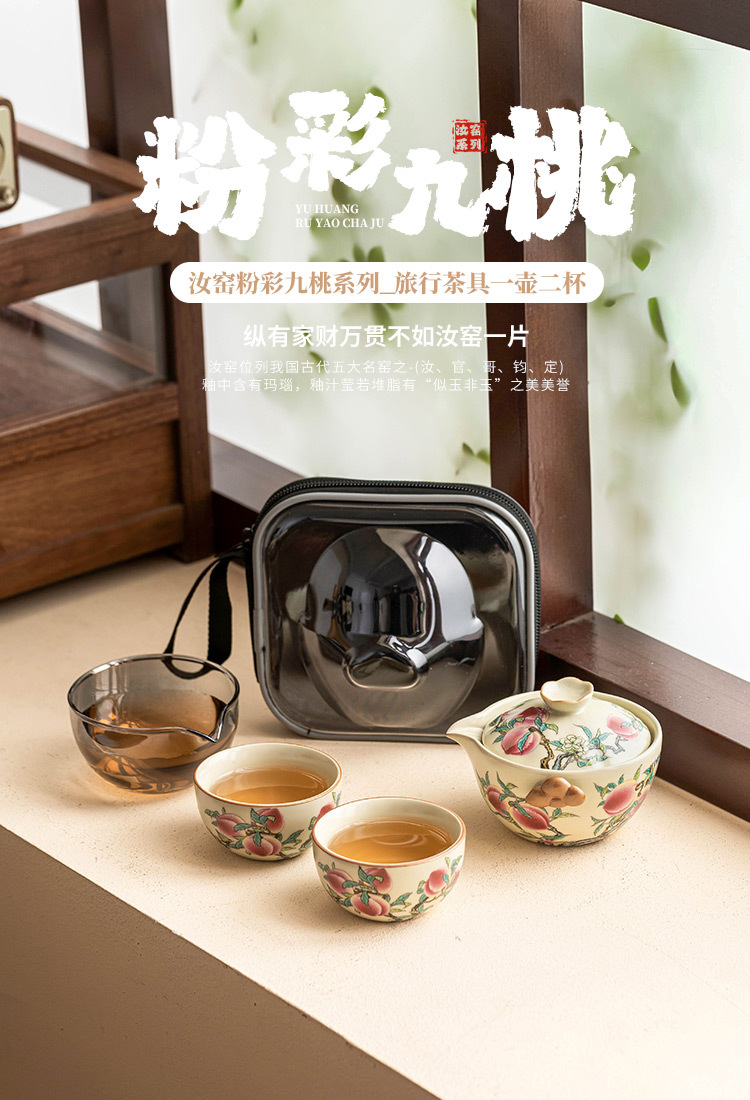 Bộ ấm trà du lịch Ruyao Pastel Nine Peach, cốc khách di động ngoài trời, một ấm ba cốc, ấm trà gốm sứ