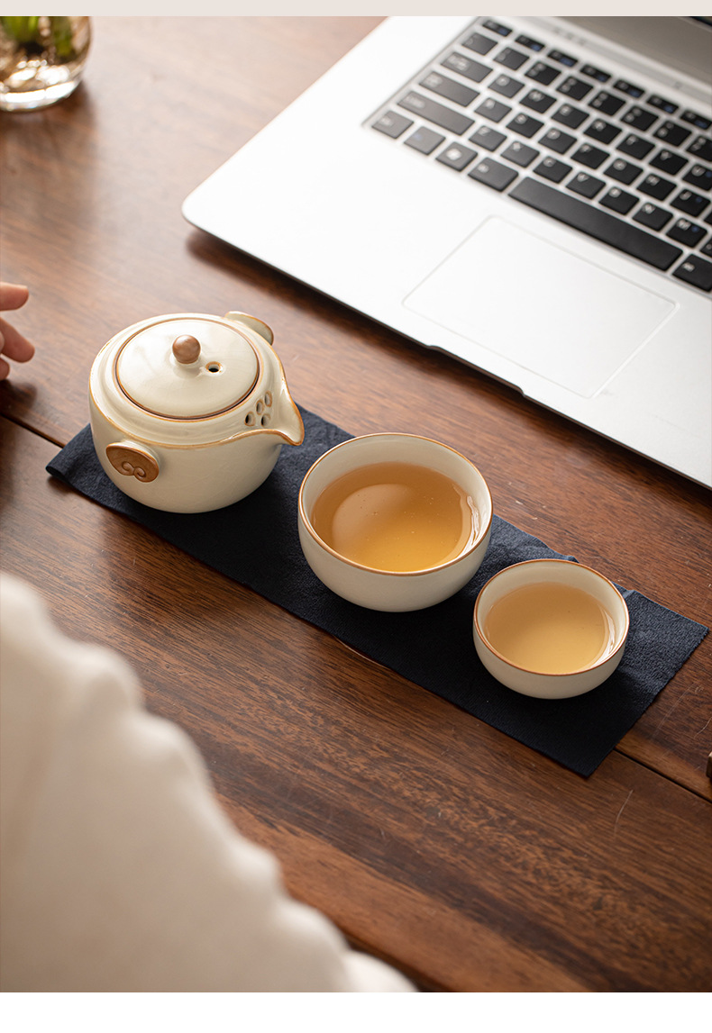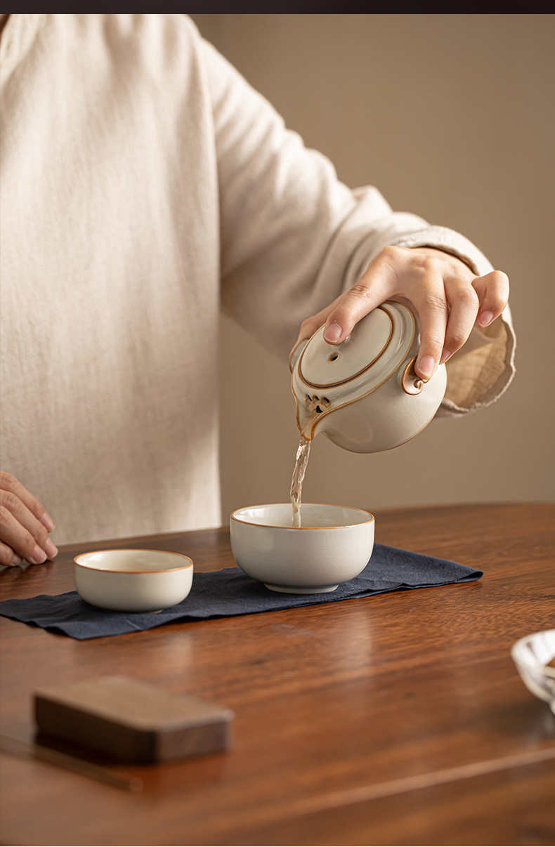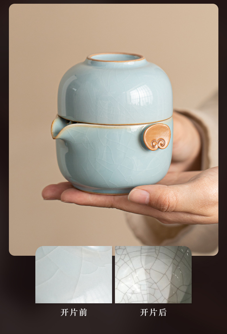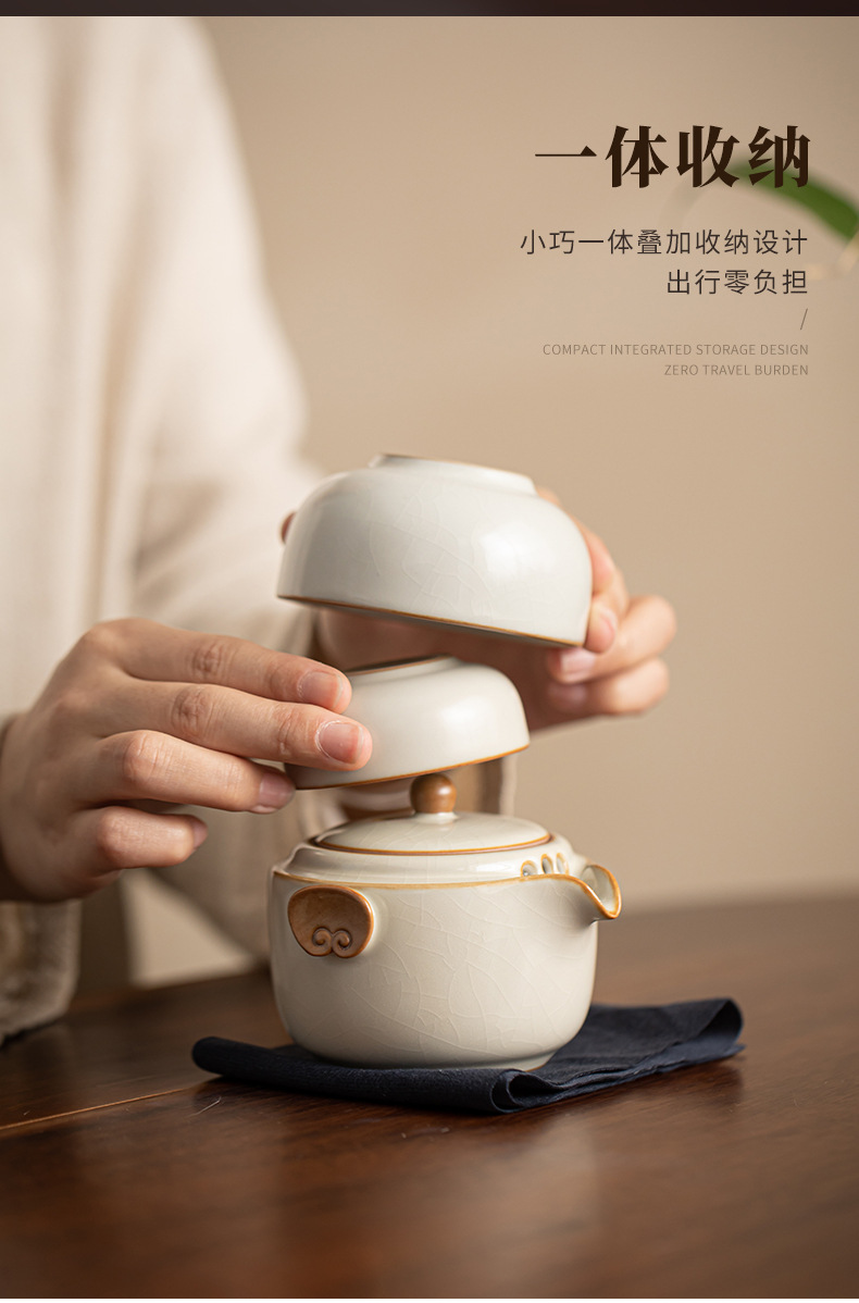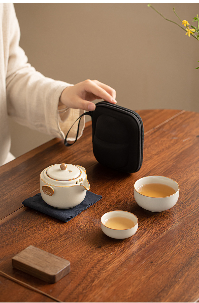 Bộ ấm trà du lịch Ruyao Ruyi, cốc phục vụ khách nhanh bằng gốm Sứ ngoài trời, một ấm hai cốc, Bộ trà di động, có thể mở và giữ
