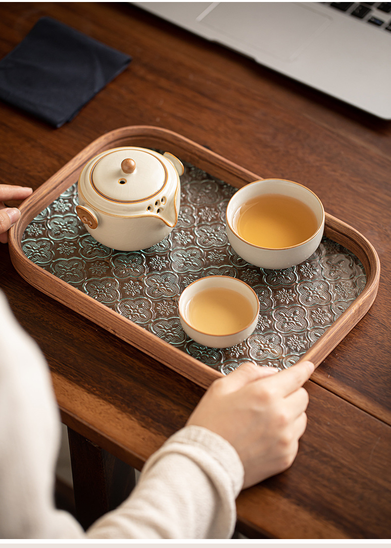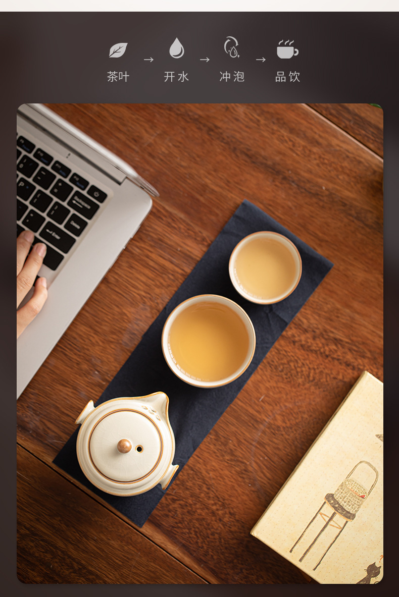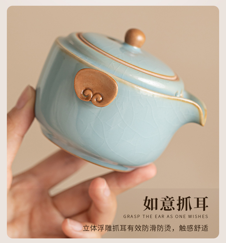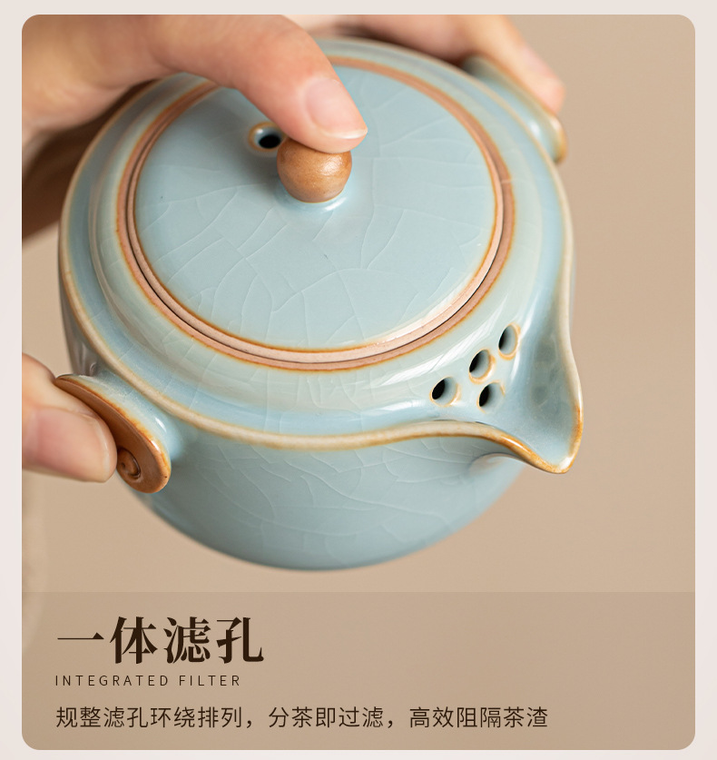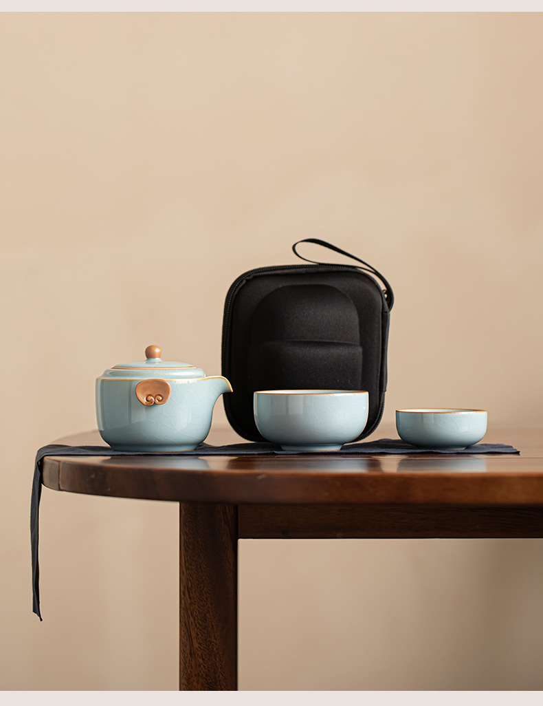 Bộ ấm trà du lịch Ruyao Ruyi, cốc phục vụ khách nhanh bằng gốm Sứ ngoài trời, một ấm hai cốc, Bộ trà di động, có thể mở và giữ