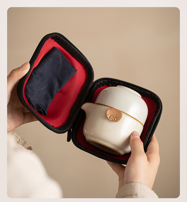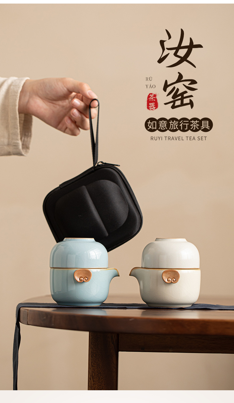 - Bộ ấm trà du lịch Ruyao Ruyi, cốc phục vụ khách nhanh bằng gốm Sứ ngoài trời, một ấm hai cốc, Bộ trà di động, có thể mở và giữ