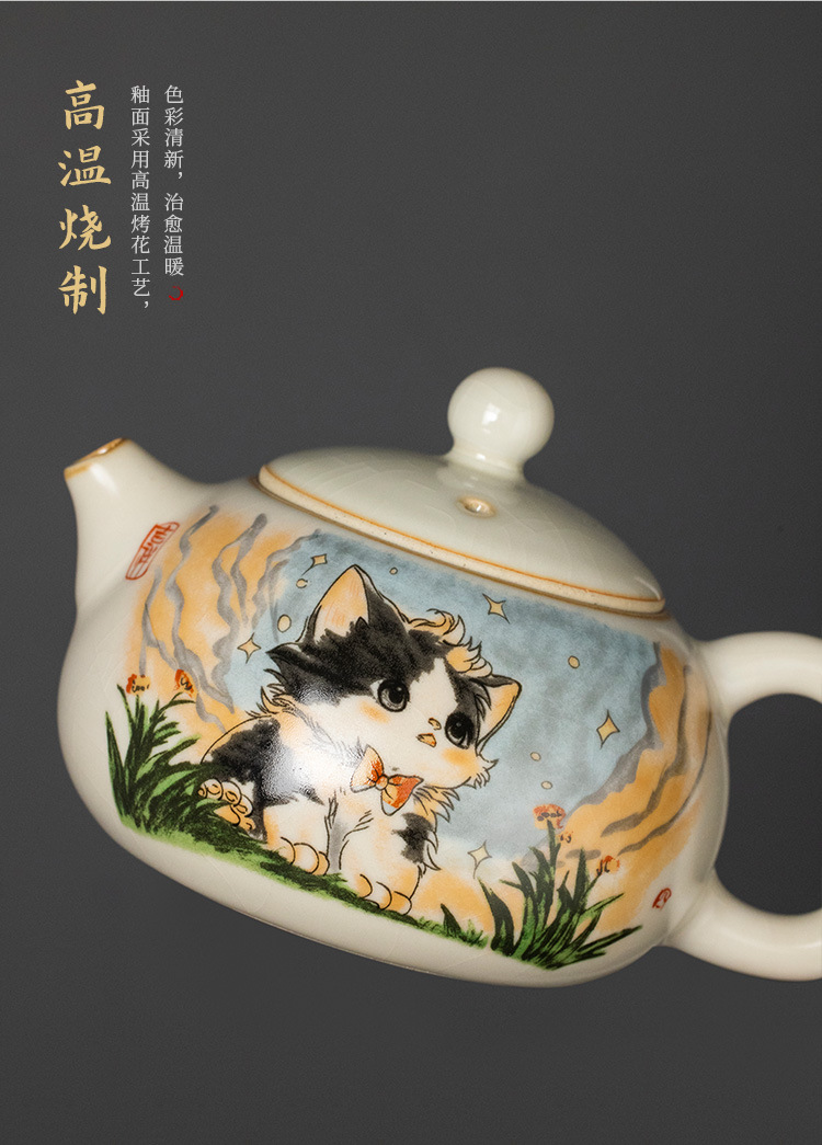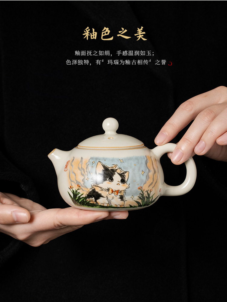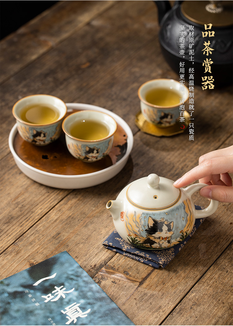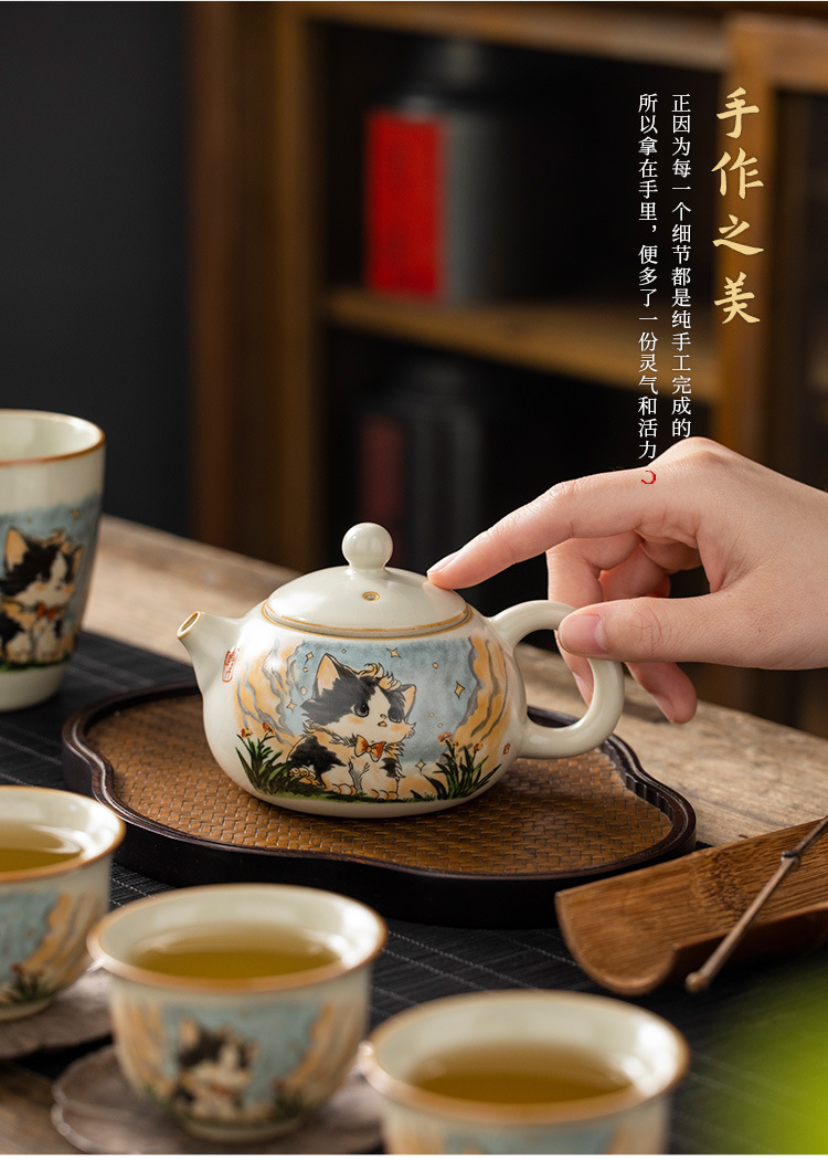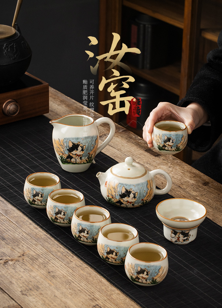 Bộ ấm trà gốm sứ Ru lò dễ thương bộ ấm trà công phu sáu chén cao cấp phòng khách gia dụng