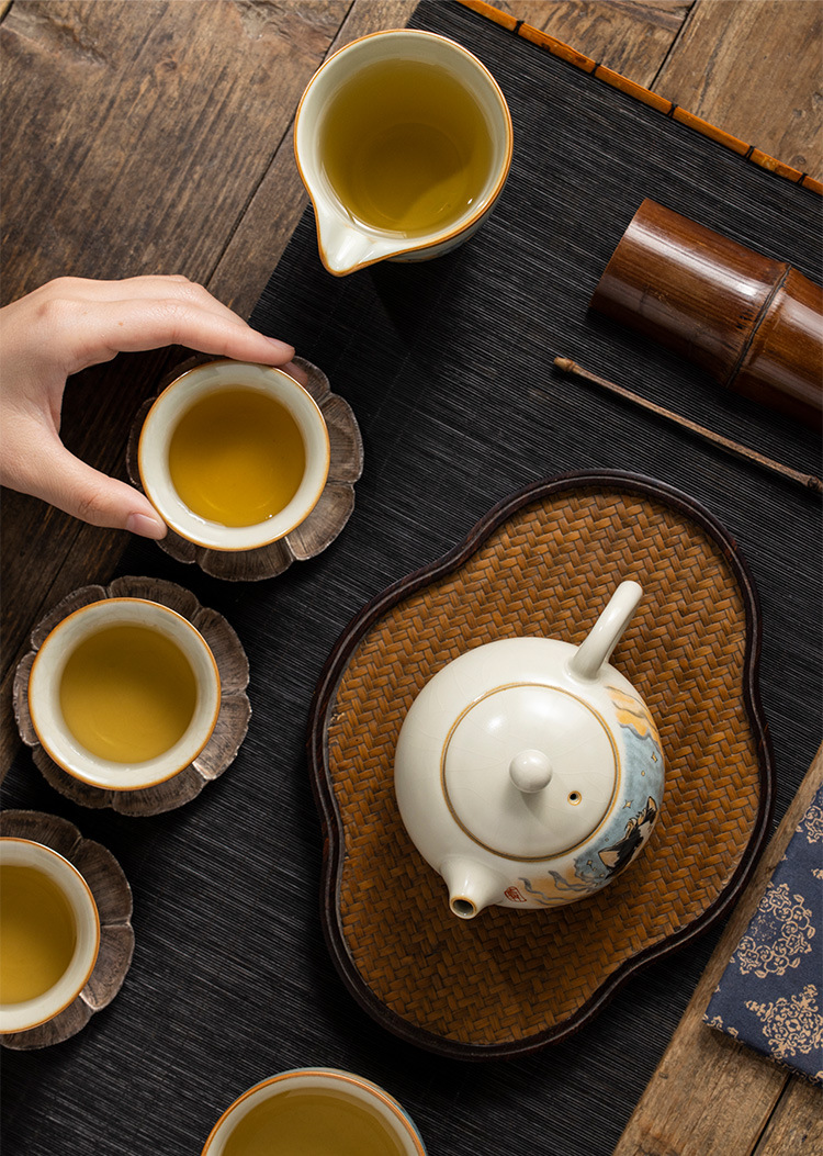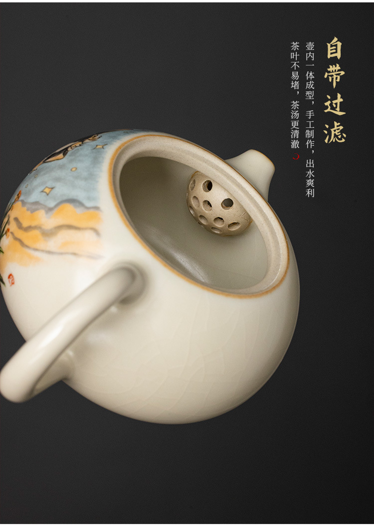 - Bộ ấm trà gốm sứ Ru lò dễ thương bộ ấm trà công phu sáu chén cao cấp phòng khách gia dụng