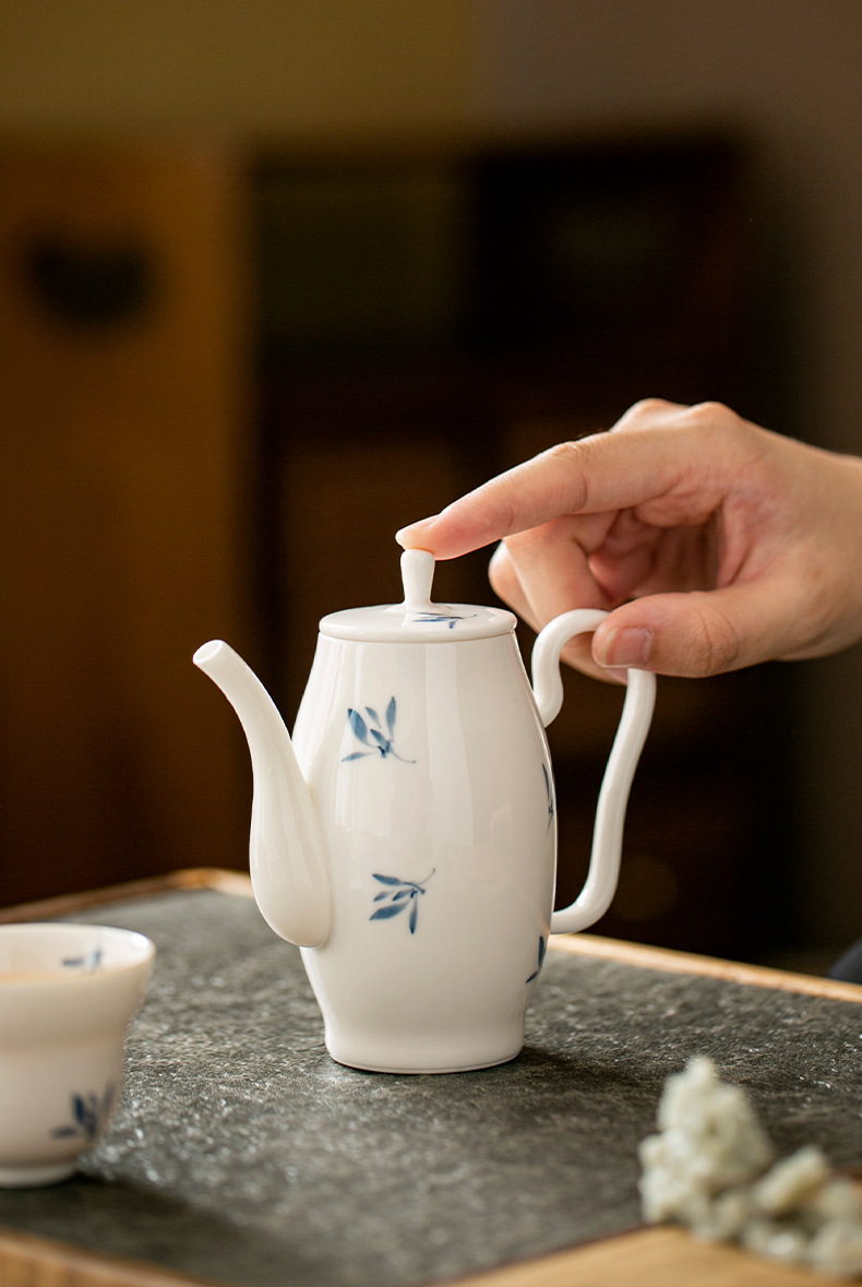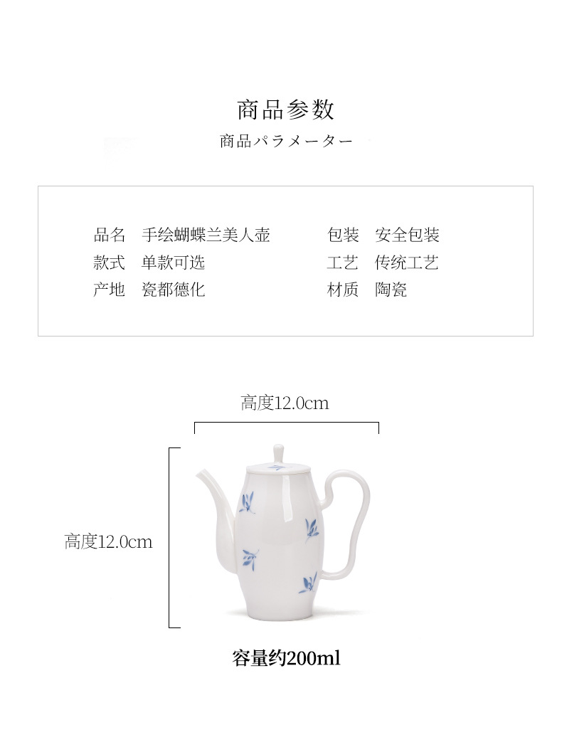 Bộ ấm trà gốm sứ trắng hoa lan bướm vẽ tay tinh khiết ấm trà gia dụng ấm pha trà có lọc bán buôn