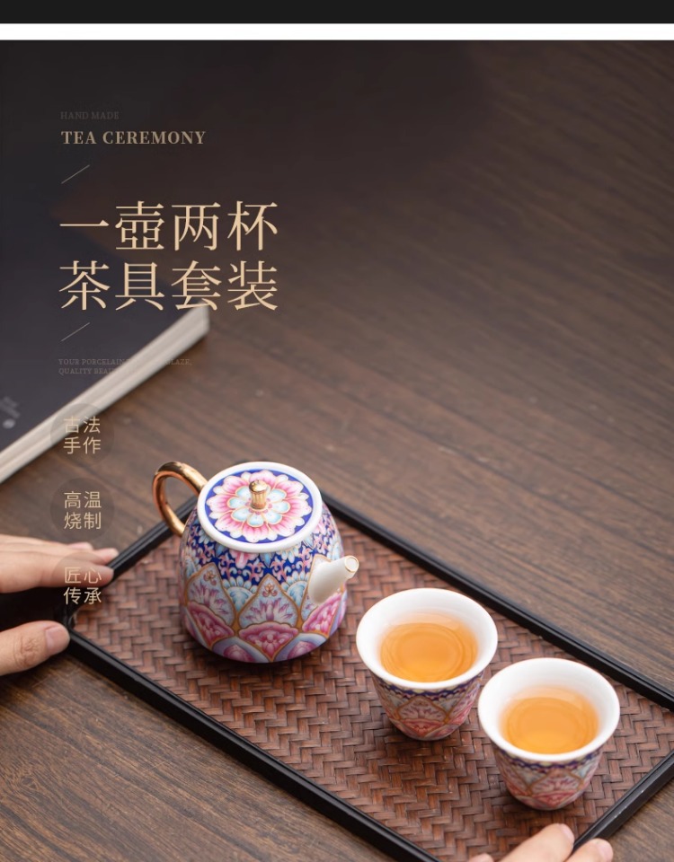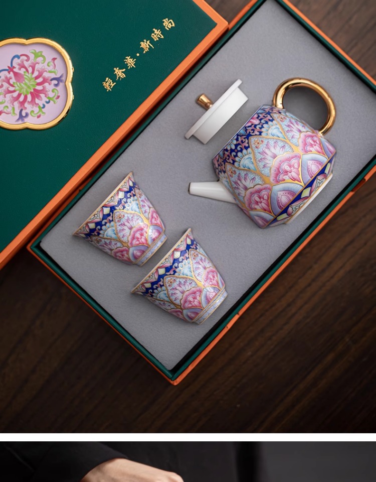 - Bộ ấm trà gốm sứ tráng men một ấm hai cốc Hộp quà cao cấp Ấm trà Kung Fu Bộ ấm trà Bộ đồ lưu niệm bán buôn