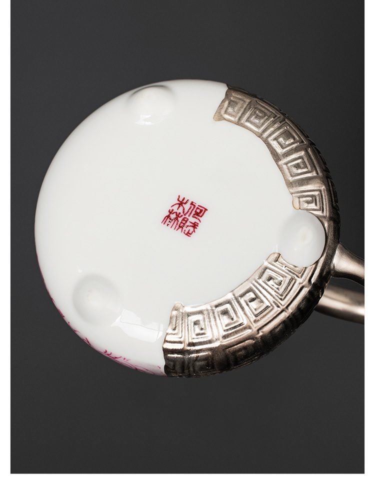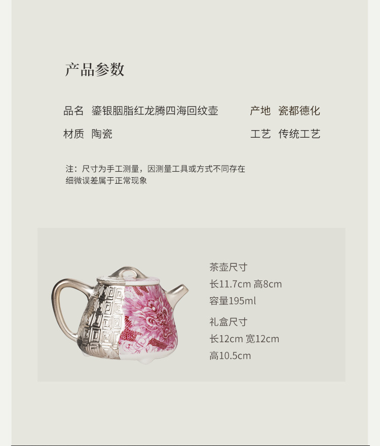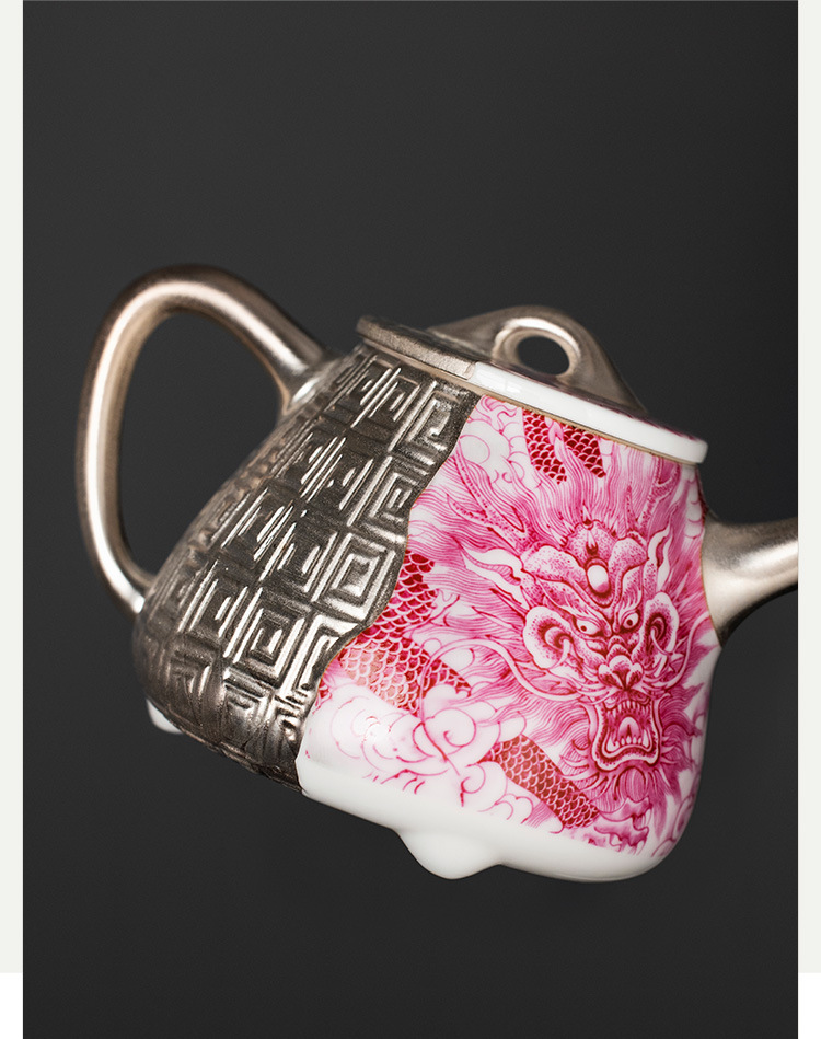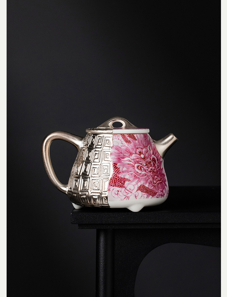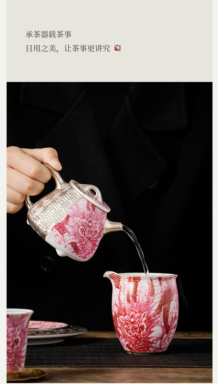 Bộ ấm trà hình rồng đỏ mạ bạc carmine, bộ ấm trà, quà tặng sinh nhật cho cha mẹ, người lớn tuổi và người lớn tuổi