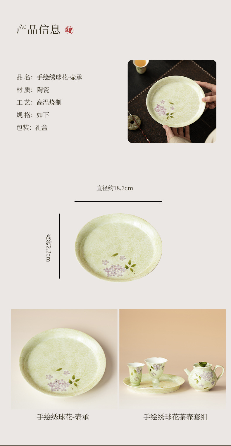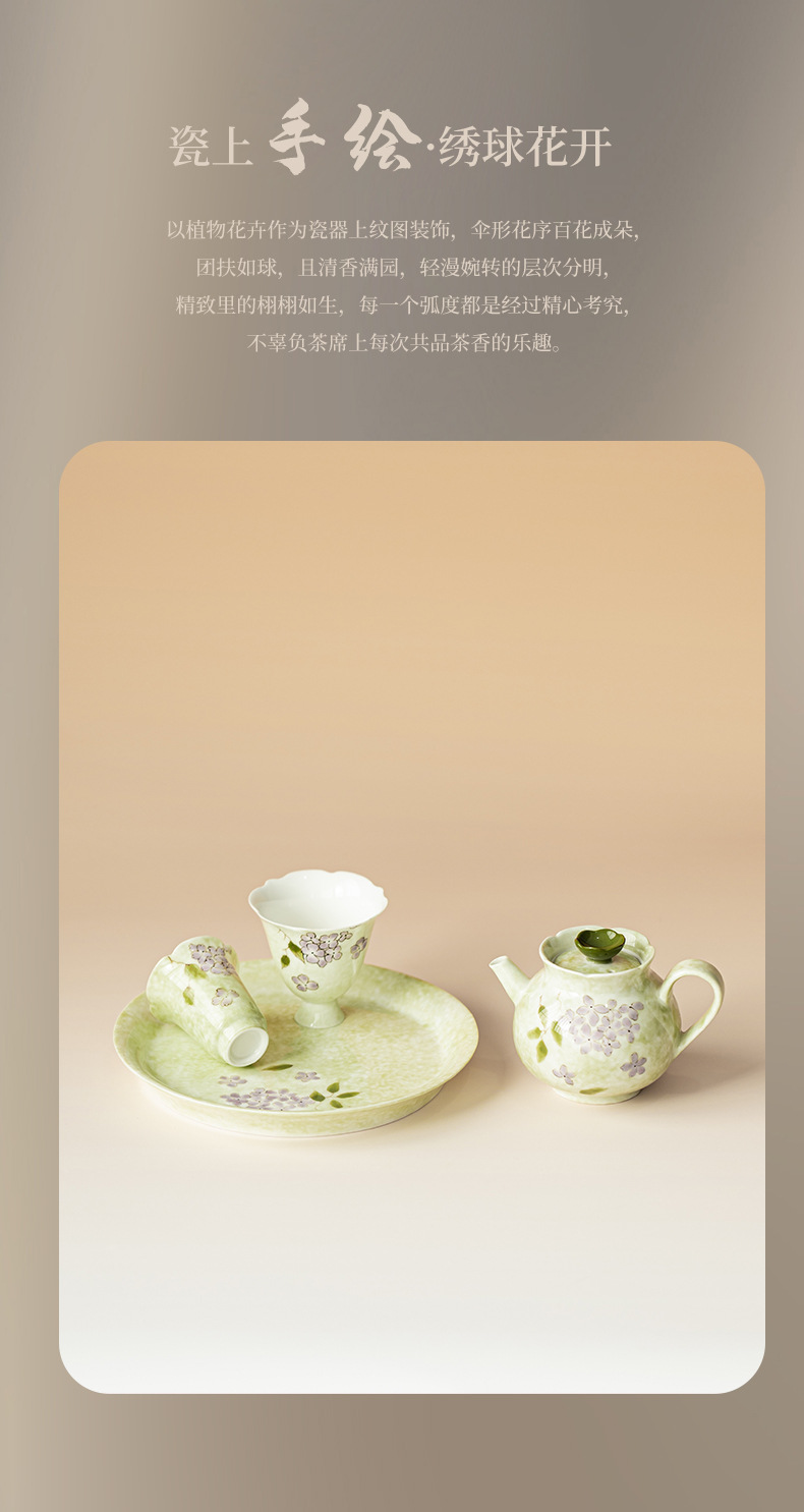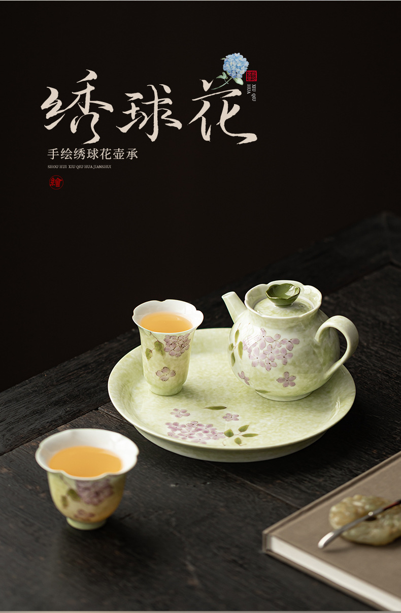 Bộ ấm trà hoa cẩm tú cầu vẽ tay Bộ ấm trà Kung Fu gia dụng một ấm hai chén có bàn pha trà khô bằng gốm sứ Đồ pha trà đơn giản