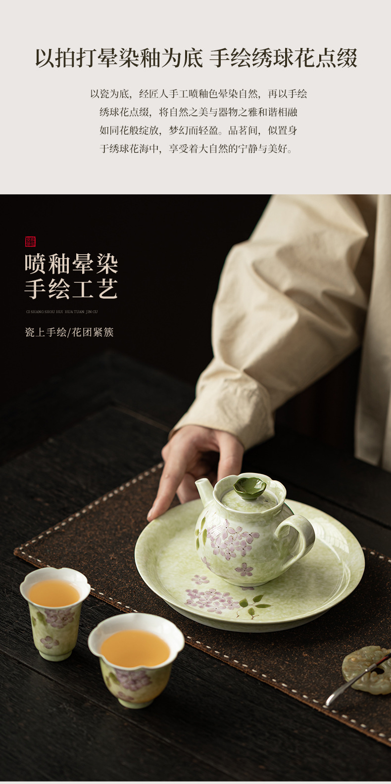 - Bộ ấm trà hoa cẩm tú cầu vẽ tay Bộ ấm trà Kung Fu gia dụng một ấm hai chén có bàn pha trà khô bằng gốm sứ Đồ pha trà đơn giản