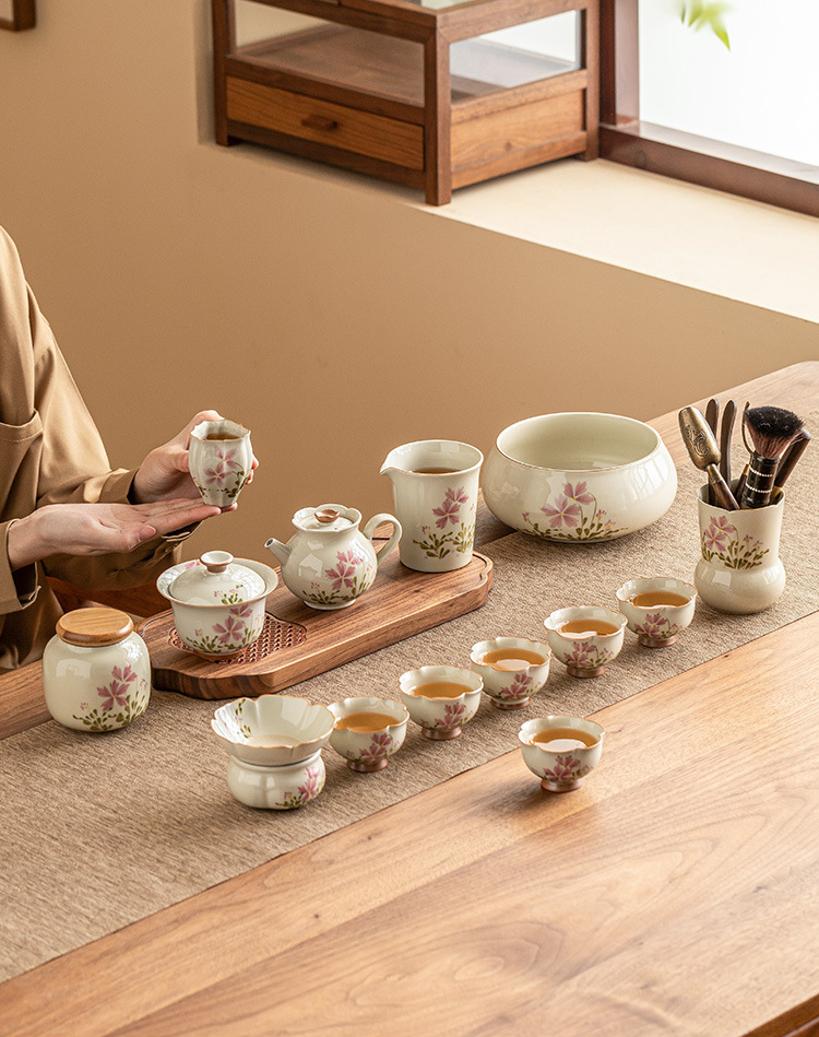 - Bộ ấm trà hoa cúc nhỏ vẽ tay Bộ ấm trà chén trà chén gốm sứ văn phòng gia dụng Bộ trà Kung Fu chuyên dùng để pha trà