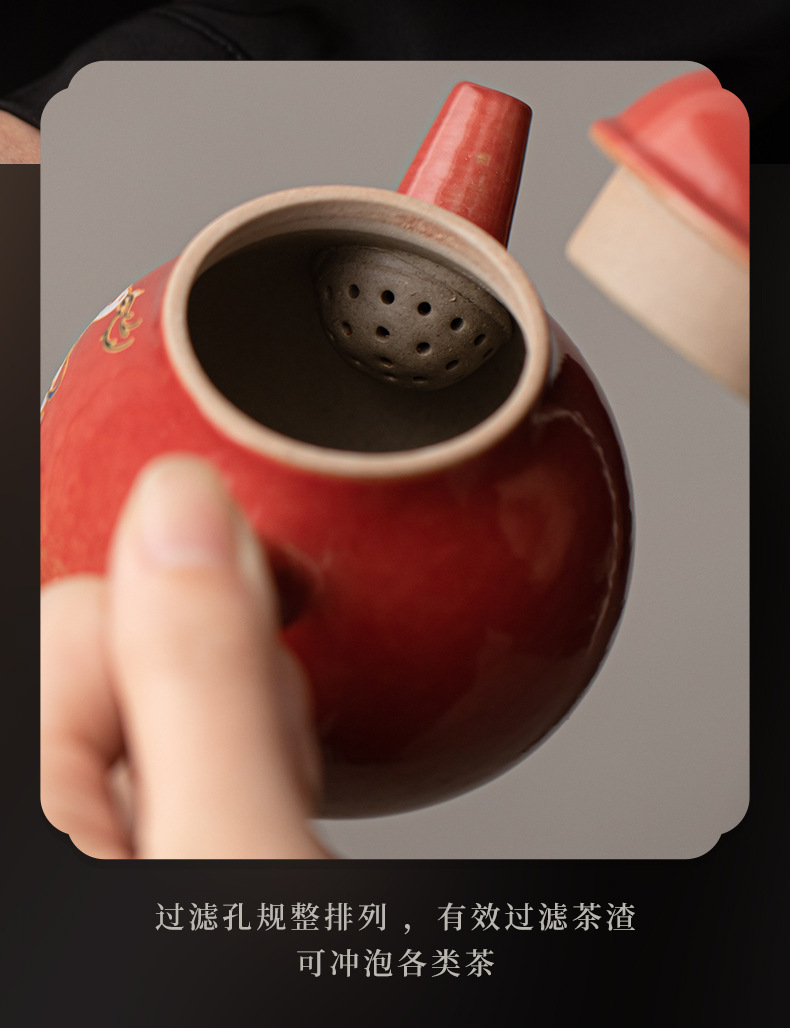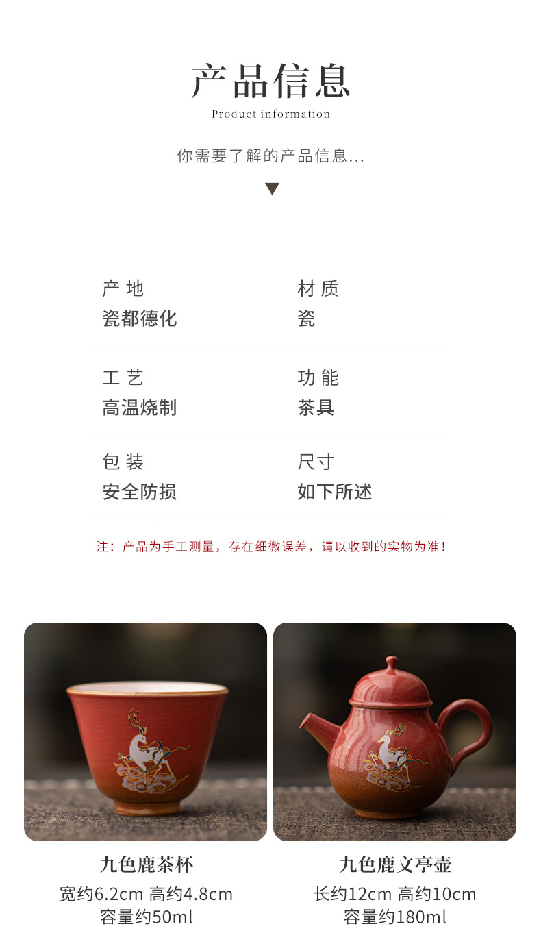 - Bộ ấm trà hươu chín màu ấm trà gốm sứ kiểu Trung Quốc mới cốc trà một ấm bốn cốc có ấm dụng cụ pha trà gia dụng