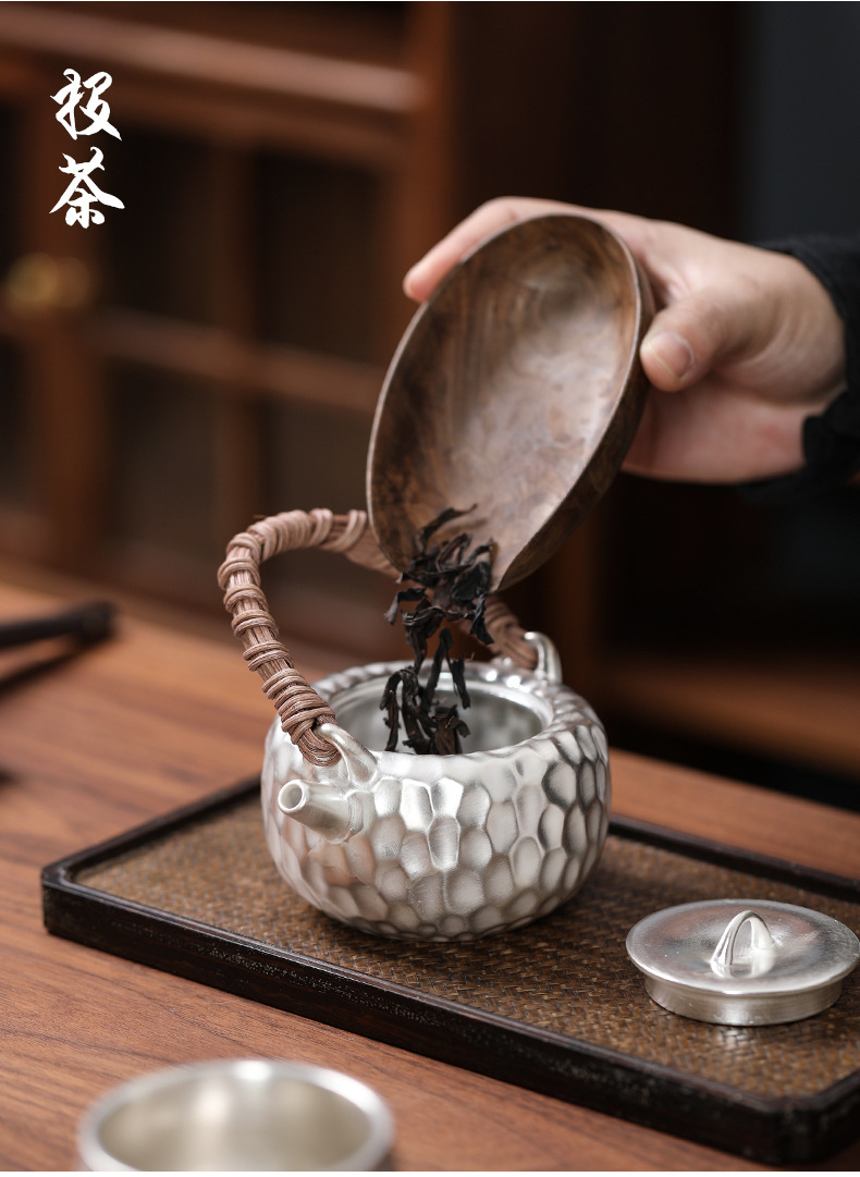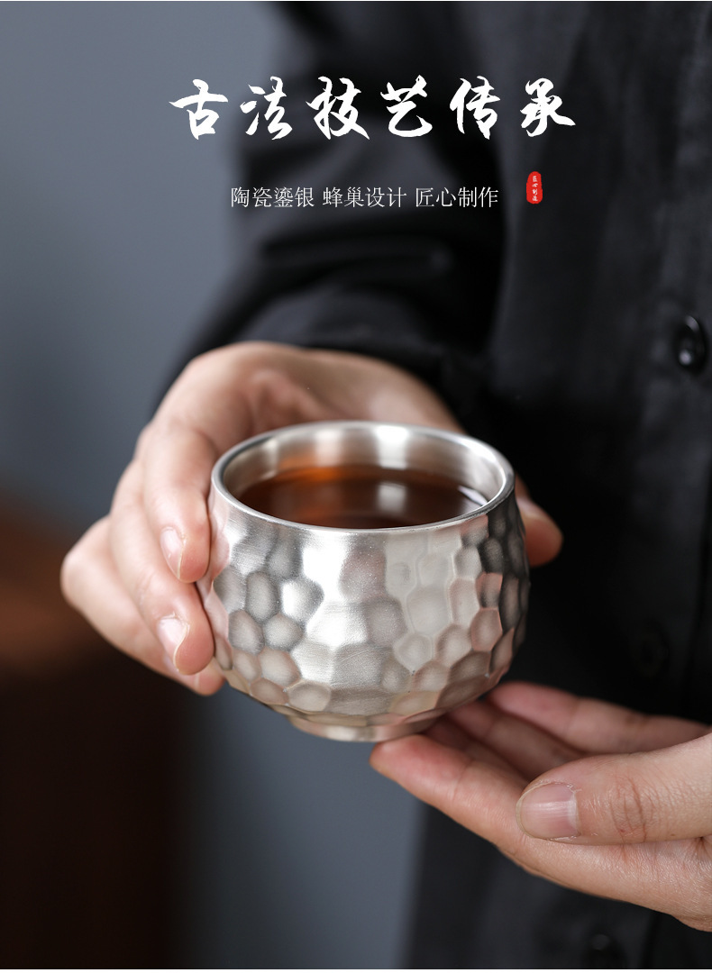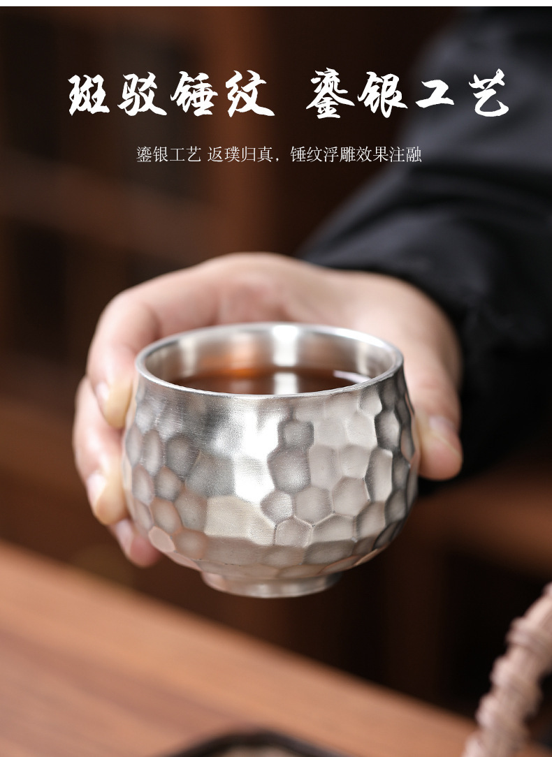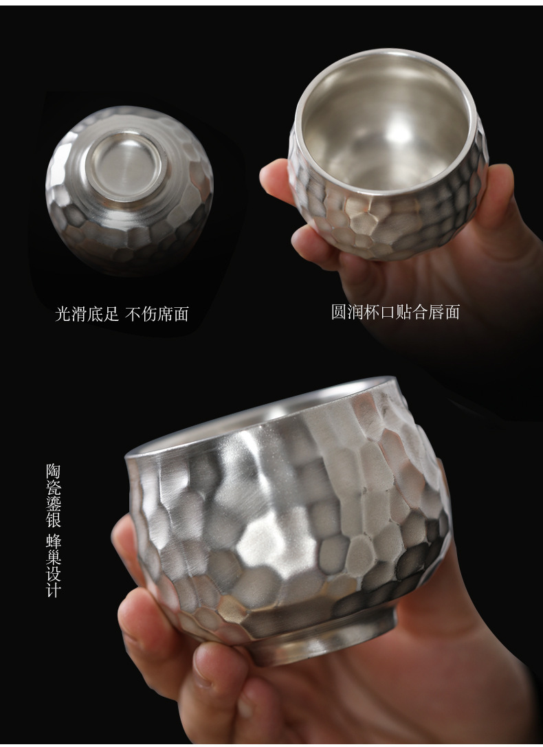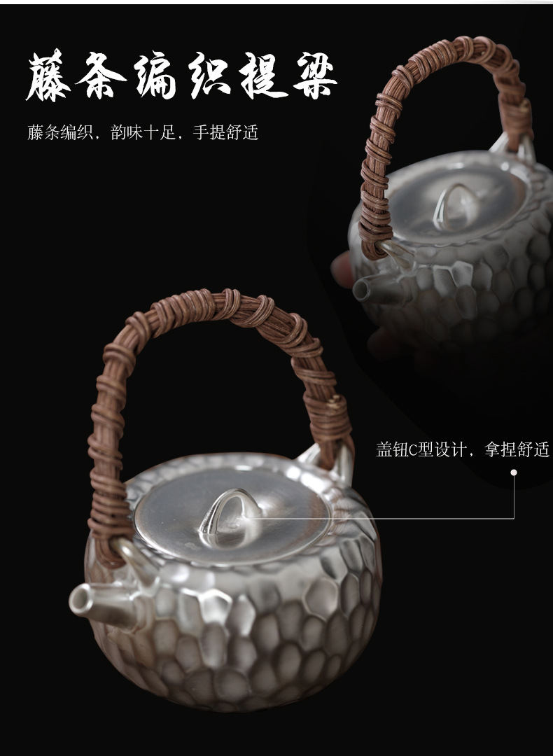 - Bộ ấm trà Kung Fu 999 bạc sterling một ấm một cốc gốm hình búa nâng xà văn phòng quà tặng di động du lịch