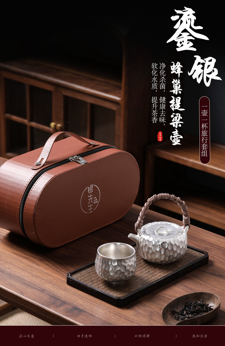 Bộ ấm trà Kung Fu 999 bạc sterling một ấm một cốc gốm hình búa nâng xà văn phòng quà tặng di động du lịch