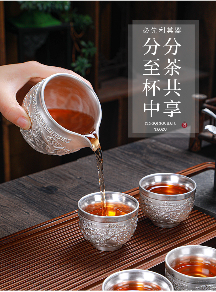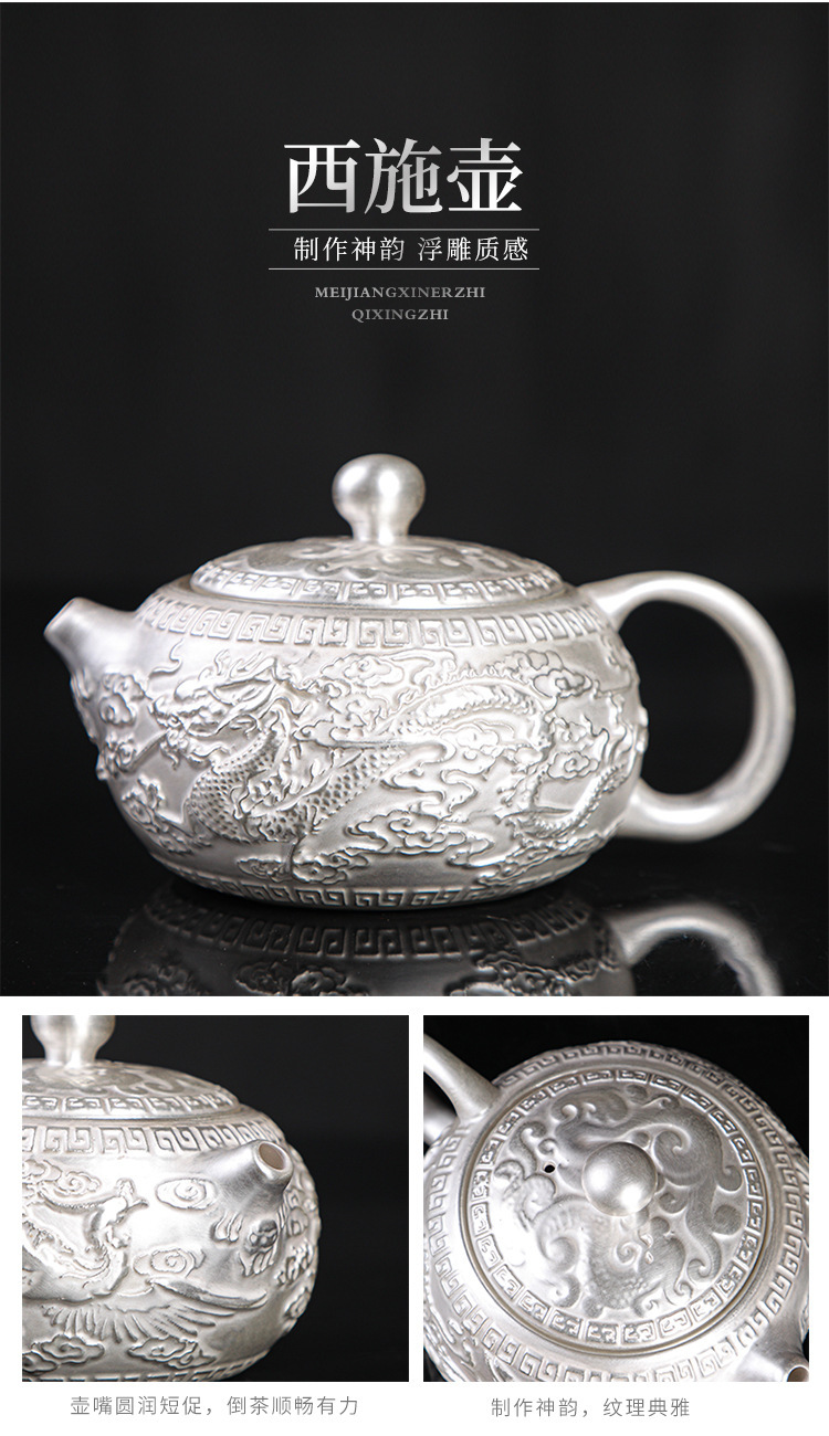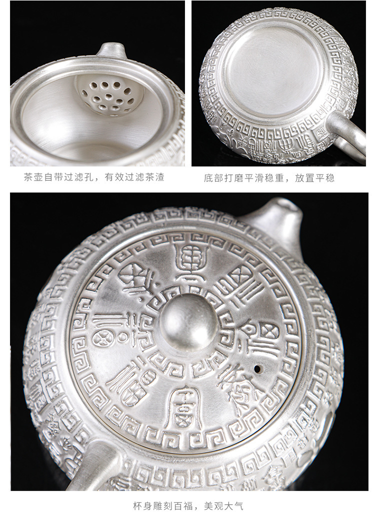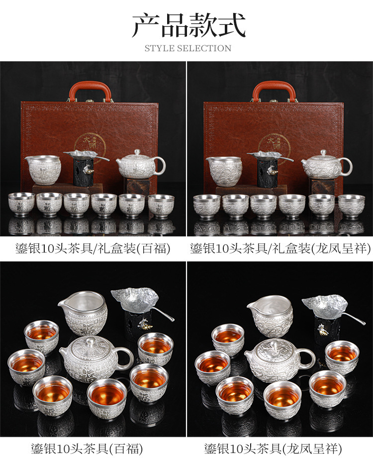 - Bộ ấm trà Kung Fu bạc mạ bạc 999 bộ ấm trà gốm sứ Baifu nắp ấm trà bộ trà bạc bộ quà lưu niệm doanh nhân cao cấp