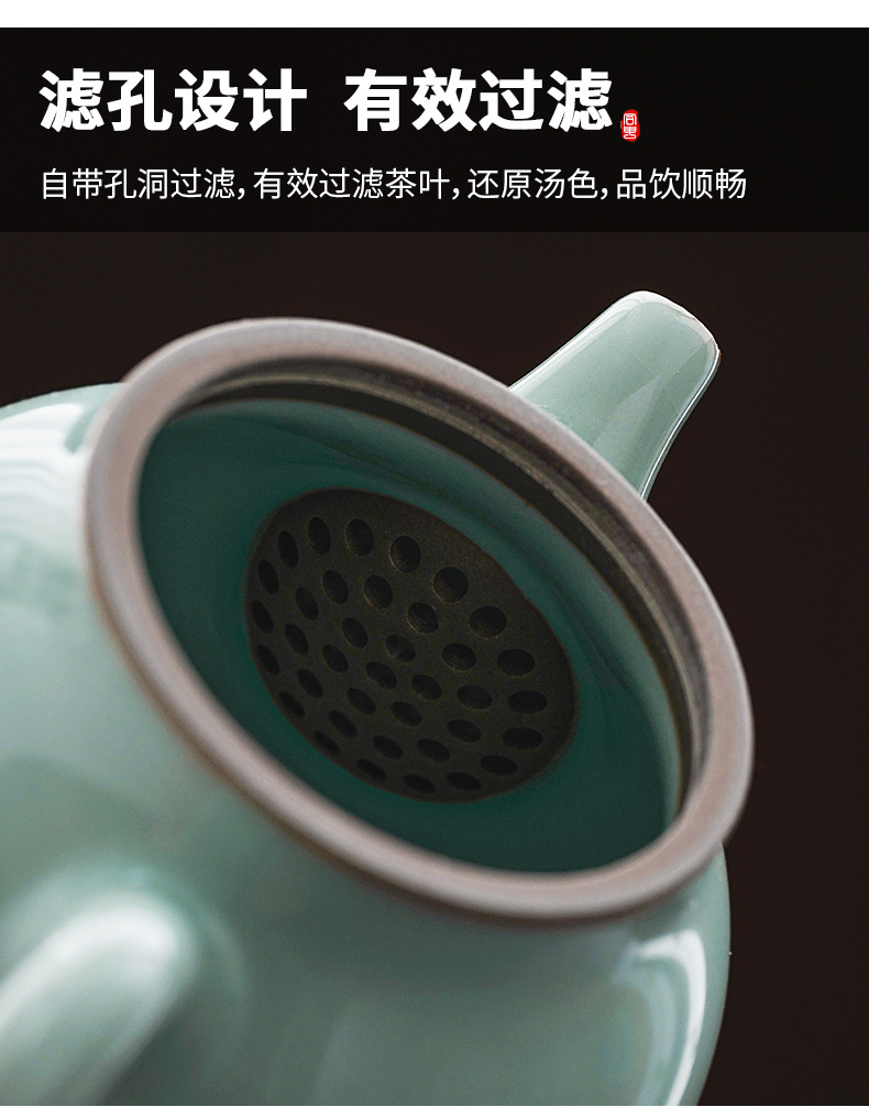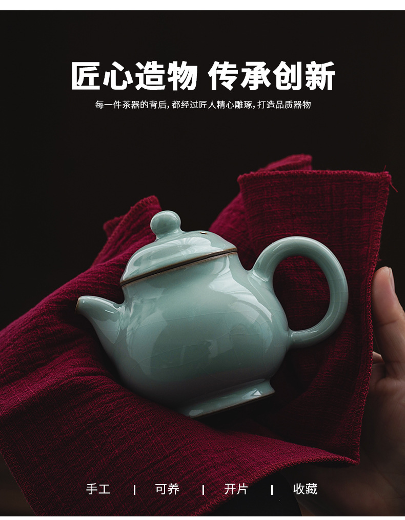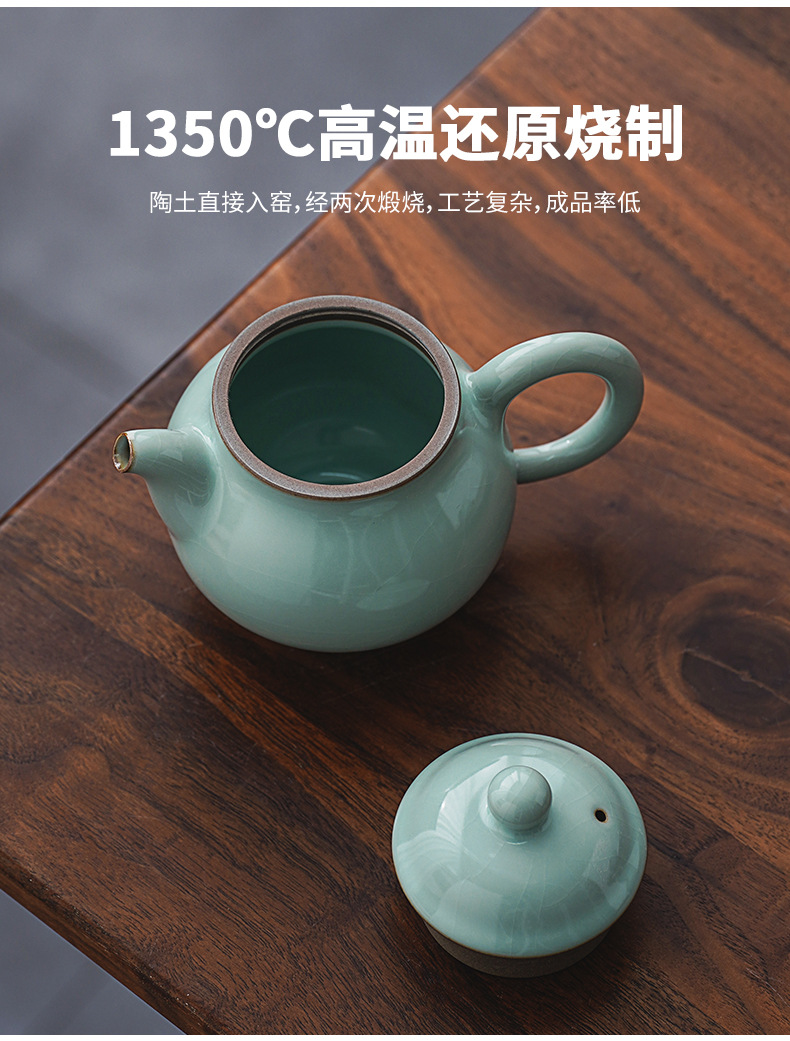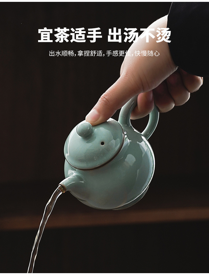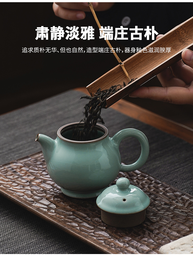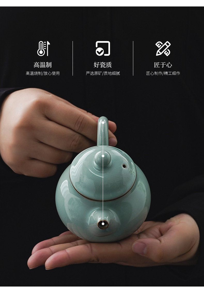 Bộ ấm trà Kung Fu bằng gốm sứ ở lò Houhu Ấm trà nhỏ Lò Ru Ấm trà đơn màu lục lam có thể giữ ấm pha trà đơn thủ công