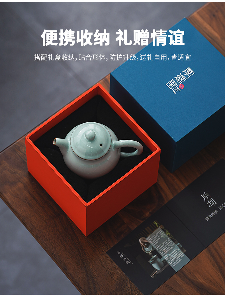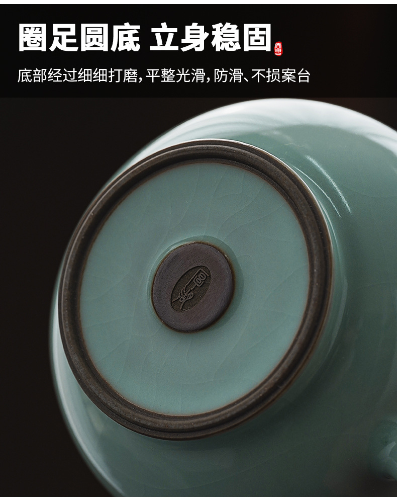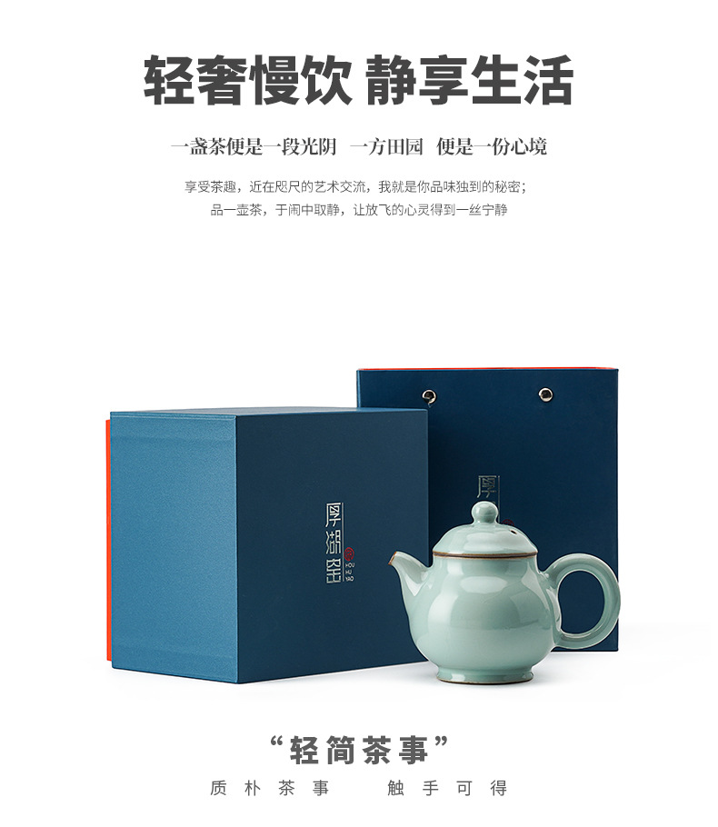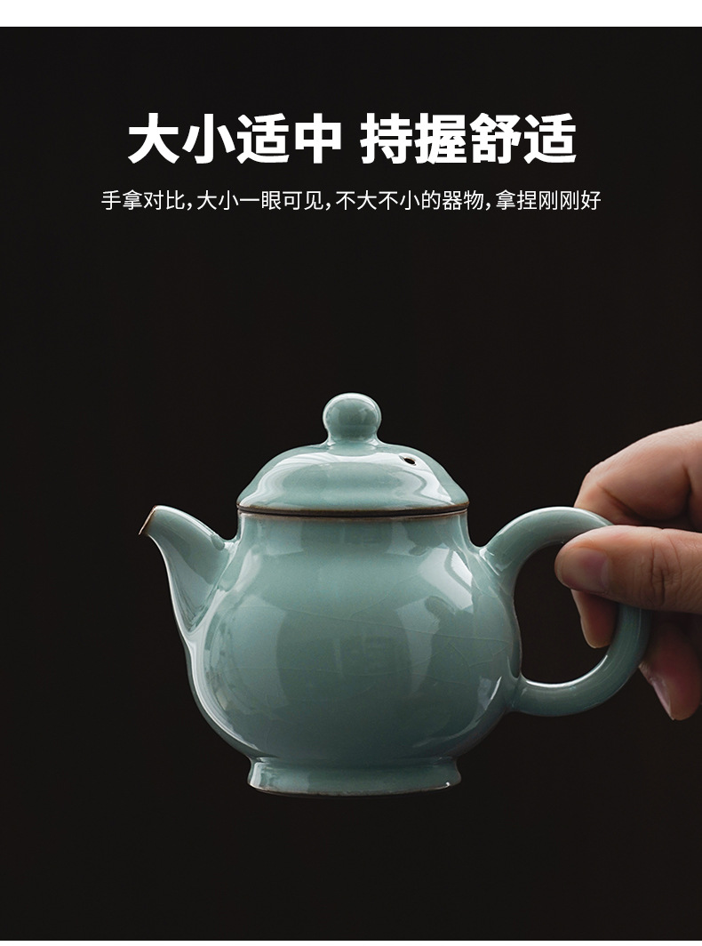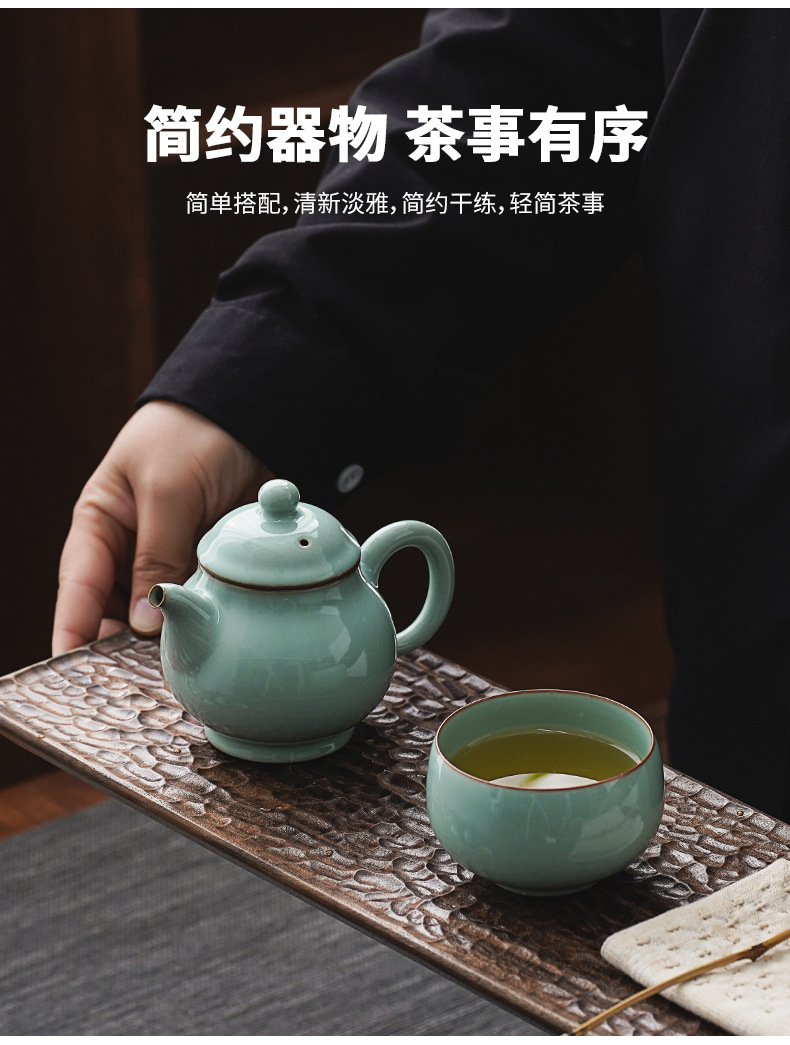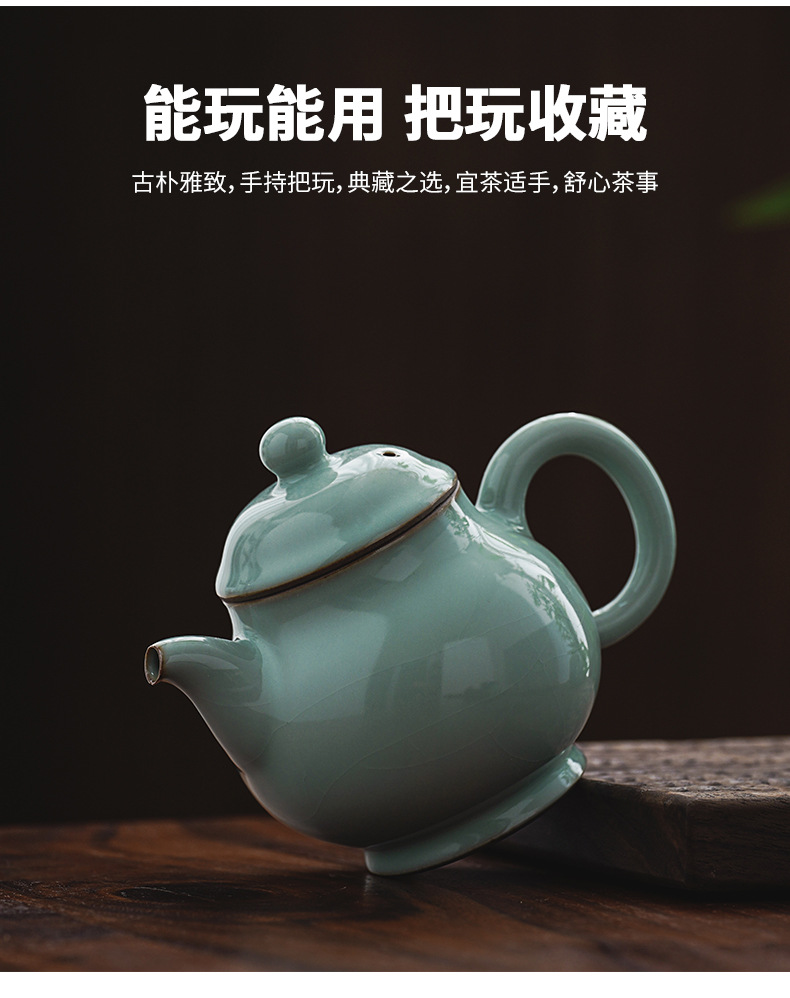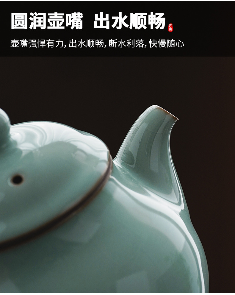 Bộ ấm trà Kung Fu bằng gốm sứ ở lò Houhu Ấm trà nhỏ Lò Ru Ấm trà đơn màu lục lam có thể giữ ấm pha trà đơn thủ công