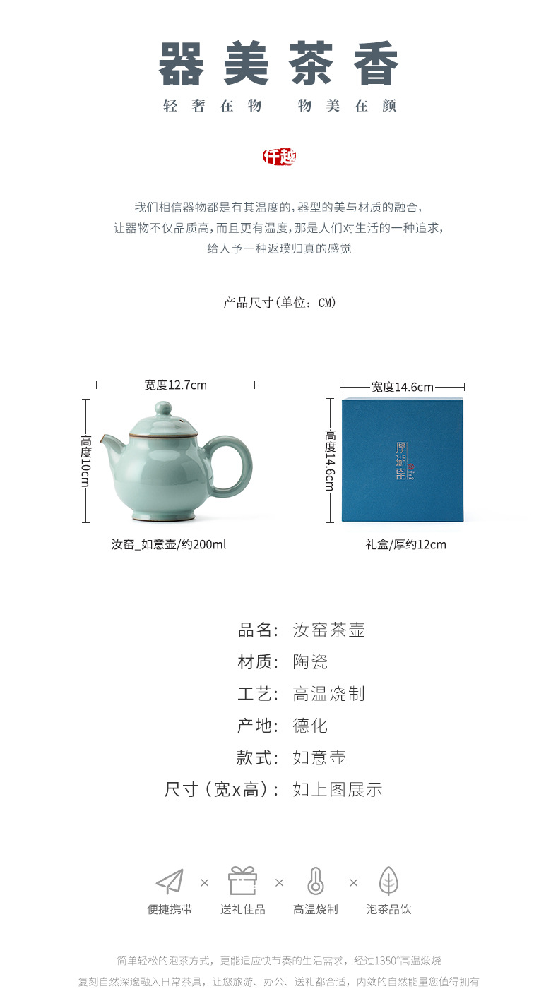 - Bộ ấm trà Kung Fu bằng gốm sứ ở lò Houhu Ấm trà nhỏ Lò Ru Ấm trà đơn màu lục lam có thể giữ ấm pha trà đơn thủ công