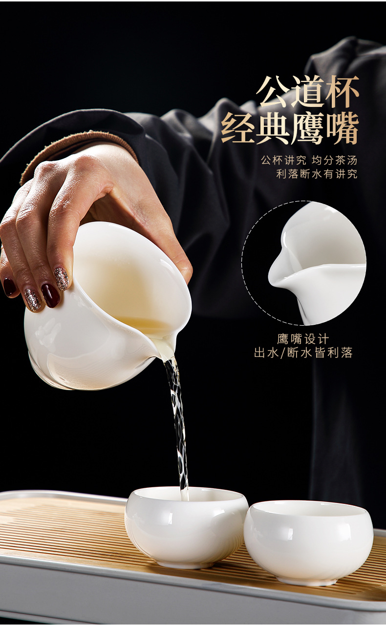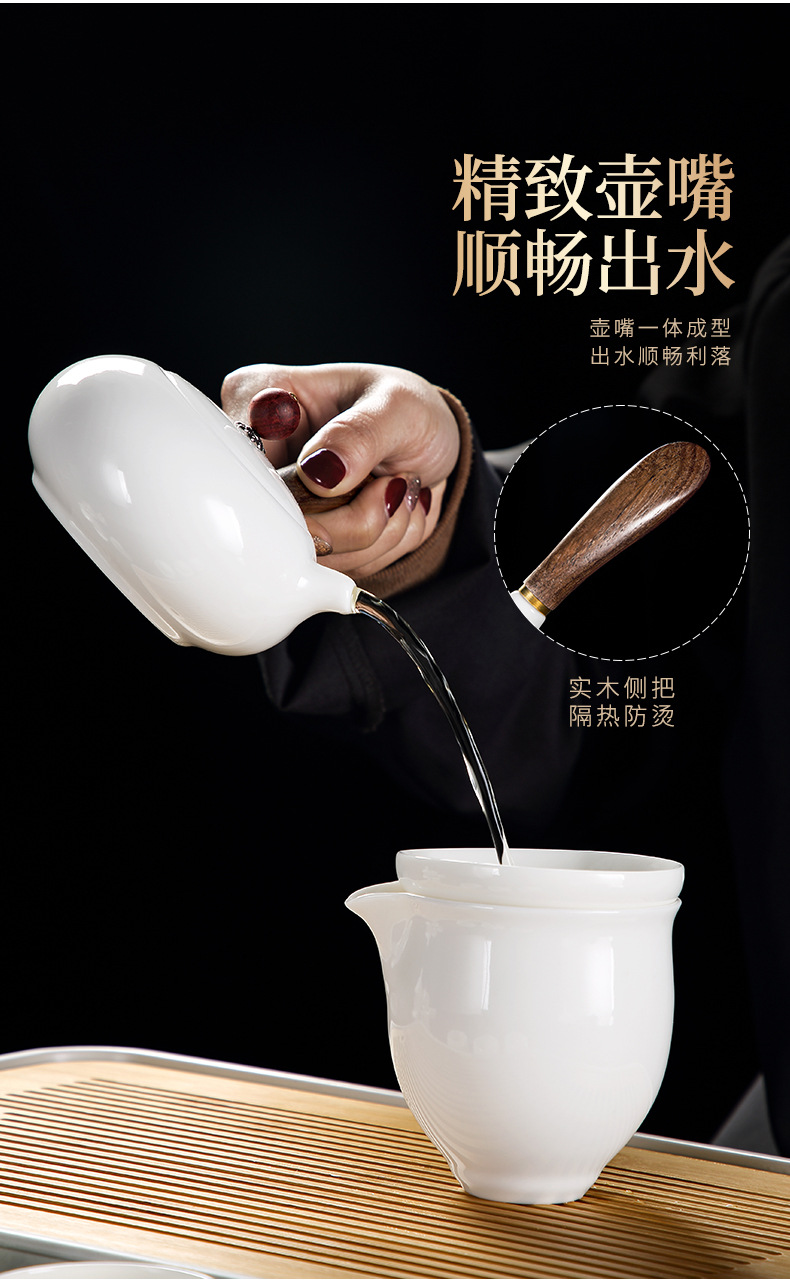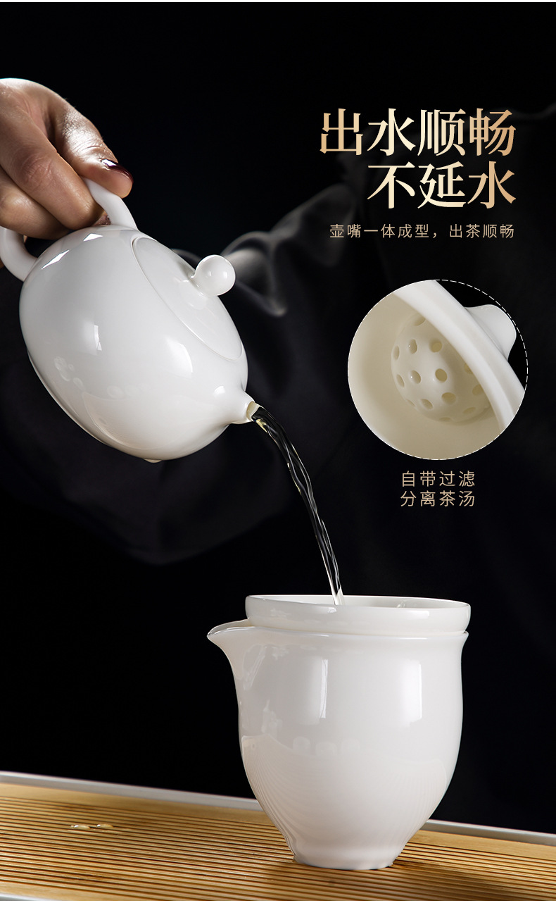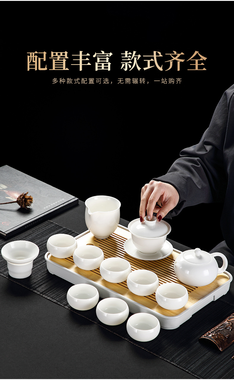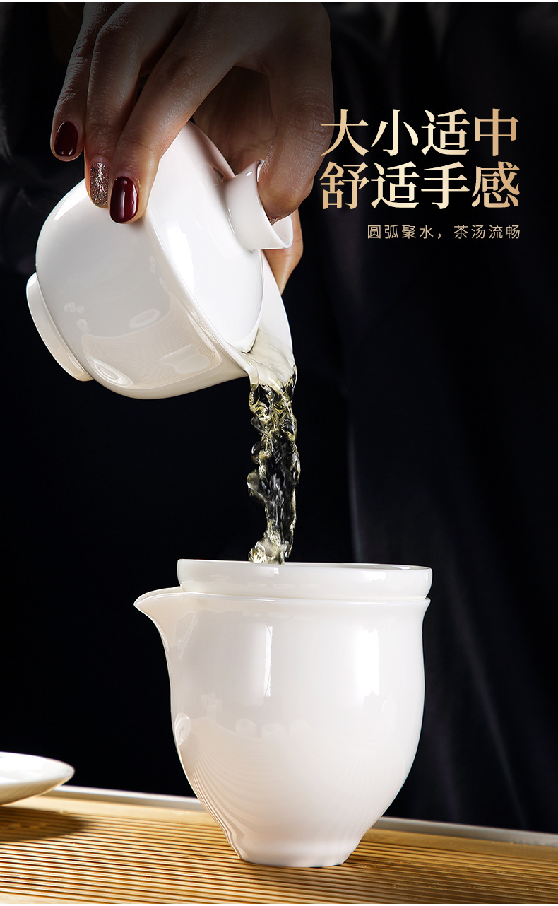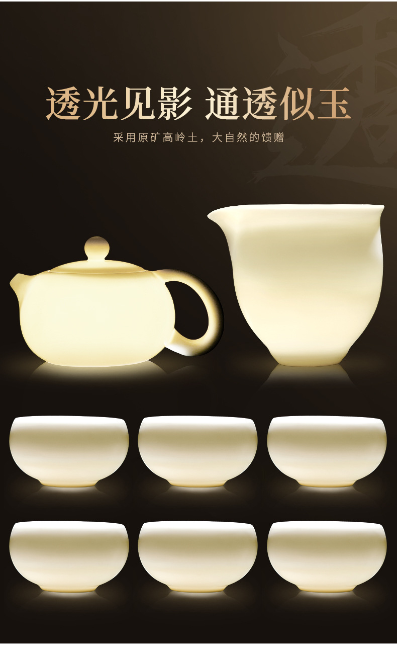 Bộ ấm trà Kung Fu bằng sứ trắng ngọc bích cốc trà có nắp đậy cao cấp cho khách văn phòng dùng trong phòng khách