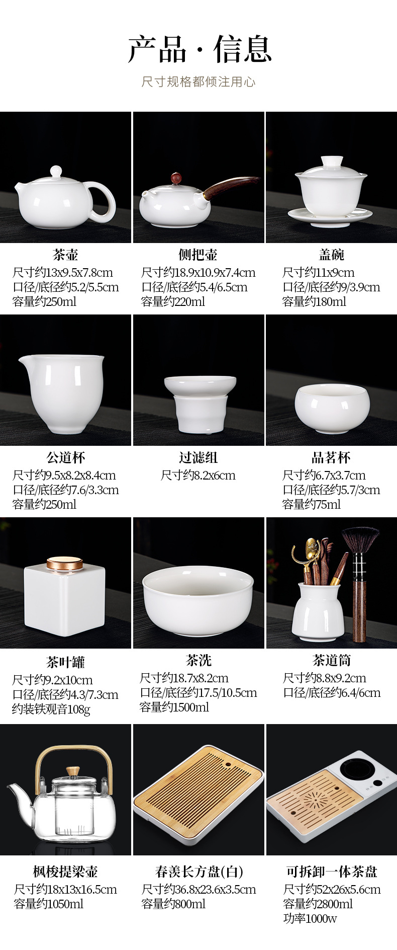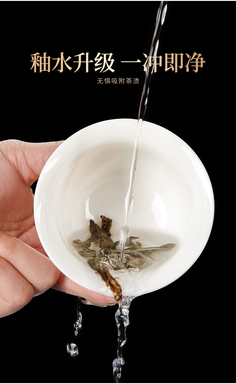 - Bộ ấm trà Kung Fu bằng sứ trắng ngọc bích cốc trà có nắp đậy cao cấp cho khách văn phòng dùng trong phòng khách