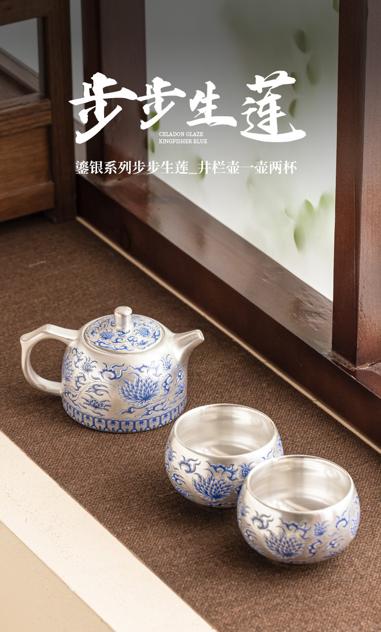 - Bộ ấm trà Kung Fu cao cấp mạ bạc 999 bộ ấm trà hoa sen sinh mẫu mới 2025 một ấm hai cốc