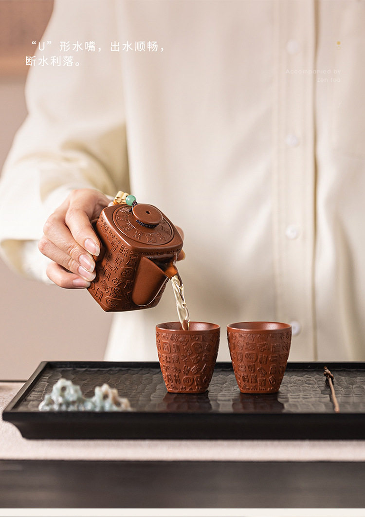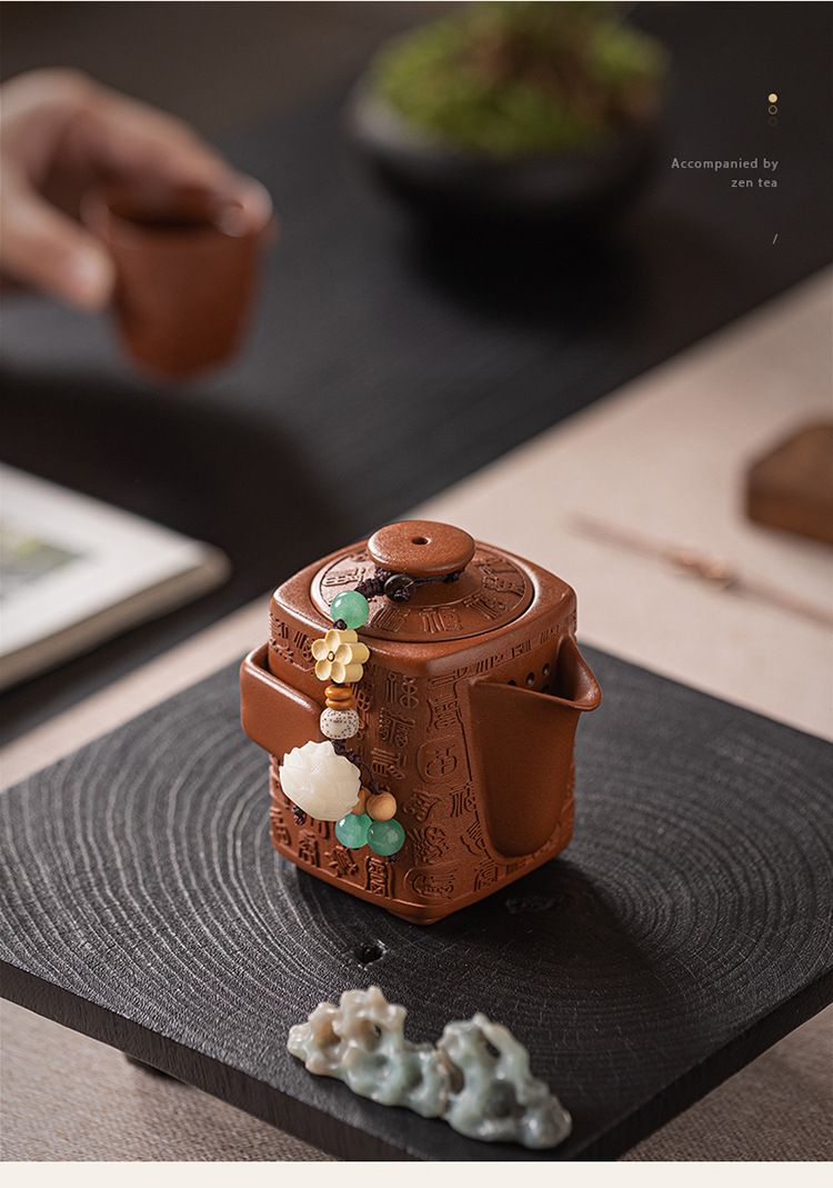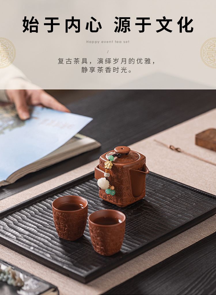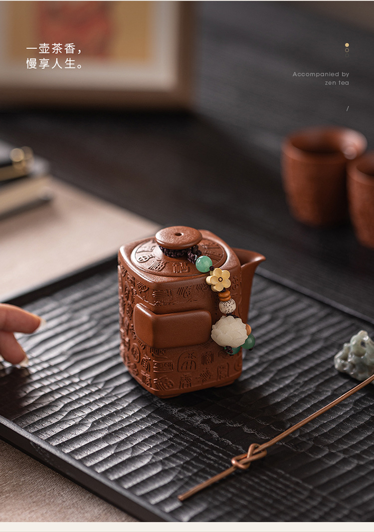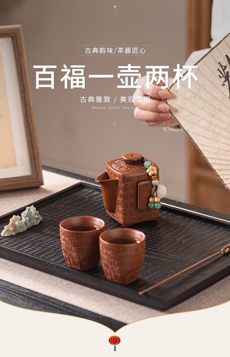 - Bộ ấm trà Kung Fu đất sét tím nguyên bản Nghi Hưng nguyên bộ ấm trà đất sét tím cũ một ấm hai cốc trà thủ công quà tặng
