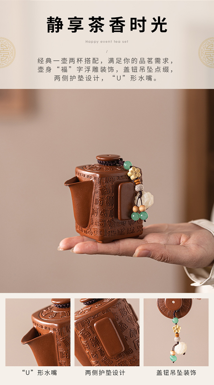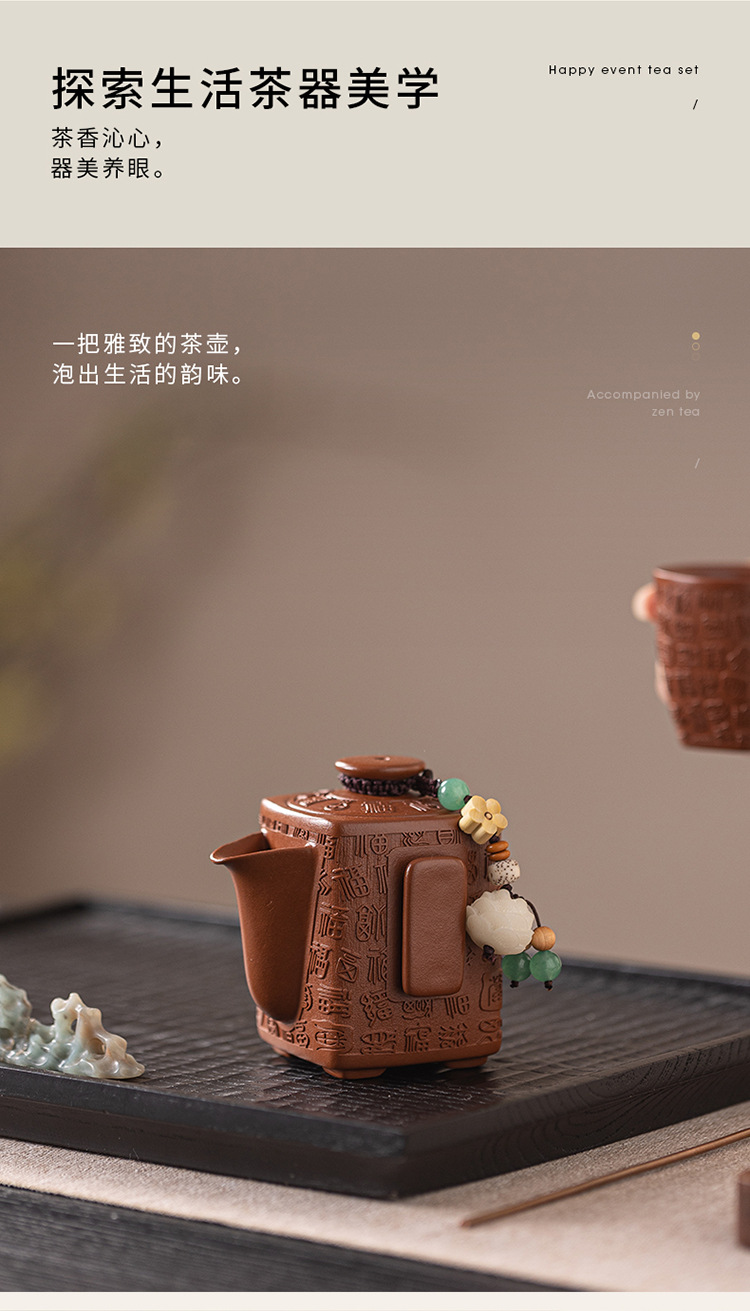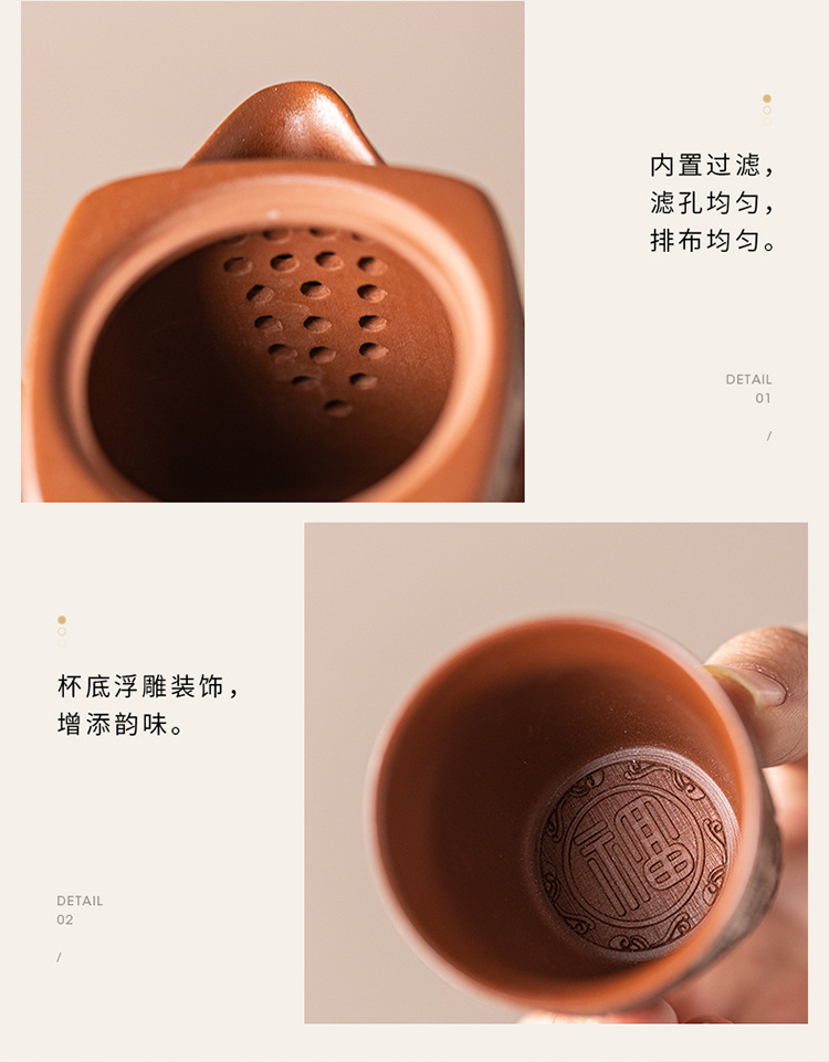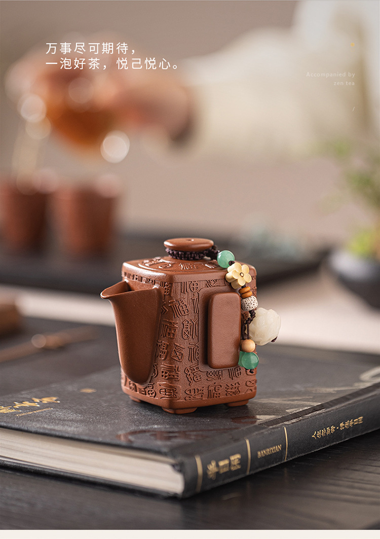 - Bộ ấm trà Kung Fu đất sét tím nguyên bản Nghi Hưng nguyên bộ ấm trà đất sét tím cũ một ấm hai cốc trà thủ công quà tặng