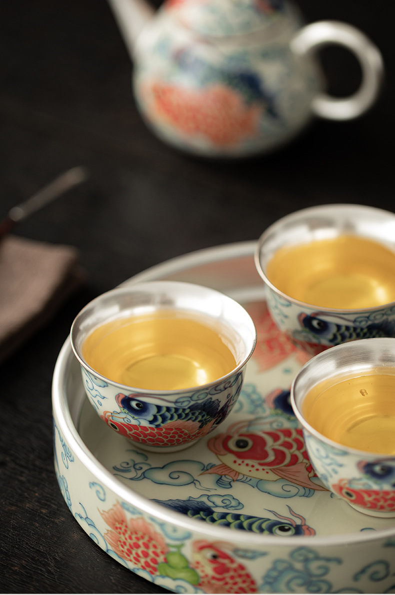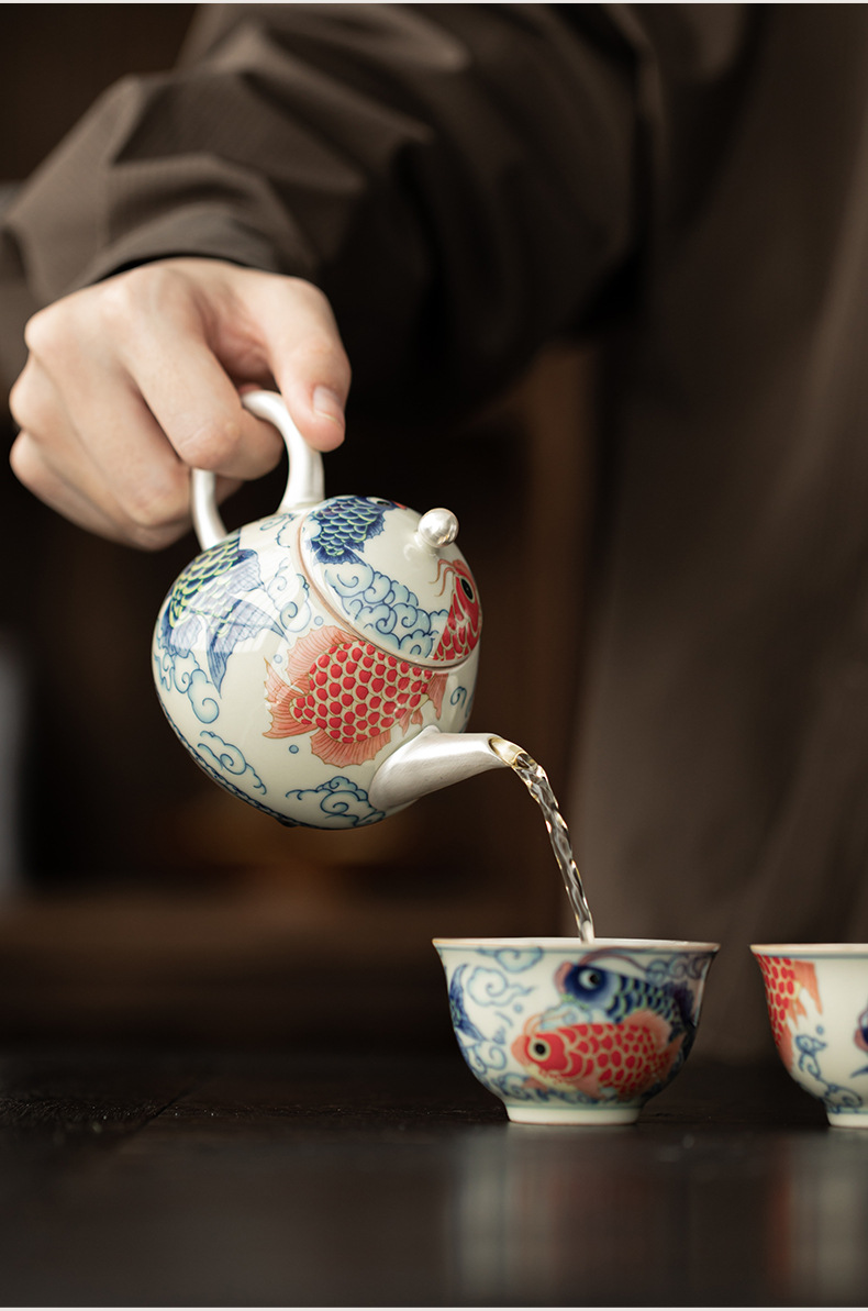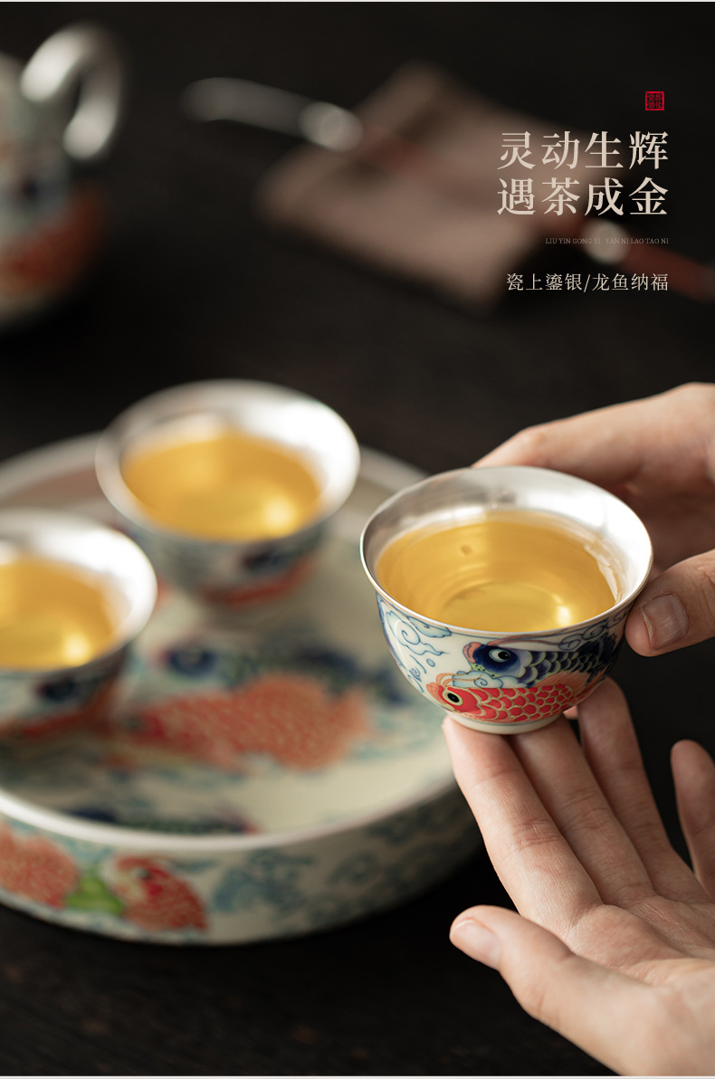 - Bộ ấm trà Kung Fu gốm sứ một ấm ba chén cá rồng bạc bạc gia dụng tặng quà cho lãnh đạo và khách hàng