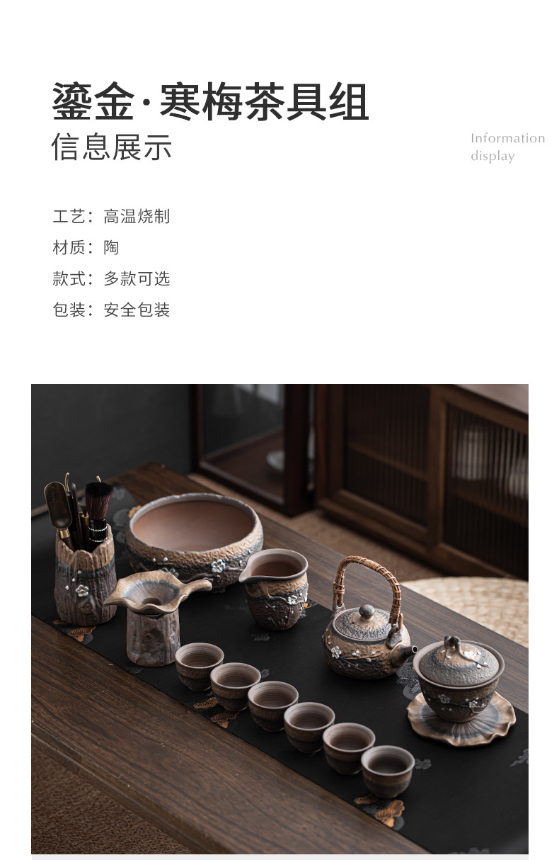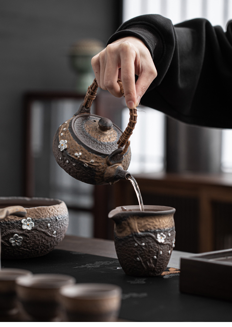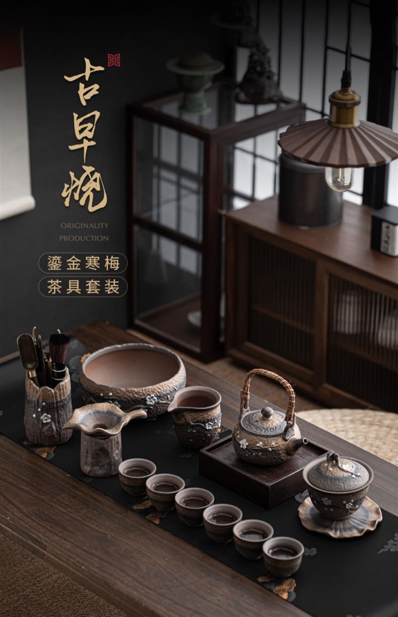 - Bộ ấm trà Kung Fu gốm thô cổ điển Nhật Bản, bát có nắp gia dụng, bình xà nâng, bán buôn tách trà văn phòng