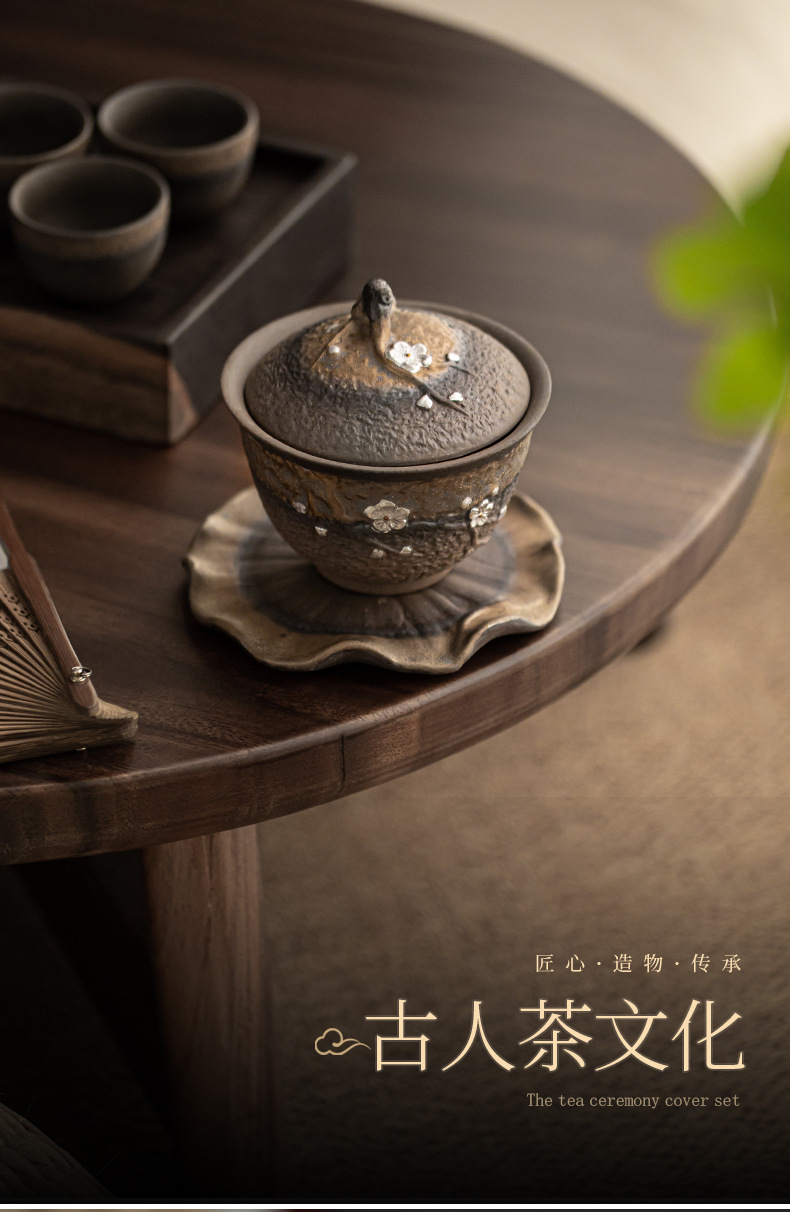 Bộ ấm trà Kung Fu gốm thô cổ điển Nhật Bản, bát có nắp gia dụng, bình xà nâng, bán buôn tách trà văn phòng