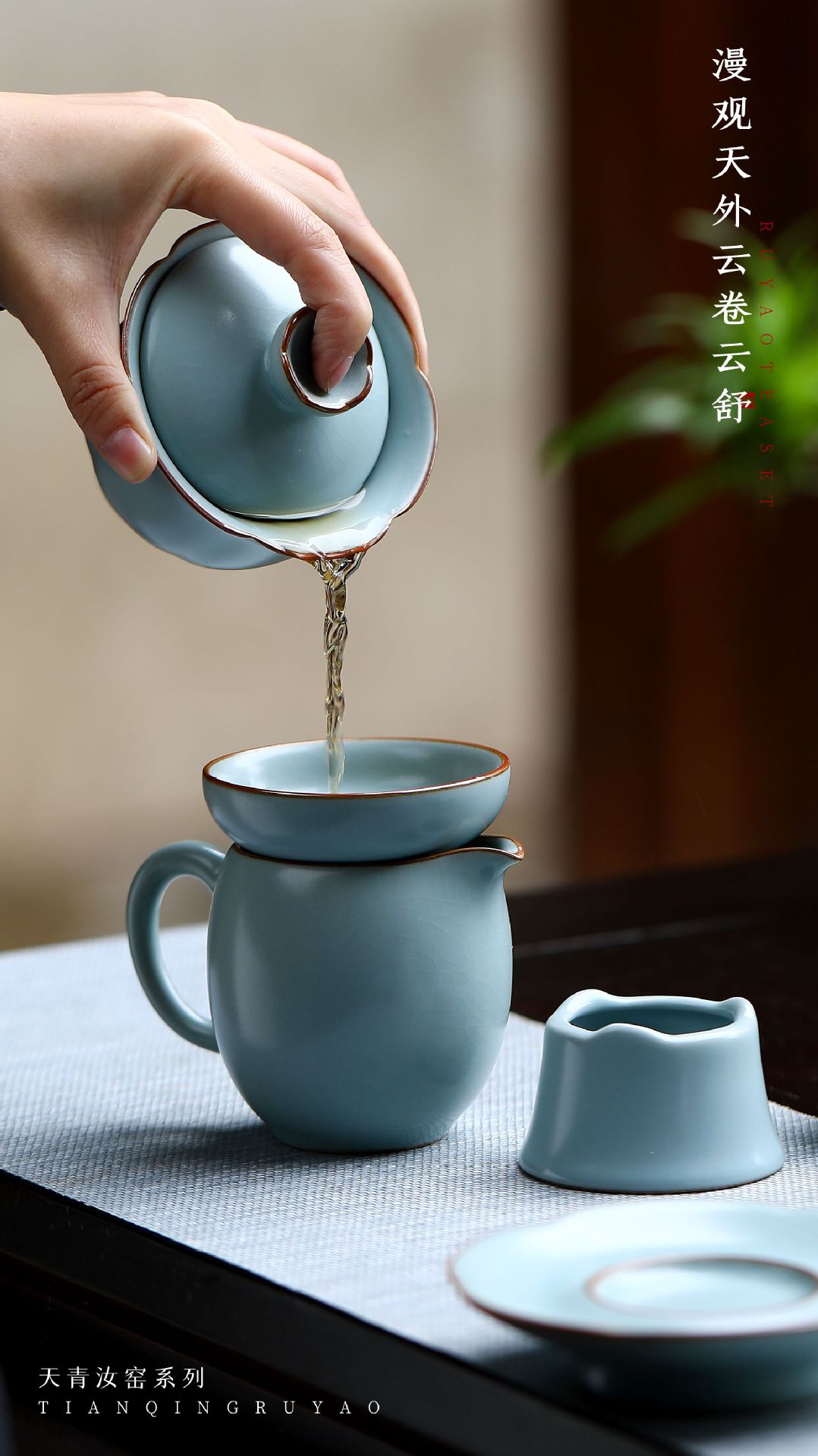 Bộ ấm trà Kung Fu lò Thiên Thanh Ru ấm trà sứ Ru phong cách Trung Quốc gia dụng cao cấp sang trọng hộp quà