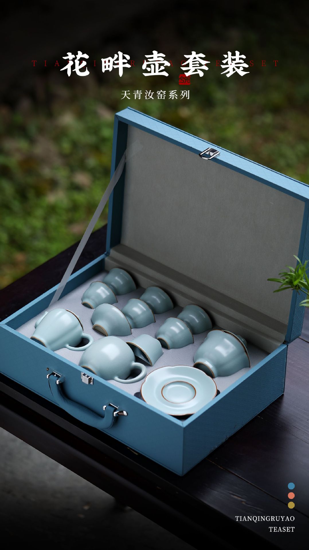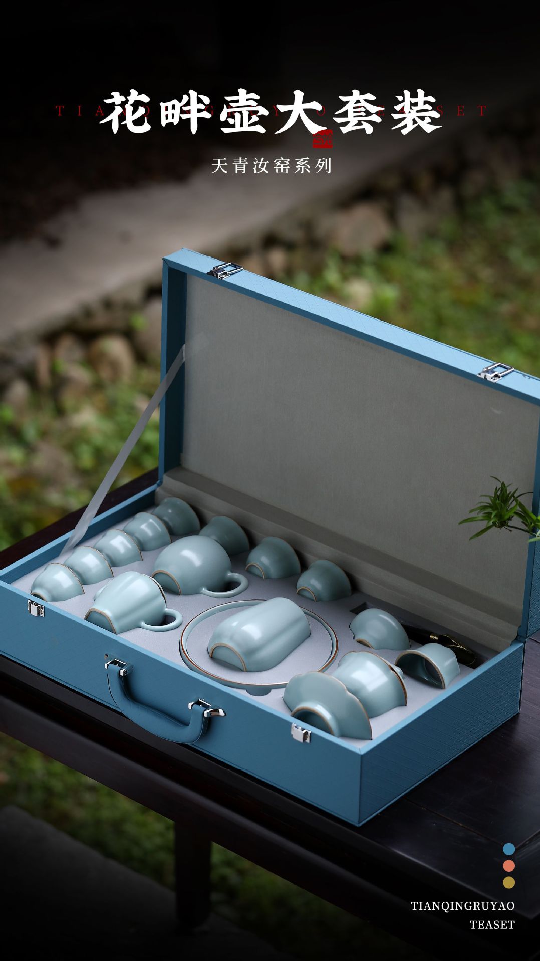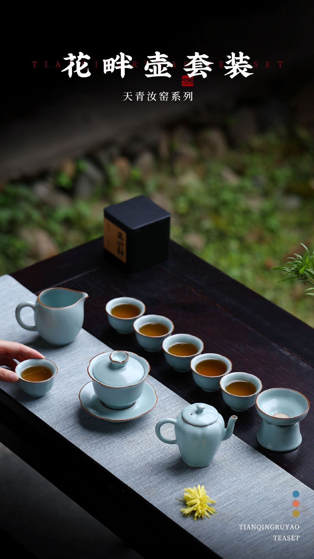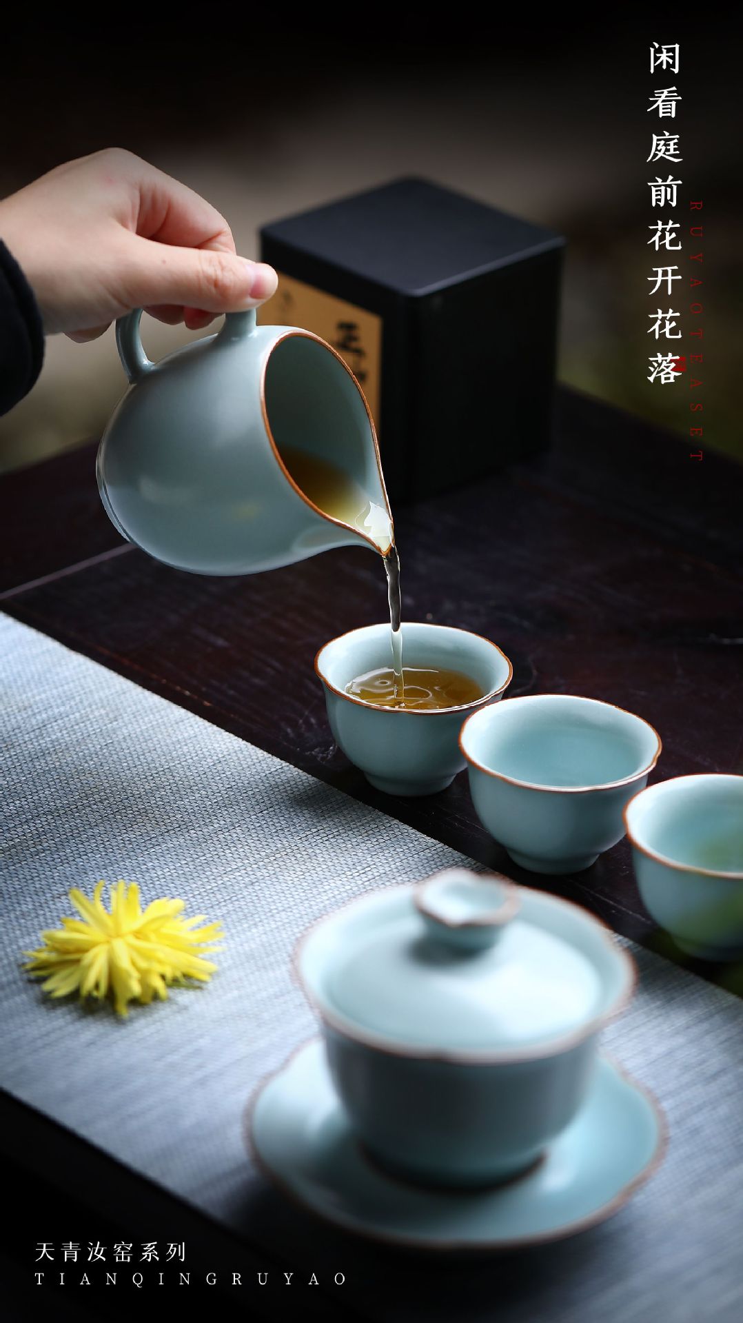 - Bộ ấm trà Kung Fu lò Thiên Thanh Ru ấm trà sứ Ru phong cách Trung Quốc gia dụng cao cấp sang trọng hộp quà