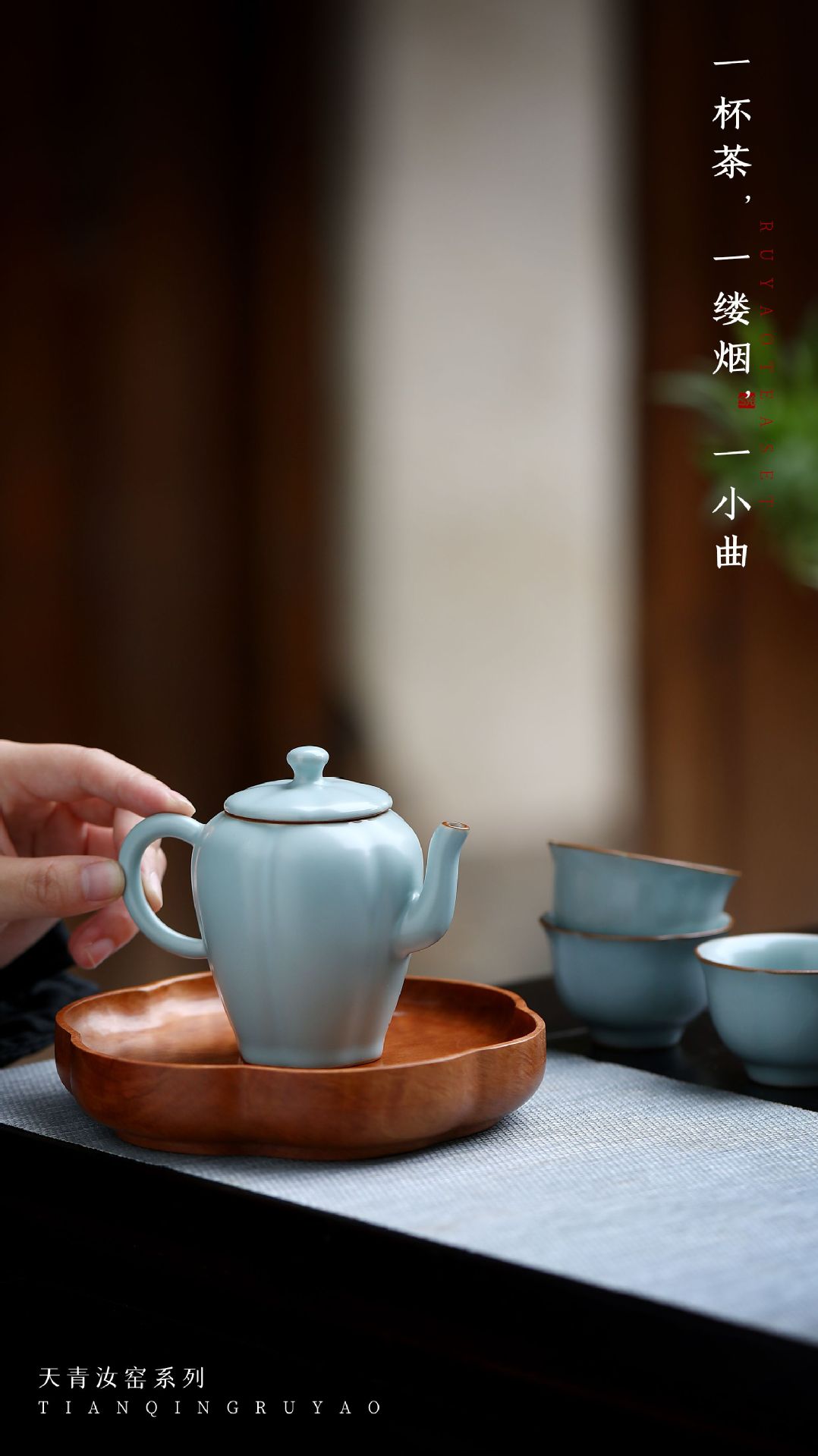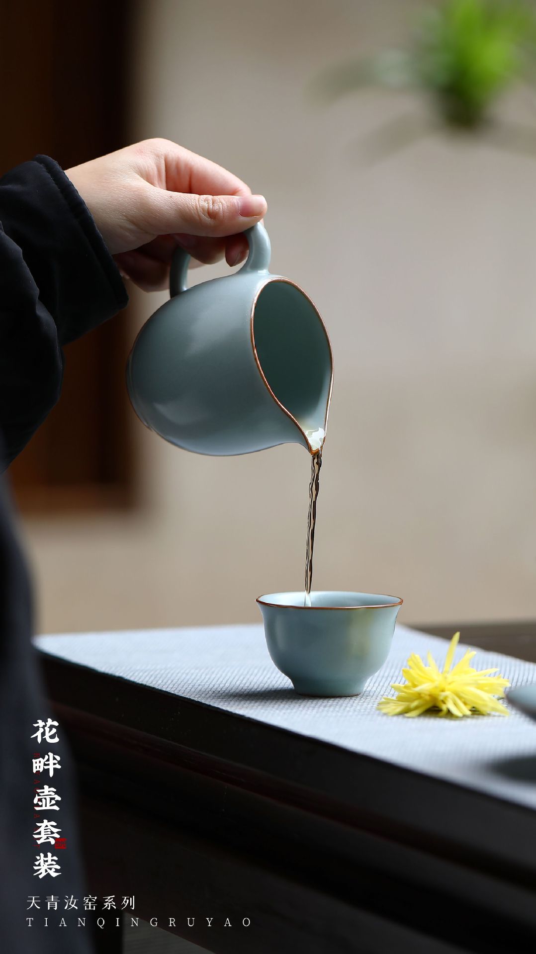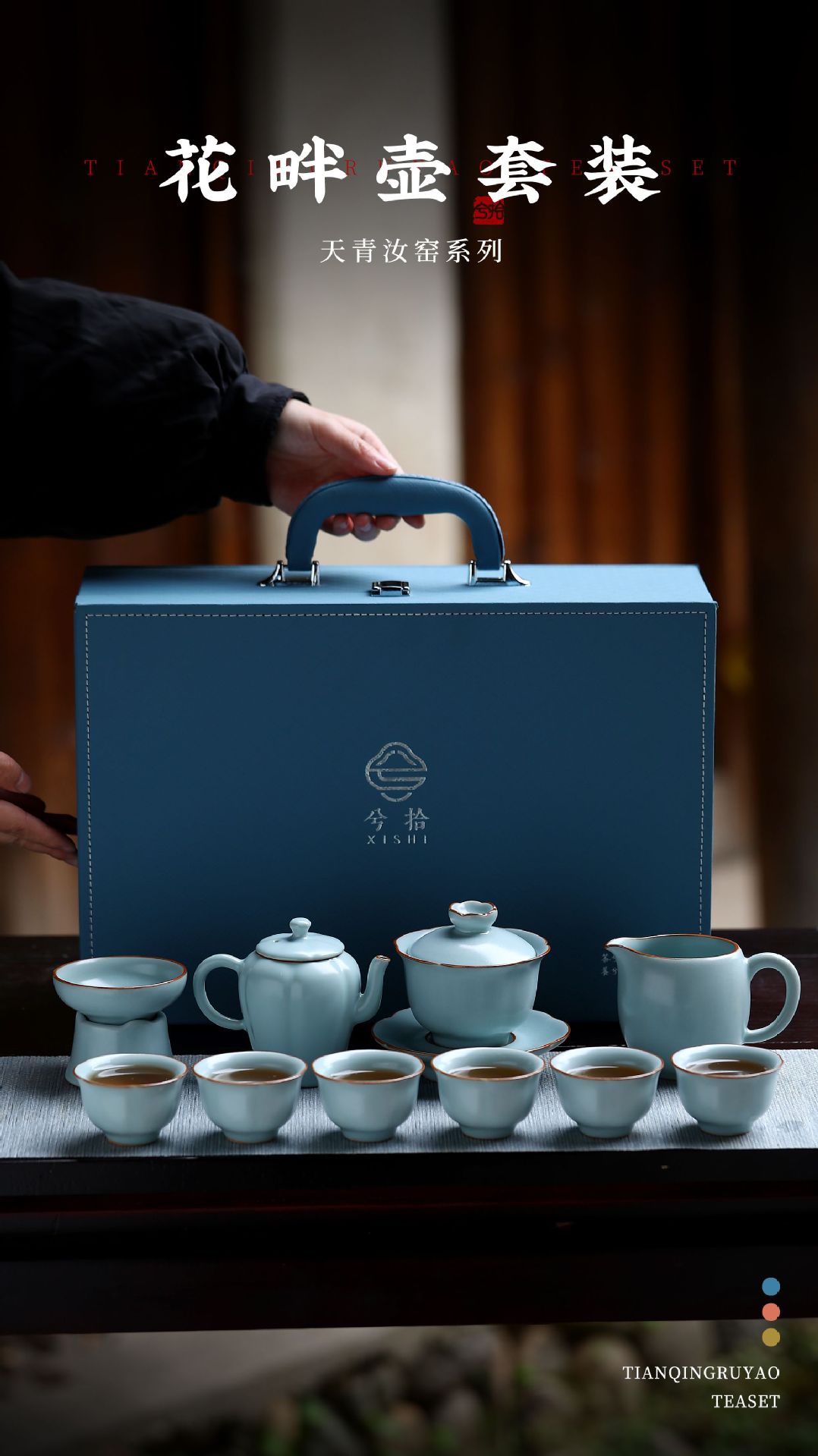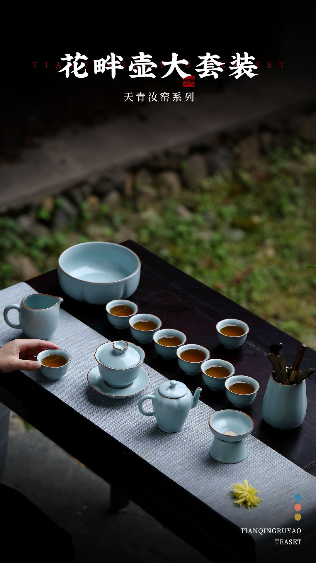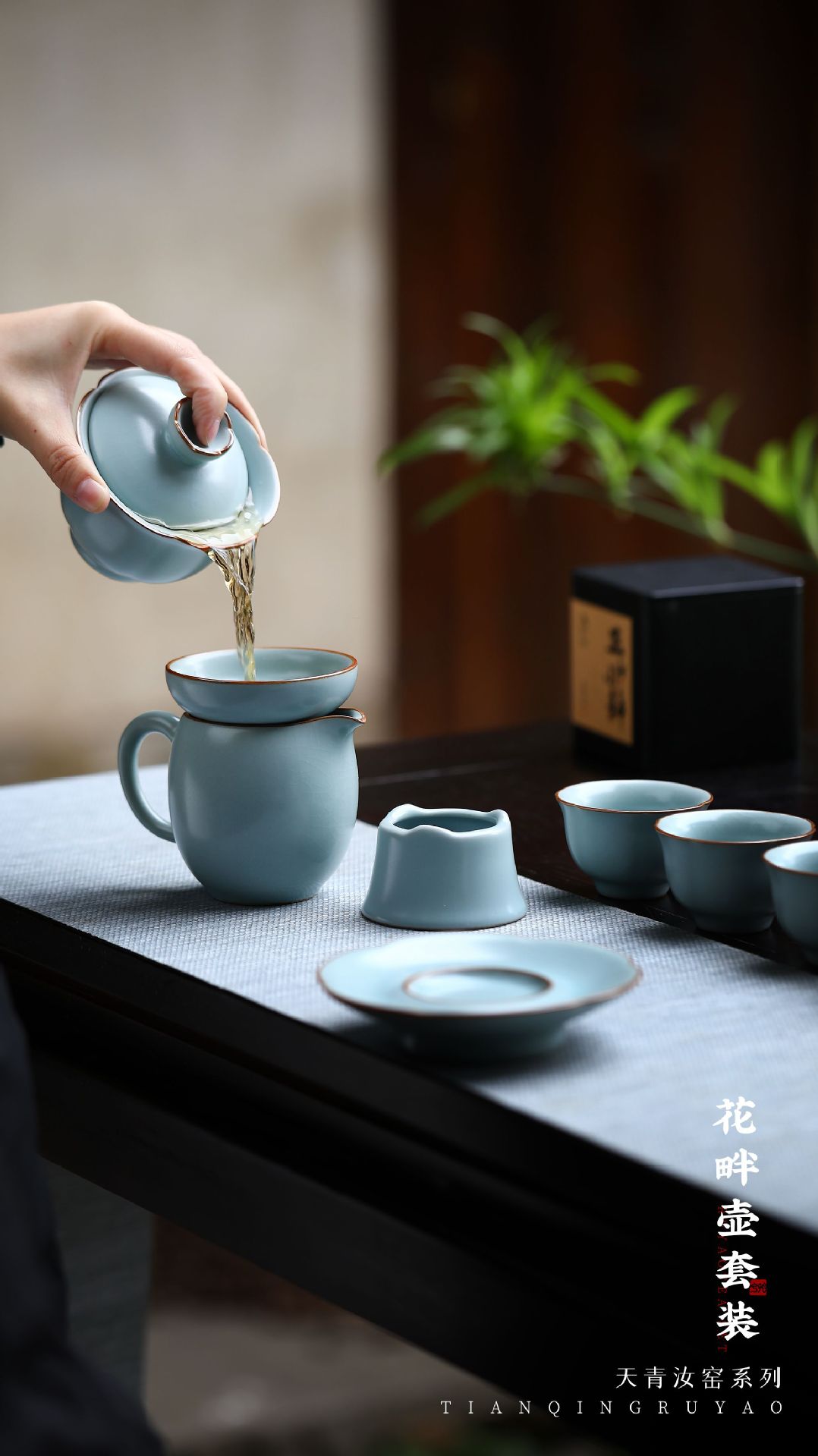 - Bộ ấm trà Kung Fu lò Thiên Thanh Ru ấm trà sứ Ru phong cách Trung Quốc gia dụng cao cấp sang trọng hộp quà