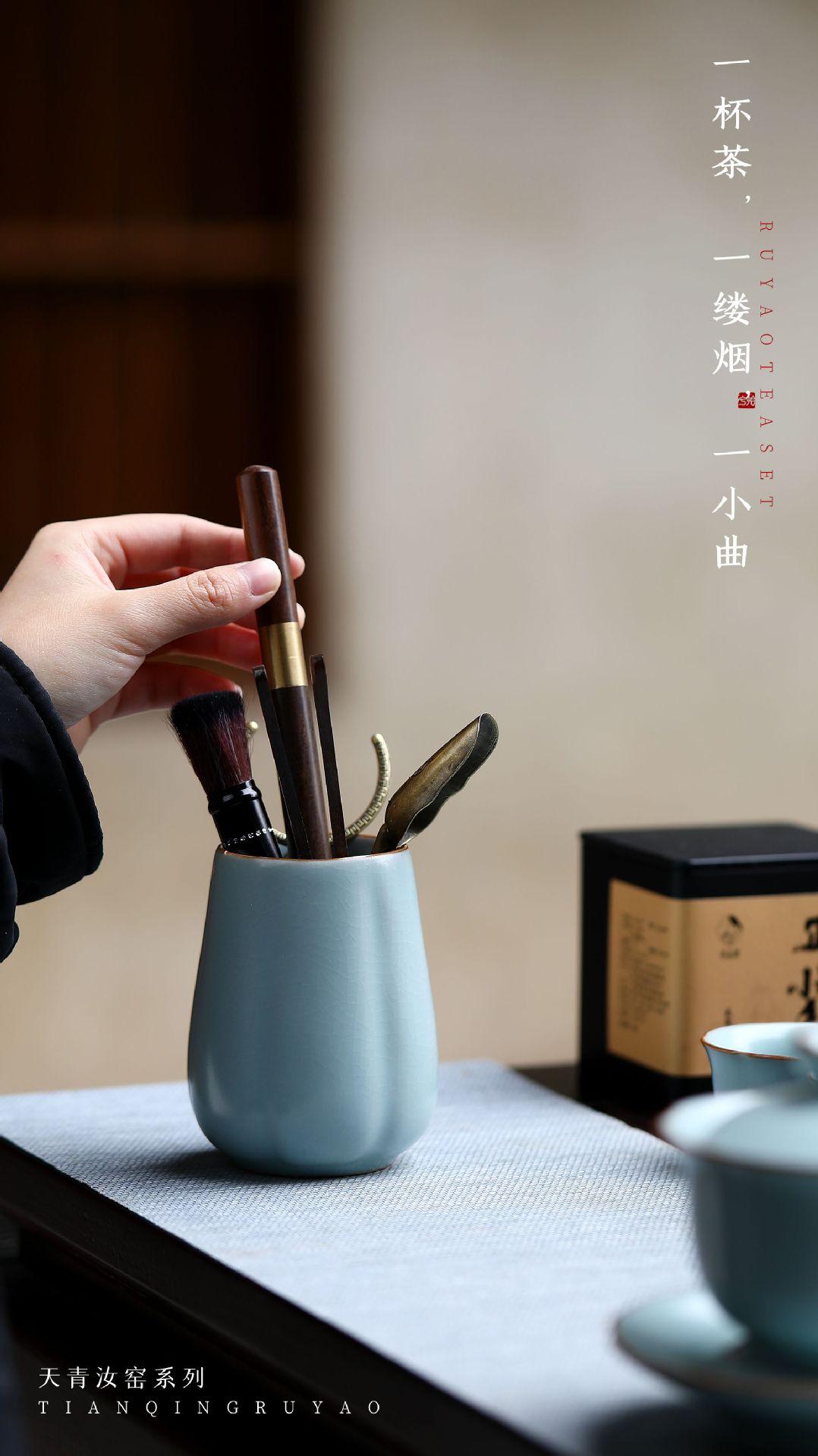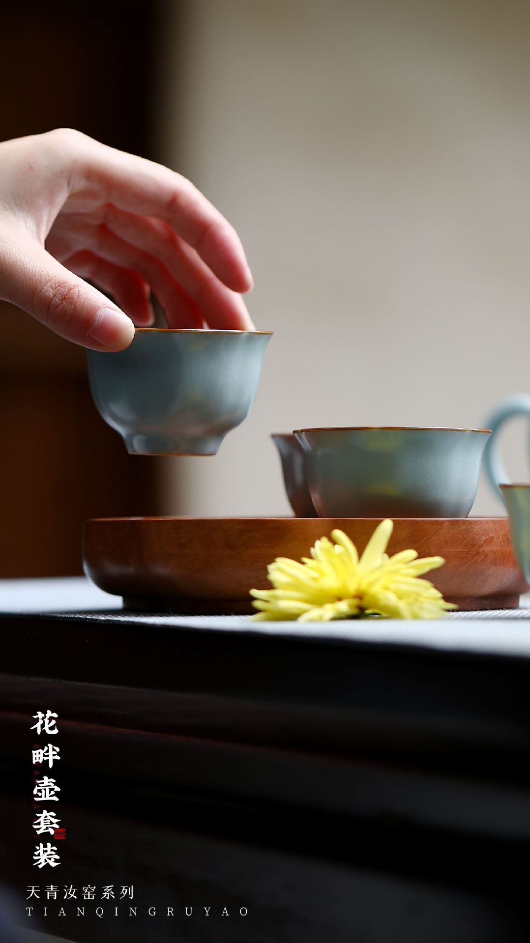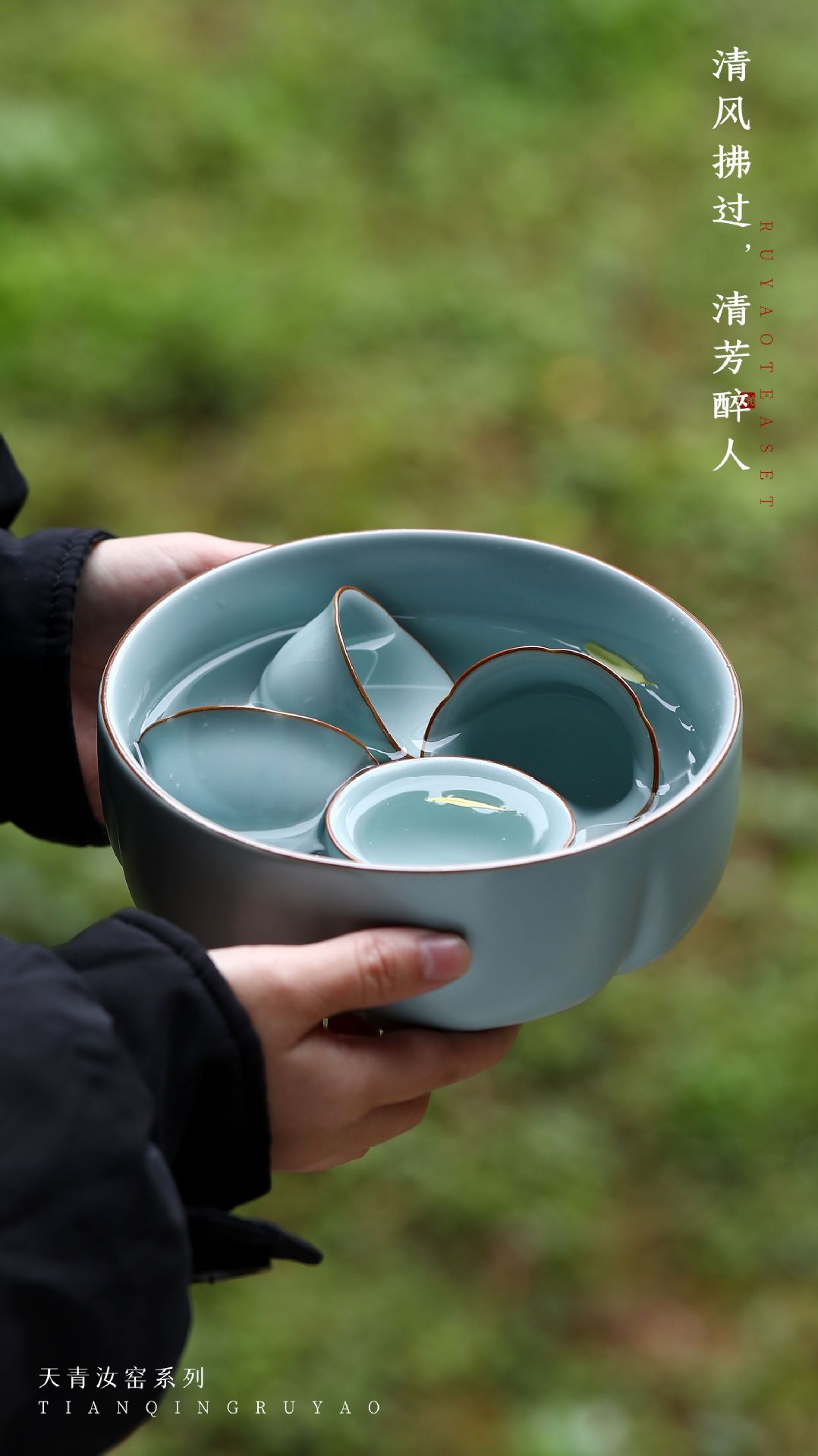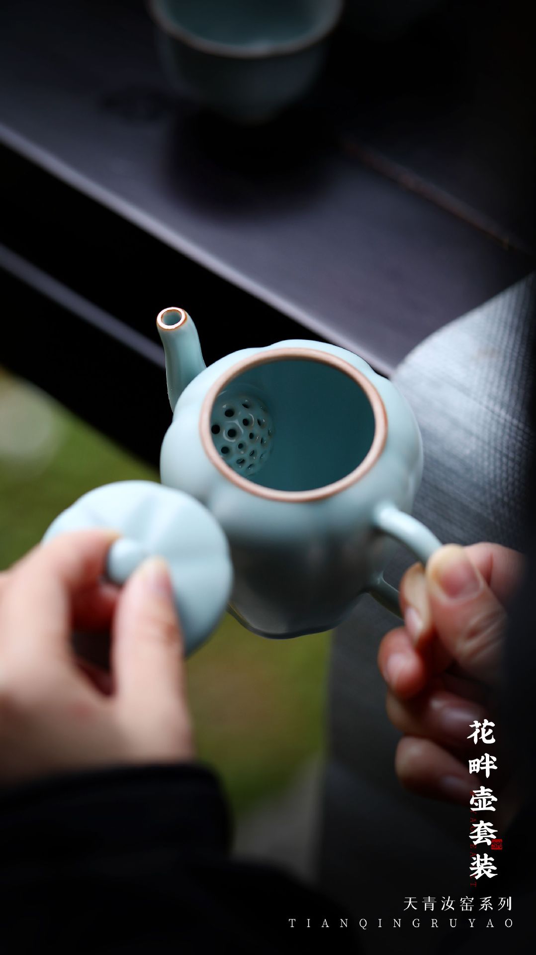 - Bộ ấm trà Kung Fu lò Thiên Thanh Ru ấm trà sứ Ru phong cách Trung Quốc gia dụng cao cấp sang trọng hộp quà
