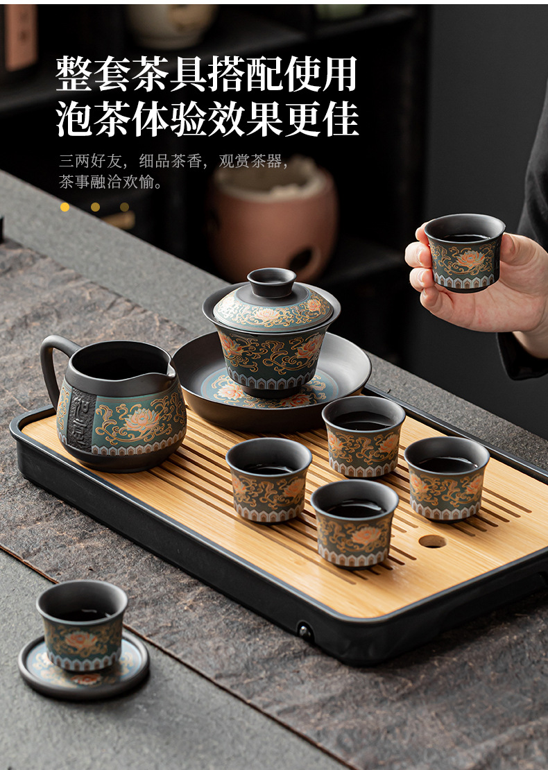 Bộ ấm trà Kung Fu màu tím xúc động như sứ, ấm trà gia dụng, tách trà, quà tặng đồng hành doanh nhân cao cấp mẫu mới cao cấp