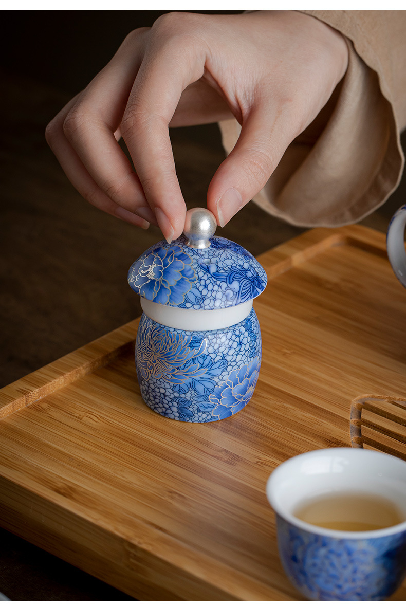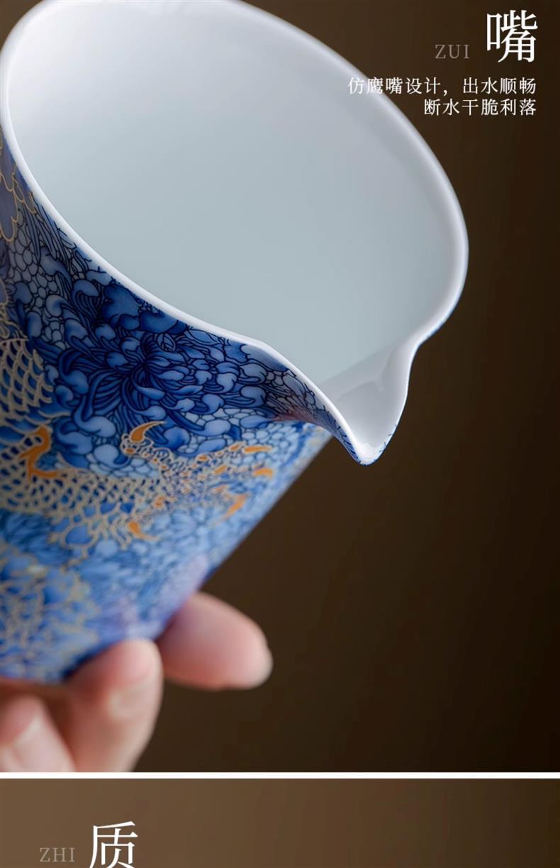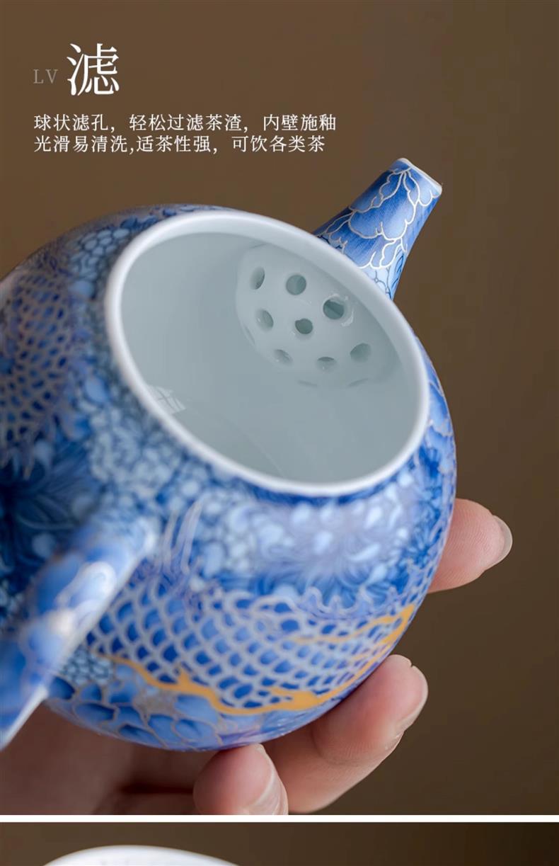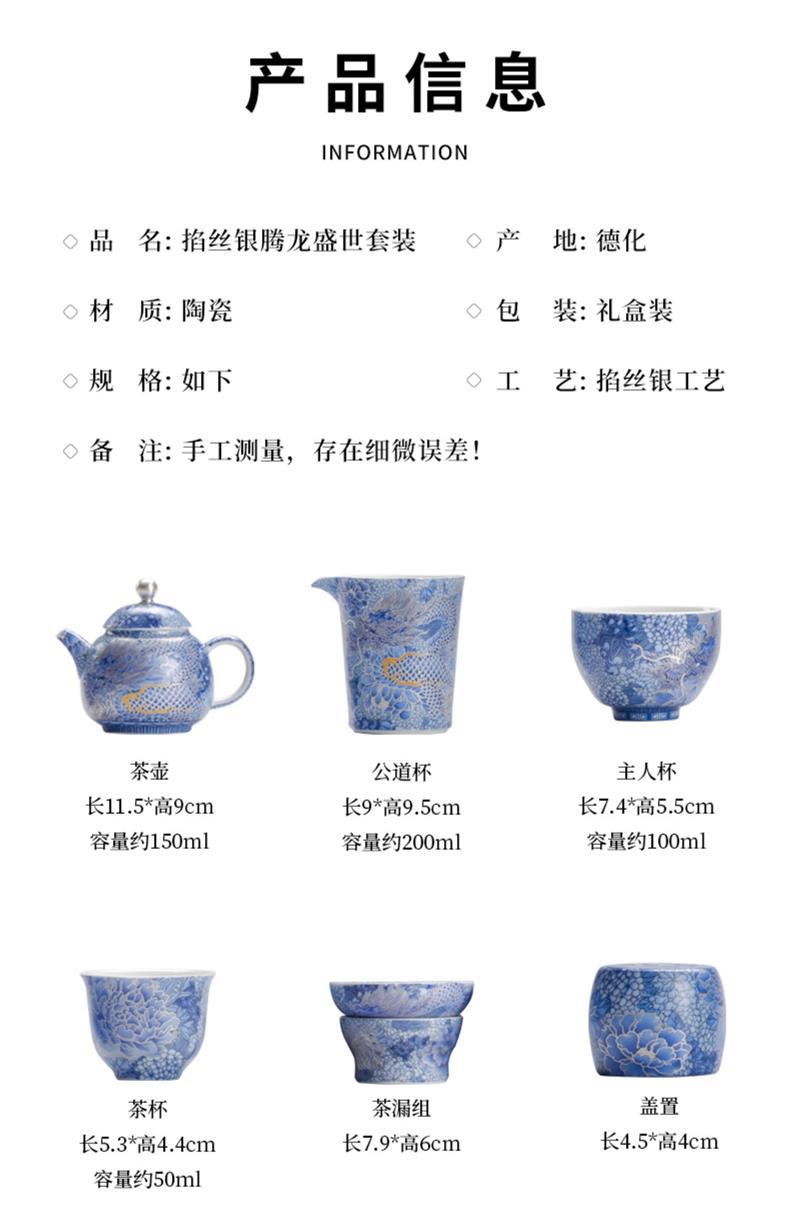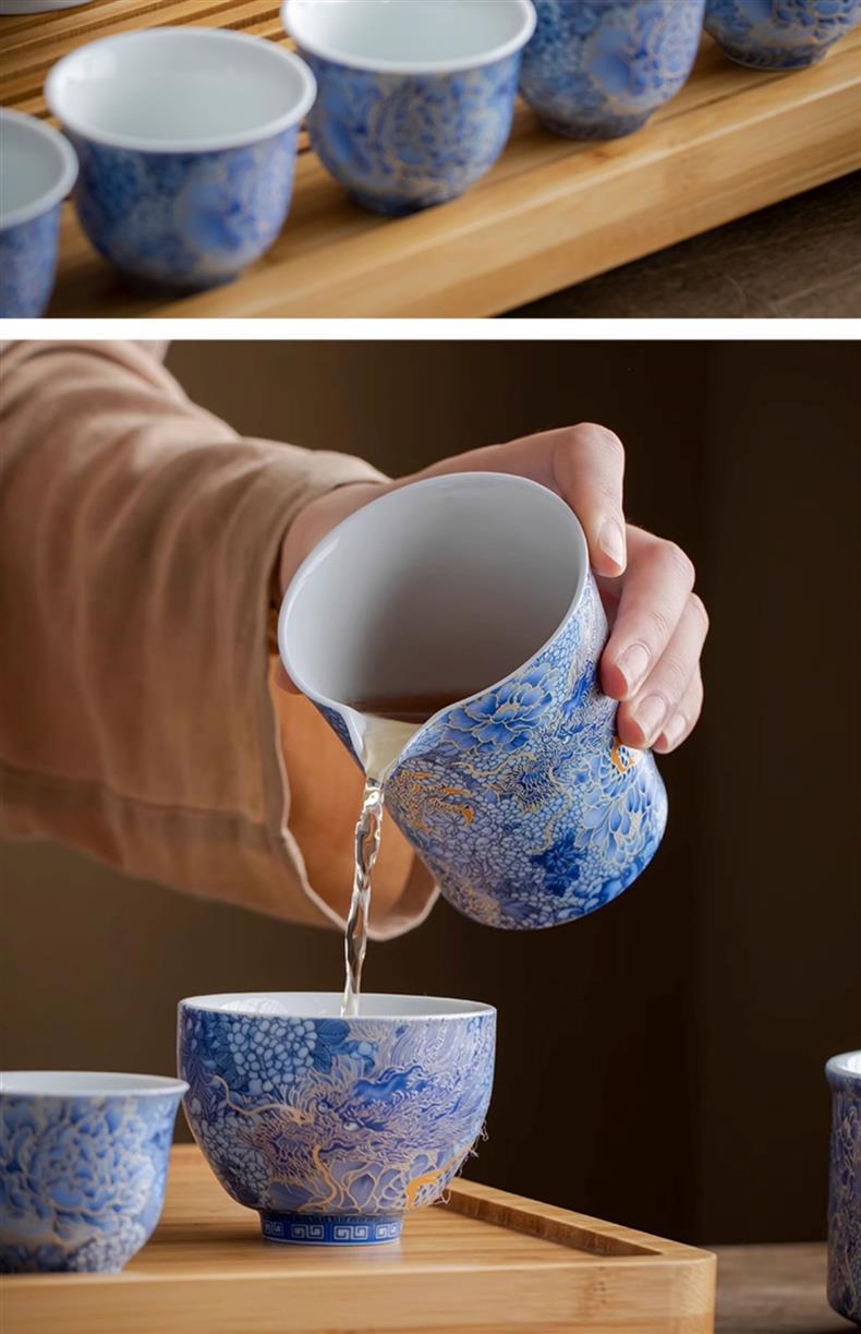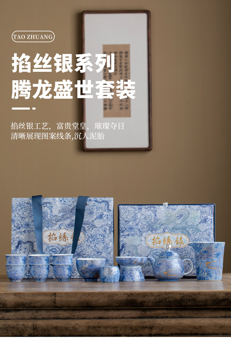 Bộ ấm trà Kung Fu màu xanh và trắng hình rồng bạc sáng tạo và sáng tạo