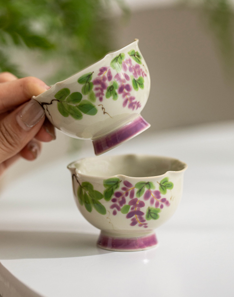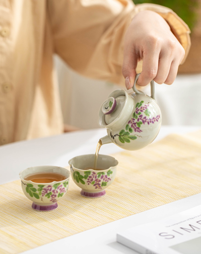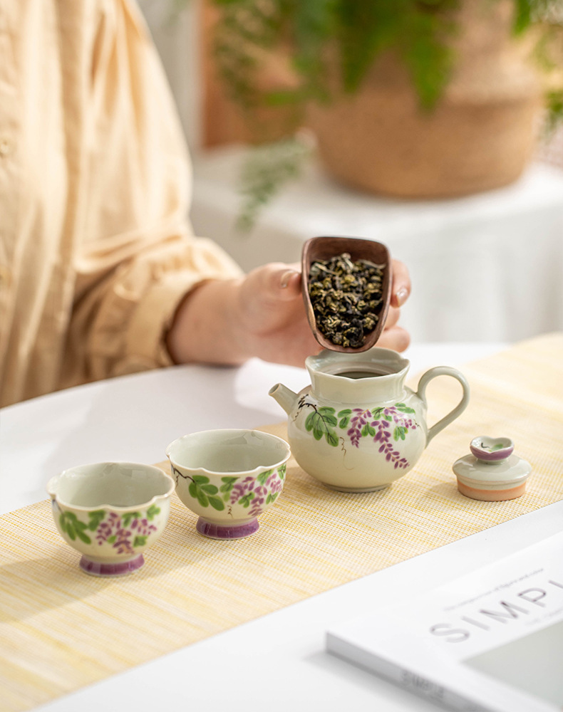 Bộ ấm trà Kung Fu nho vẽ tay bộ ấm trà gia dụng màu men xám thực vật bộ túi đựng đồ du lịch