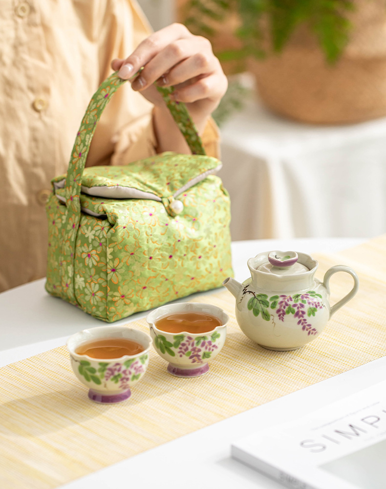 - Bộ ấm trà Kung Fu nho vẽ tay bộ ấm trà gia dụng màu men xám thực vật bộ túi đựng đồ du lịch