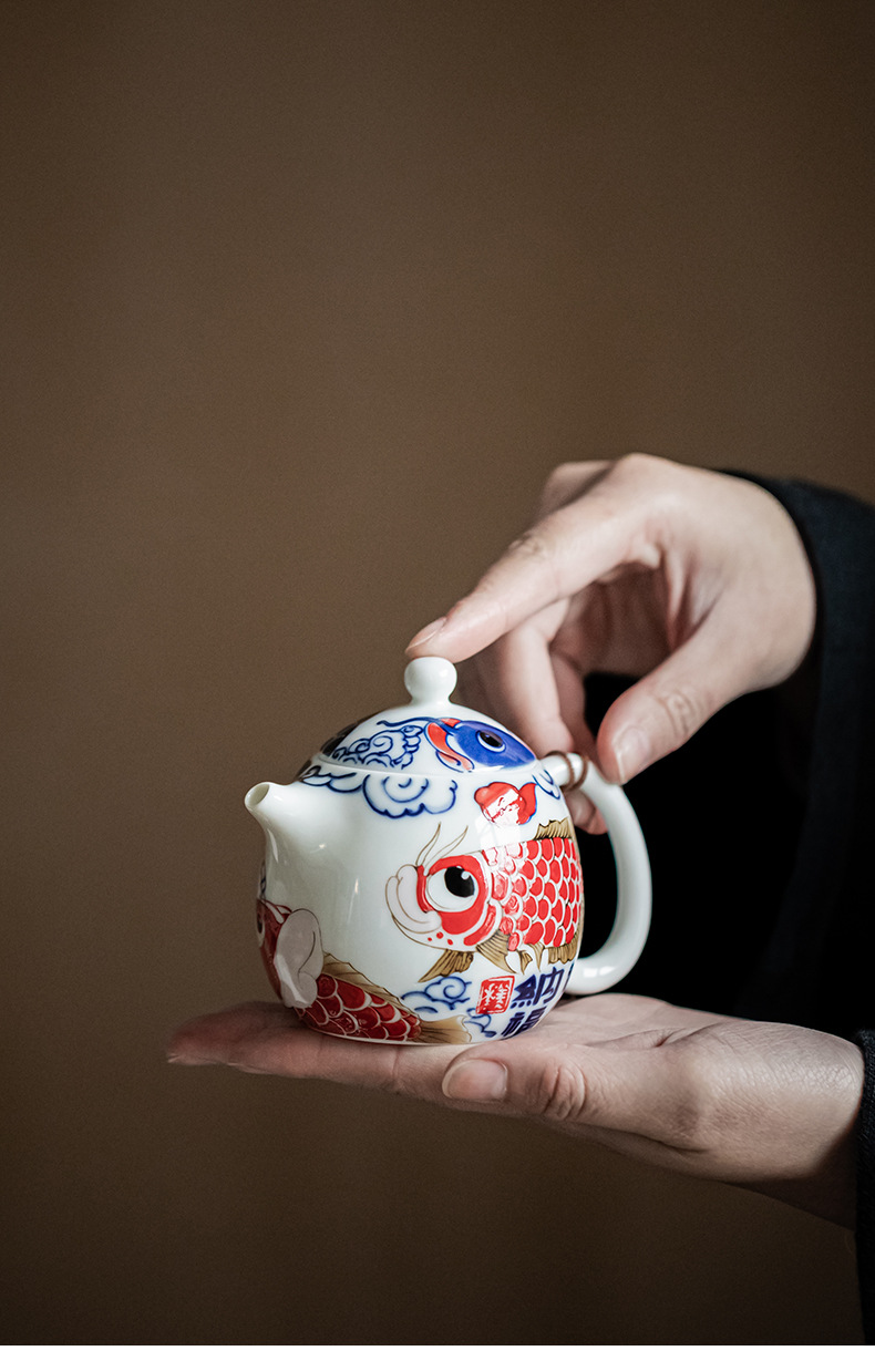 Bộ ấm trà Kung Fu Rồng Cá cốc trà gốm sứ kiểu Trung Quốc Có Nắp ấm trà dụng cụ pha trà gia dụng Hộp quà tặng cao cấp