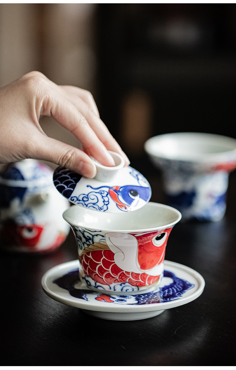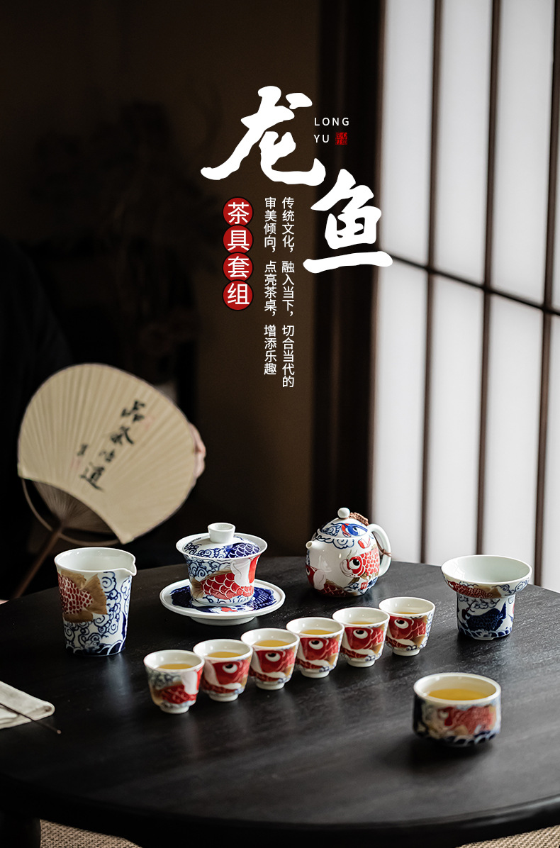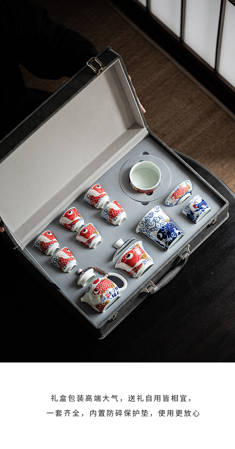 - Bộ ấm trà Kung Fu Rồng Cá cốc trà gốm sứ kiểu Trung Quốc Có Nắp ấm trà dụng cụ pha trà gia dụng Hộp quà tặng cao cấp