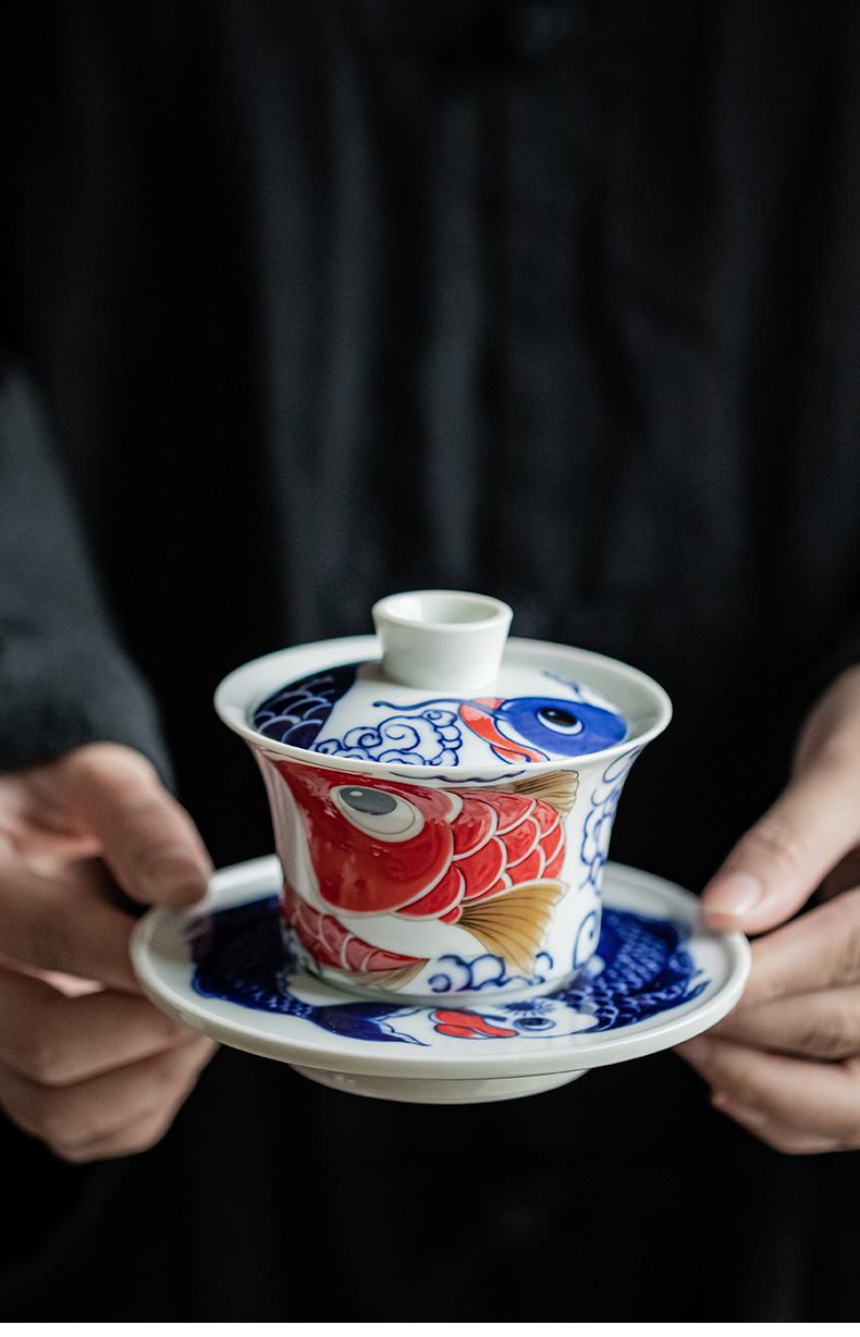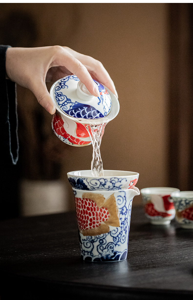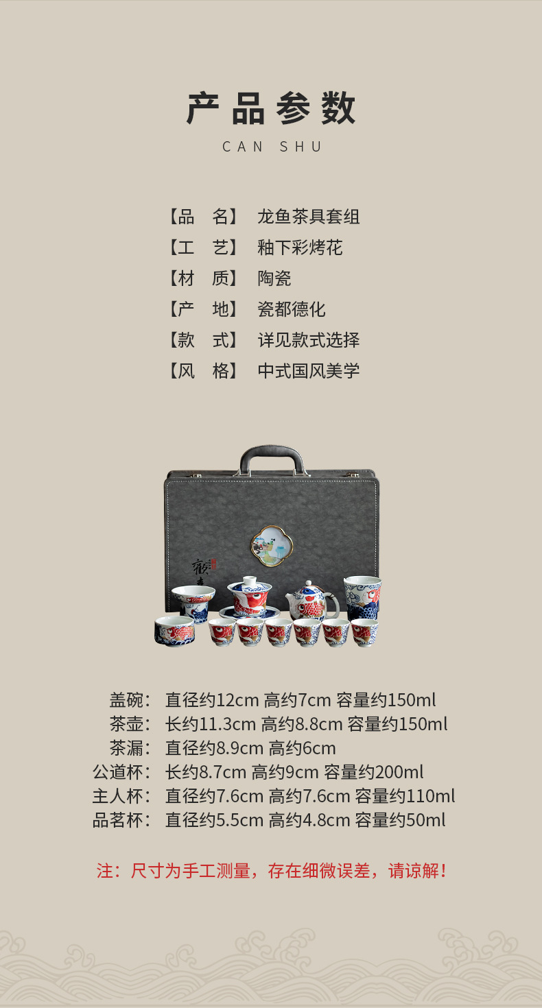 - Bộ ấm trà Kung Fu Rồng Cá cốc trà gốm sứ kiểu Trung Quốc Có Nắp ấm trà dụng cụ pha trà gia dụng Hộp quà tặng cao cấp