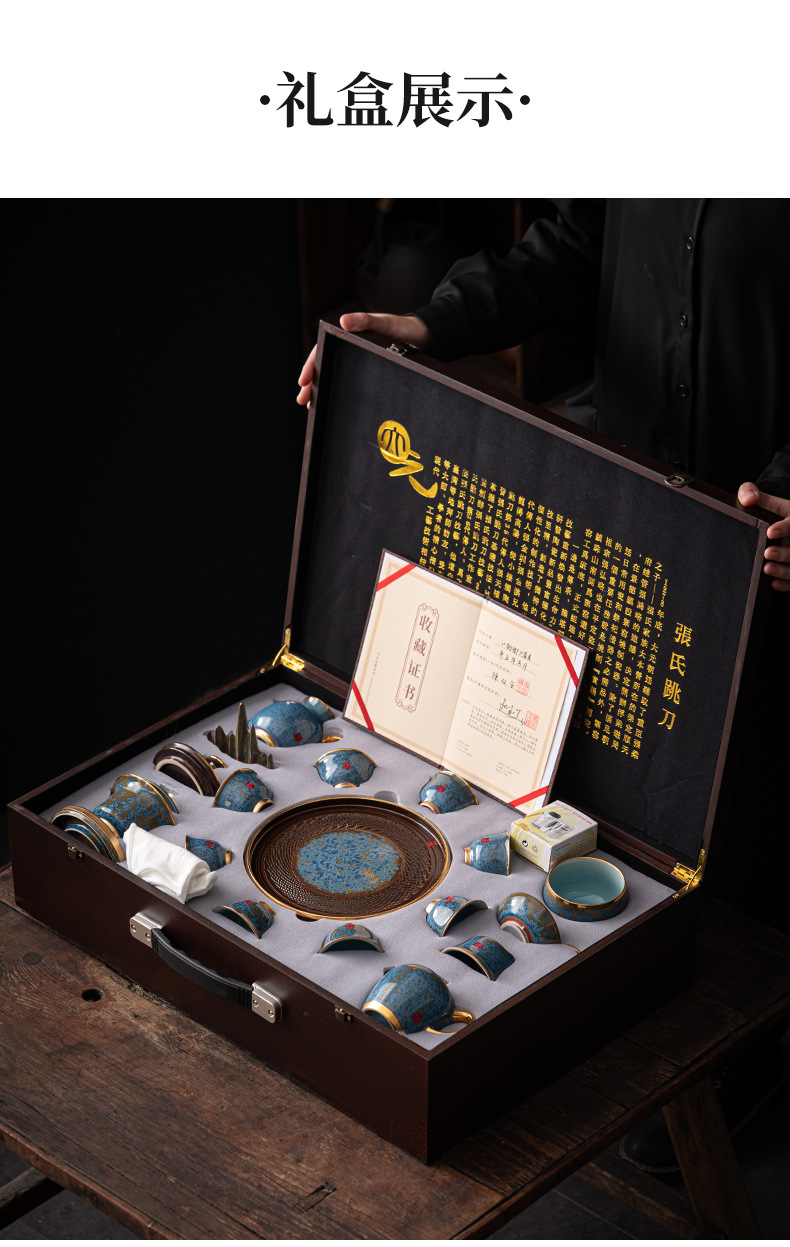 - Bộ ấm trà Kung Fu sứ Jun cao cấp ấm trà gia dụng hộp quà tặng văn phòng gốm sứ cao cấp sang trọng