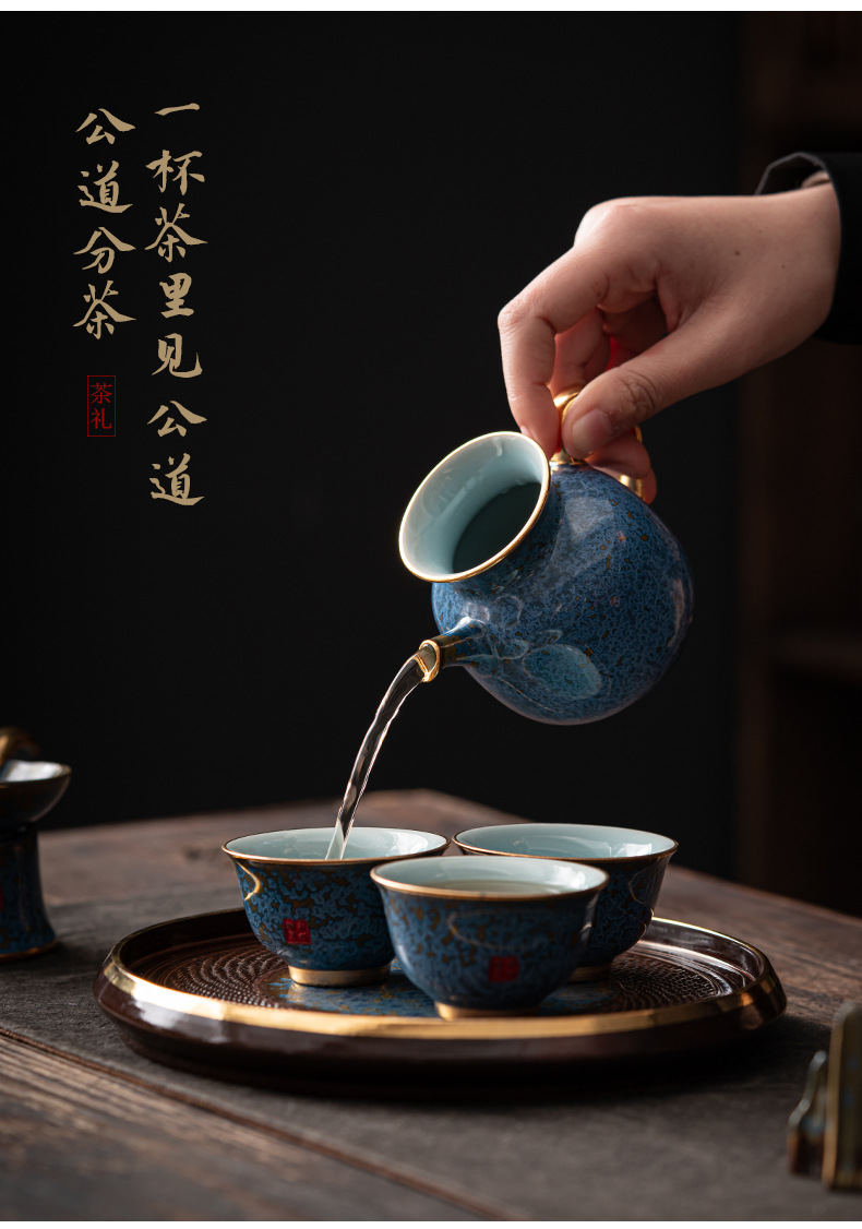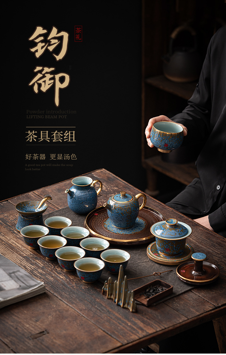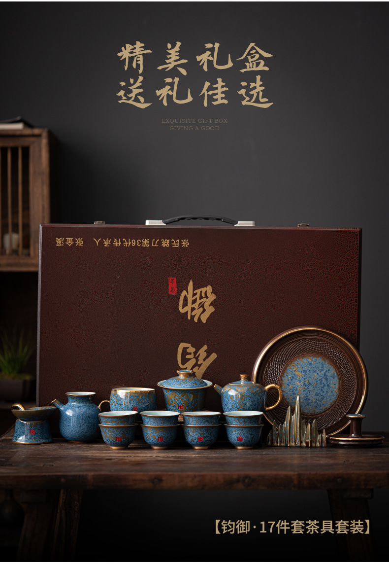 Bộ ấm trà Kung Fu sứ Jun cao cấp ấm trà gia dụng hộp quà tặng văn phòng gốm sứ cao cấp sang trọng