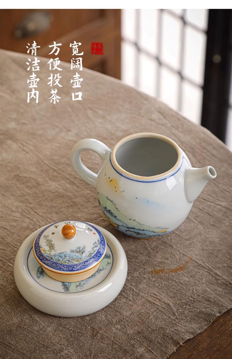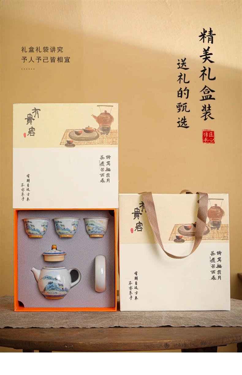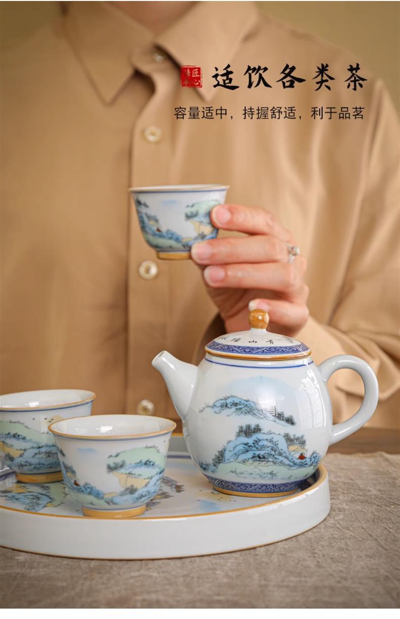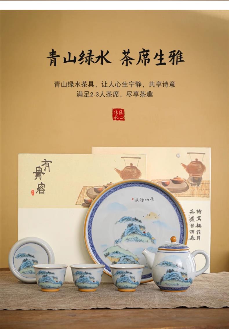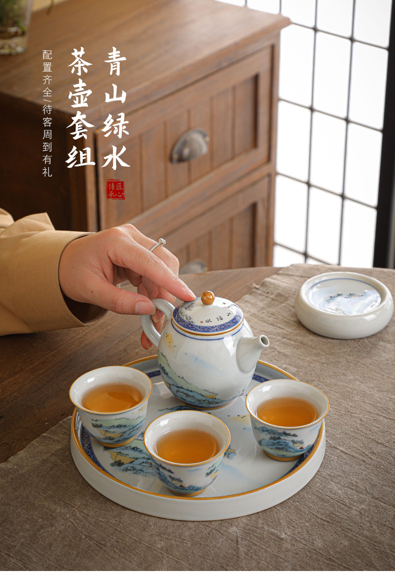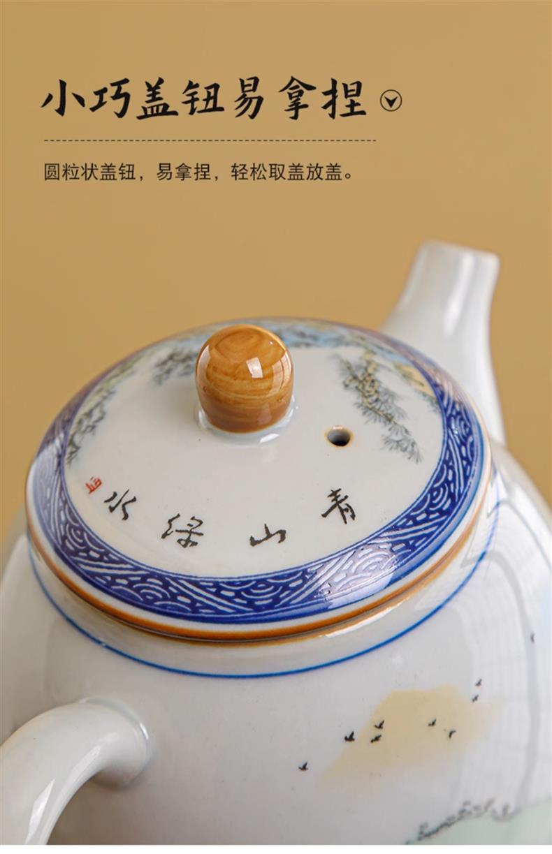 Bộ ấm trà Kung Fu sứ trắng xanh kiểu Trung Quốc cổ ấm trà bộ nhỏ chuyên dụng gia dụng bán buôn quà tặng