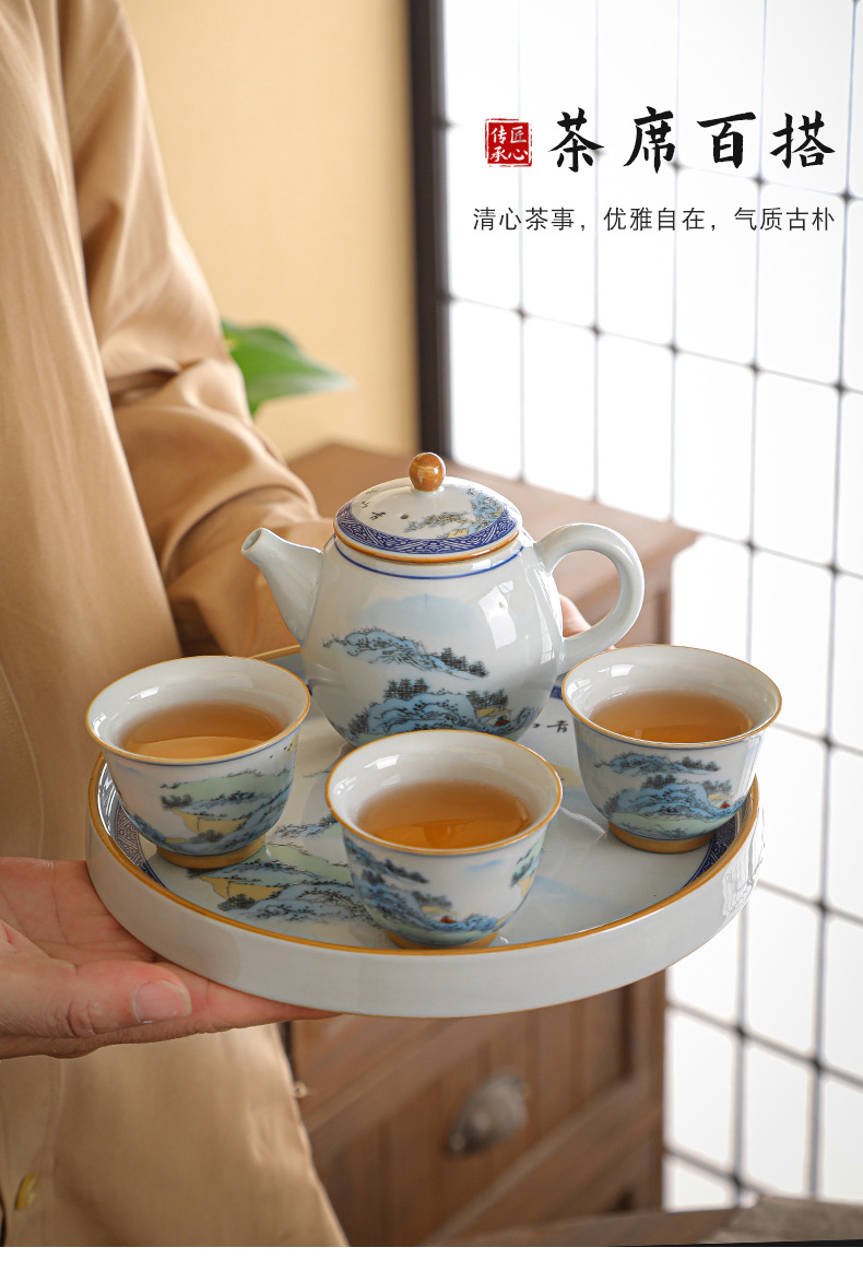 - Bộ ấm trà Kung Fu sứ trắng xanh kiểu Trung Quốc cổ ấm trà bộ nhỏ chuyên dụng gia dụng bán buôn quà tặng