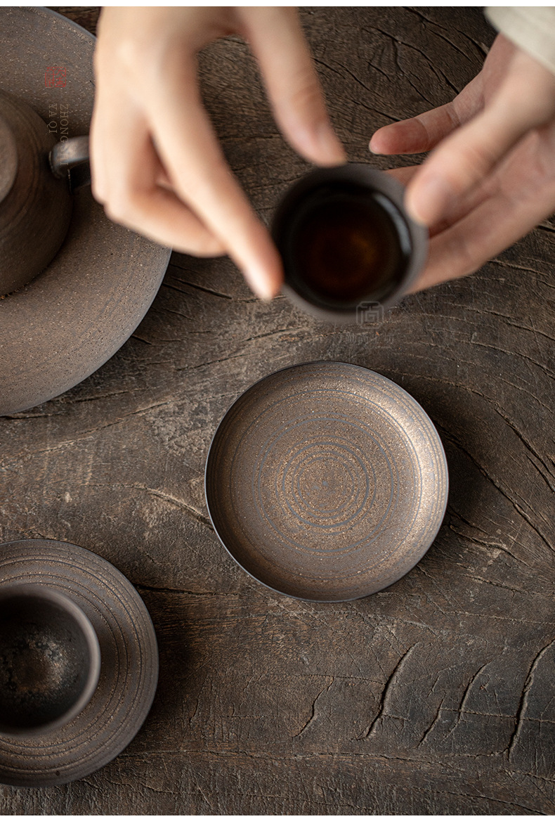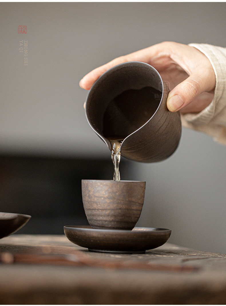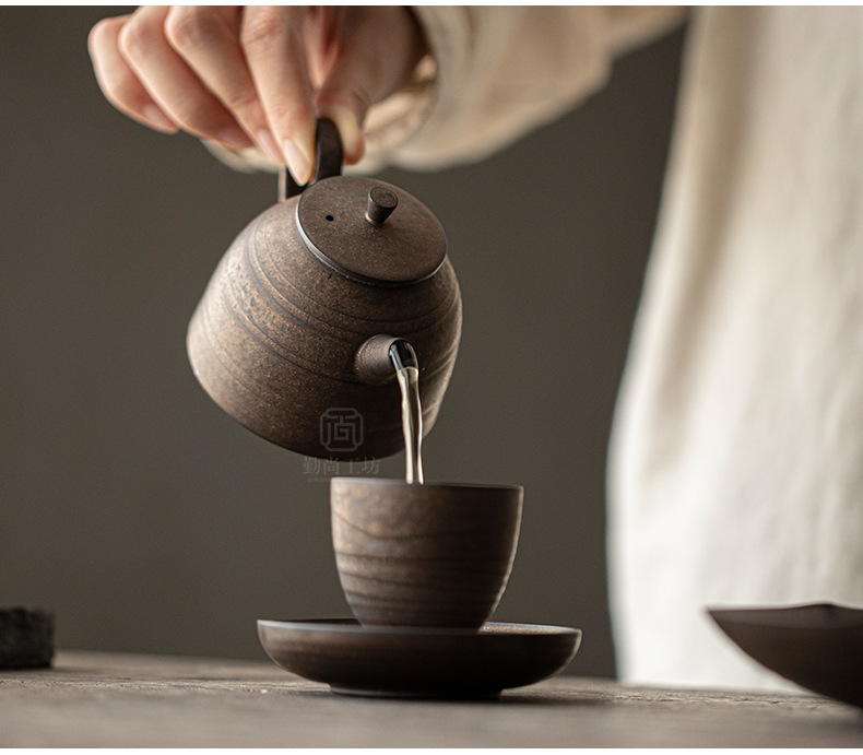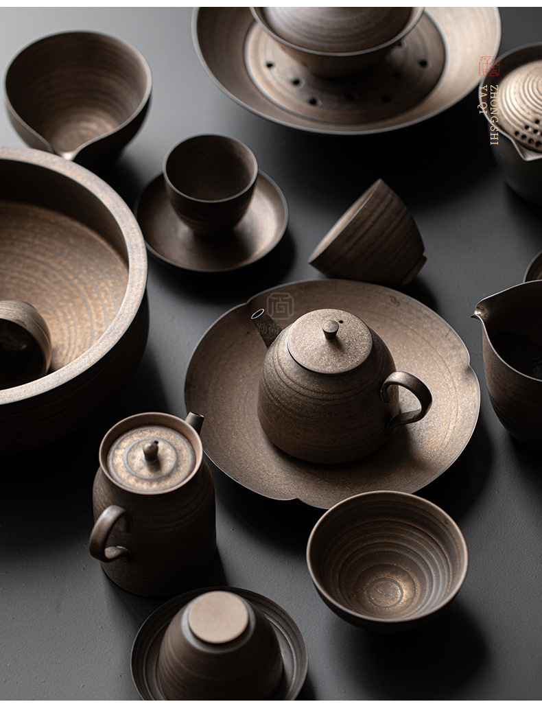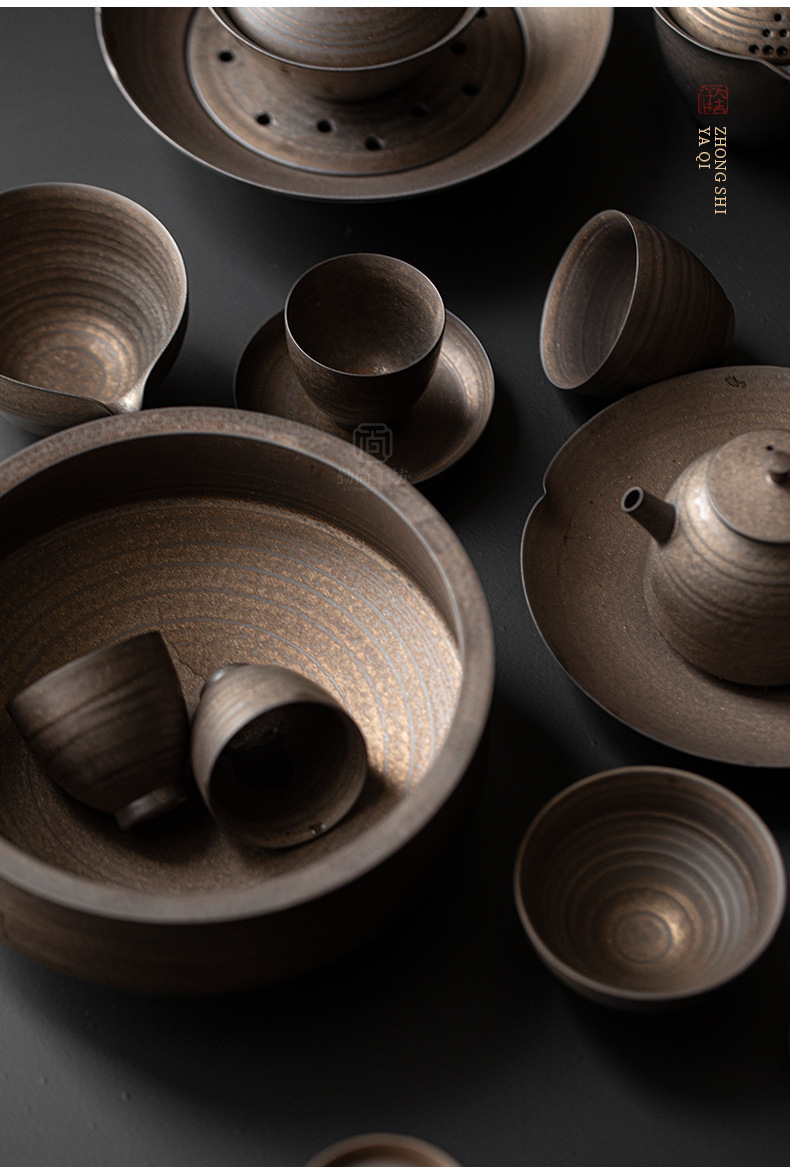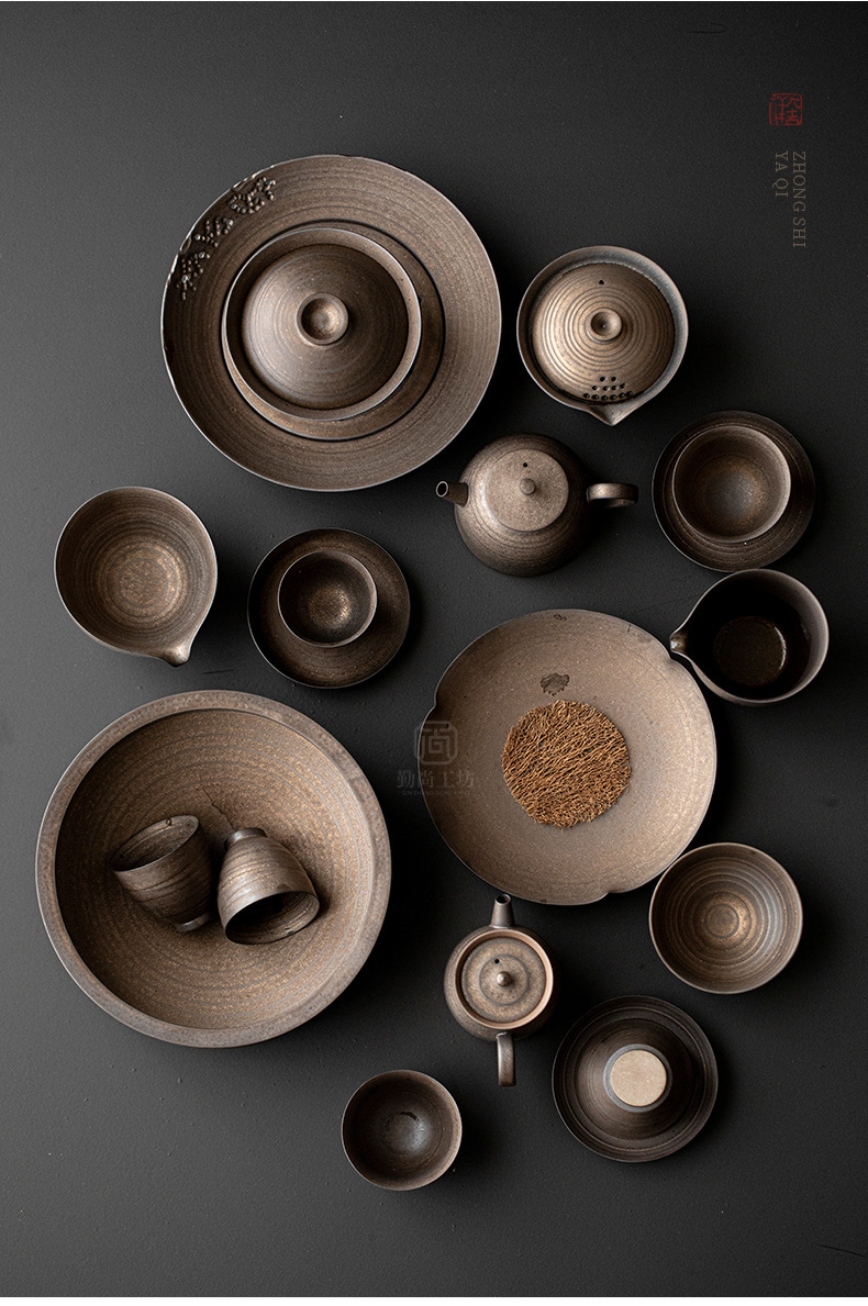 Bộ ấm trà Kung Fu tráng men gỉ mạ vàng thủ công Dòng ấm trà gốm thô Hai cái bát có nắp Một chiếc cốc trà đơn