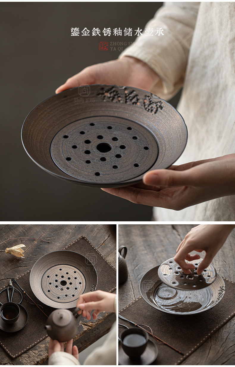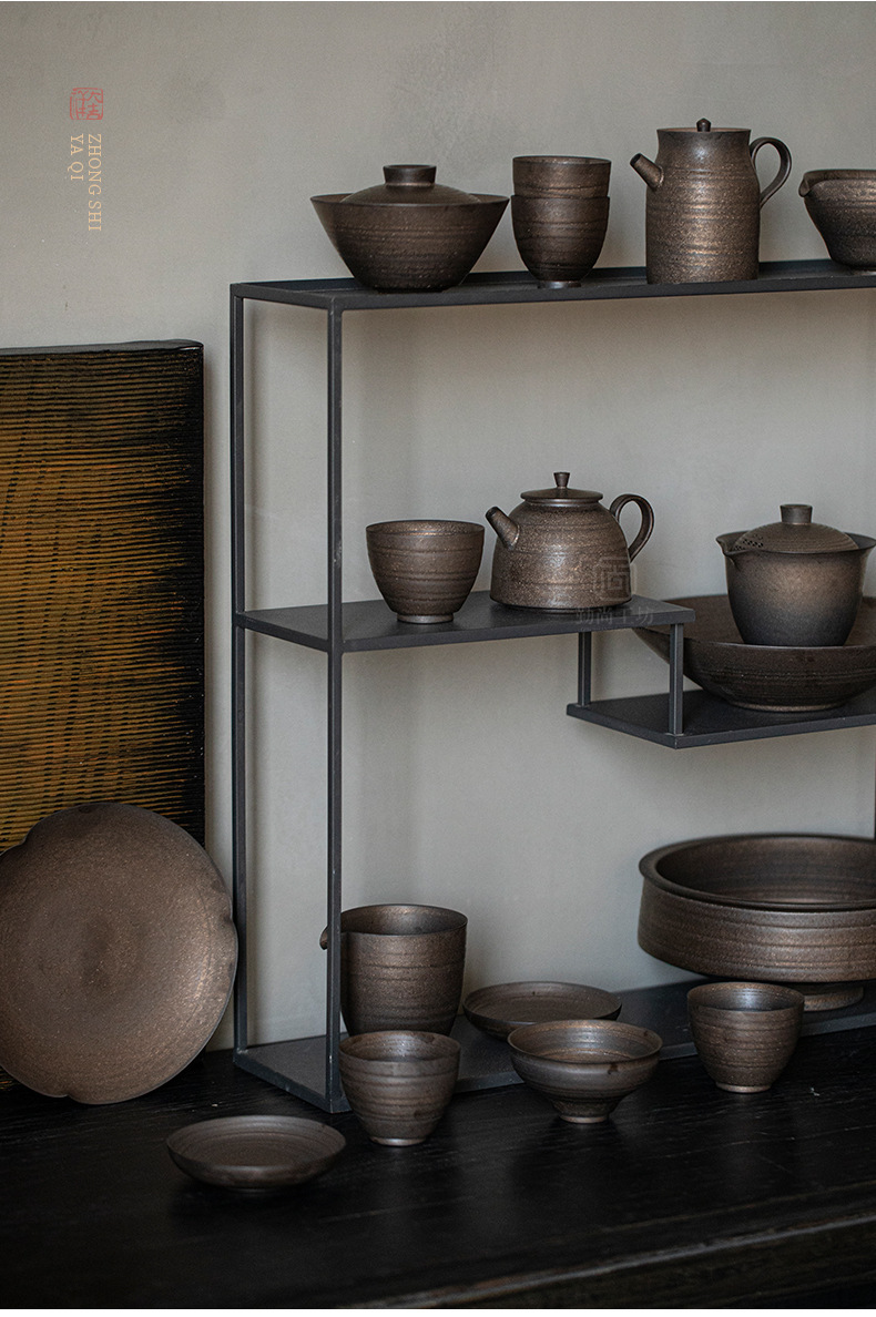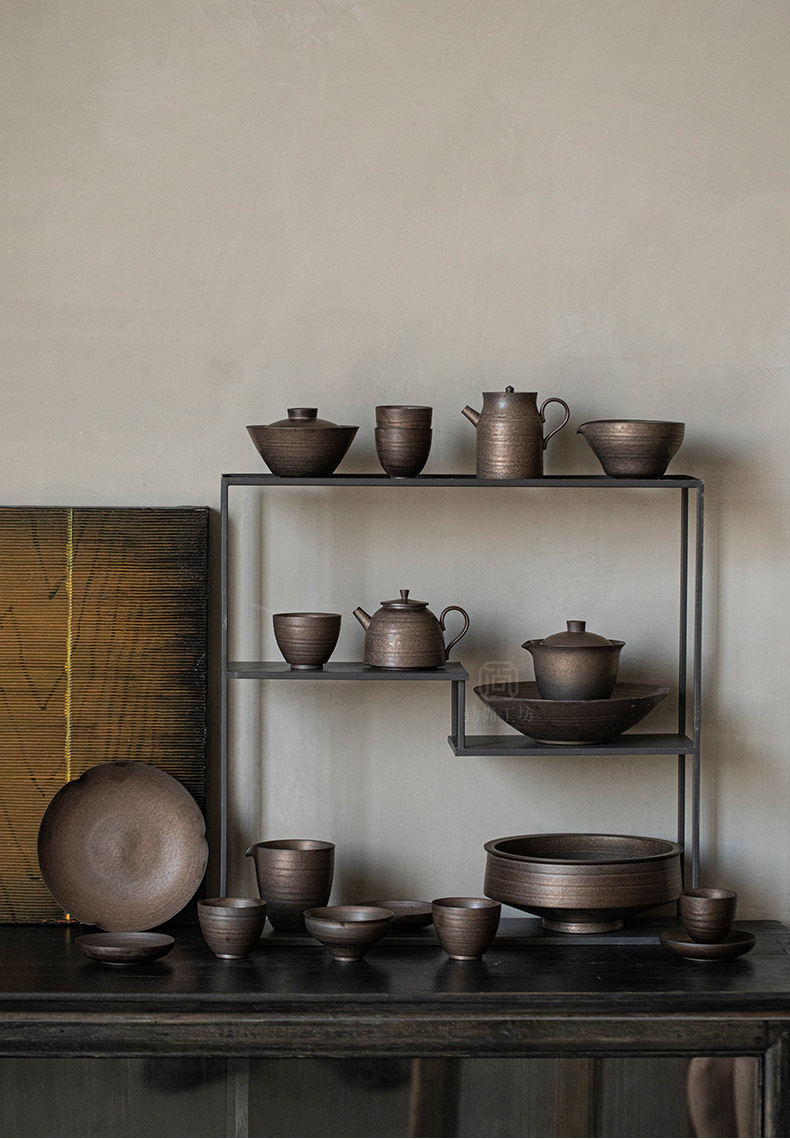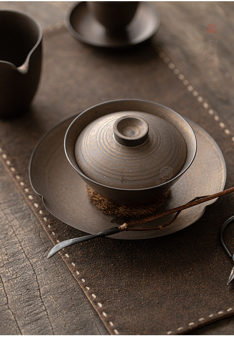 - Bộ ấm trà Kung Fu tráng men gỉ mạ vàng thủ công Dòng ấm trà gốm thô Hai cái bát có nắp Một chiếc cốc trà đơn